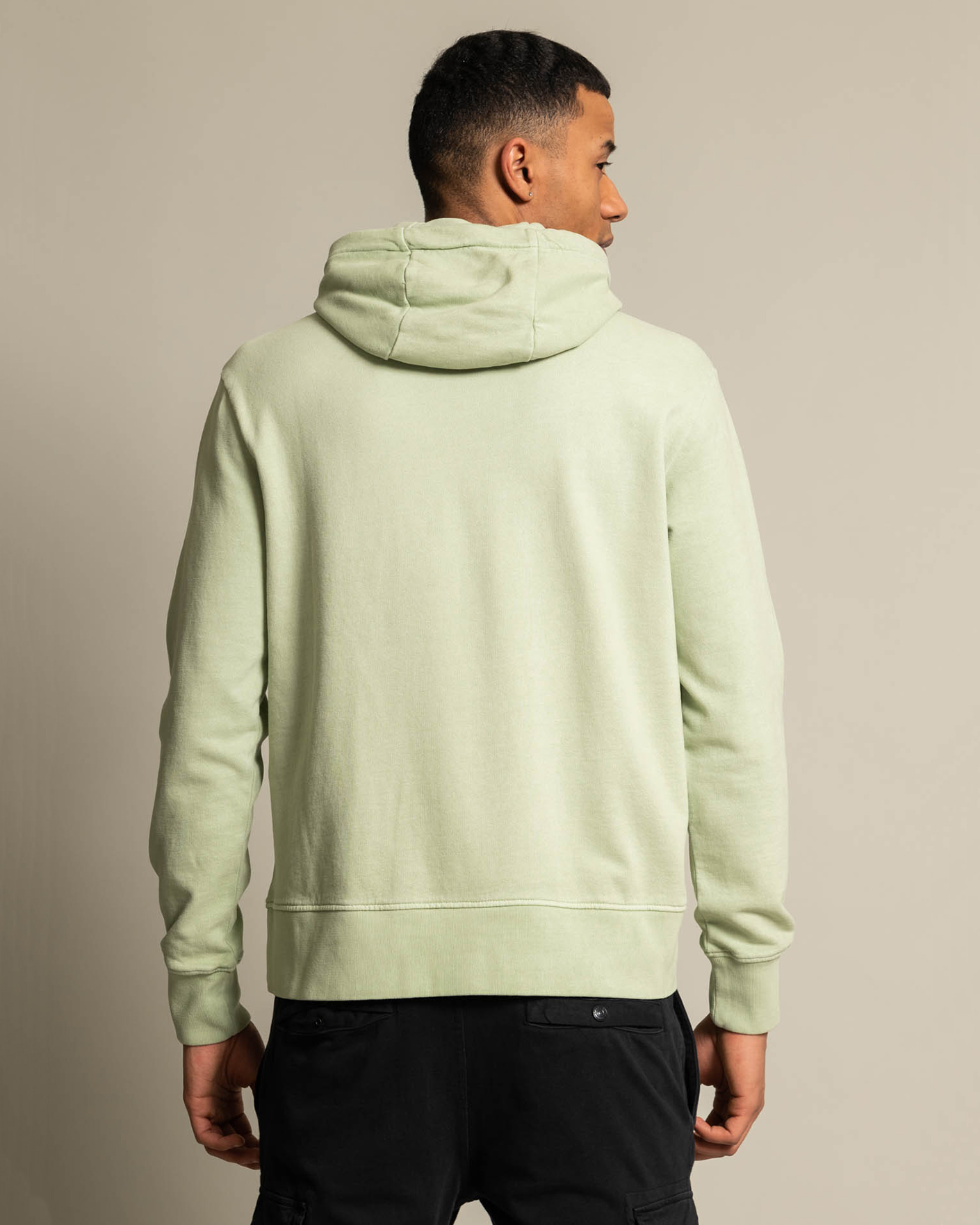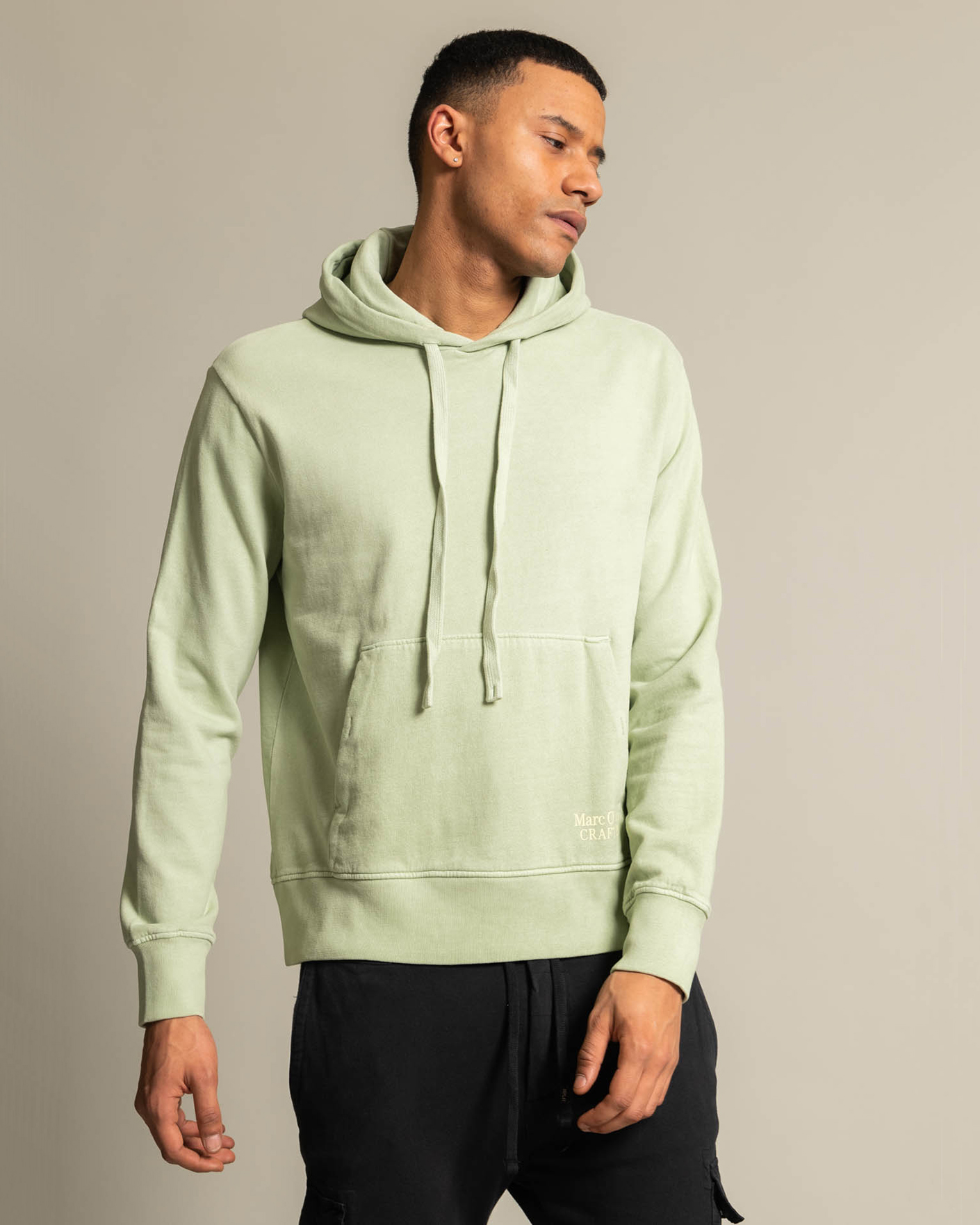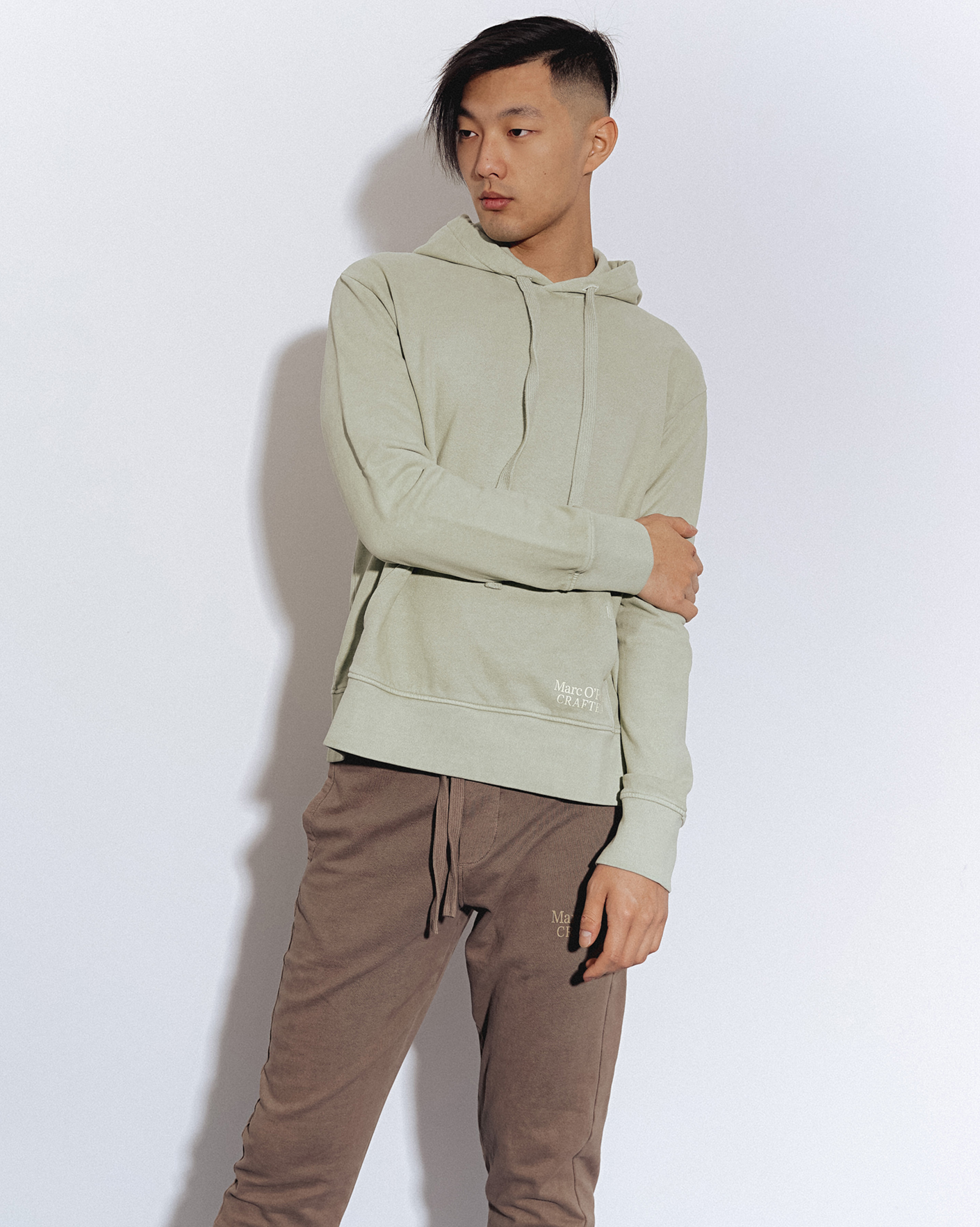 Толстовка Marc O'Polo оливкового цвета выполнена из 100% хлопка. Модель с регулируемым капюшоном с завязками в тон, а также имеется карман-кенгуру с небольшим доготипом бренда. Мнжеты и низ изделия на тонкой резинке. Толстовку можно сочетать с футболкой, утепелнным жилетом, курткой, брюками в спортивном стиле и джинсами.