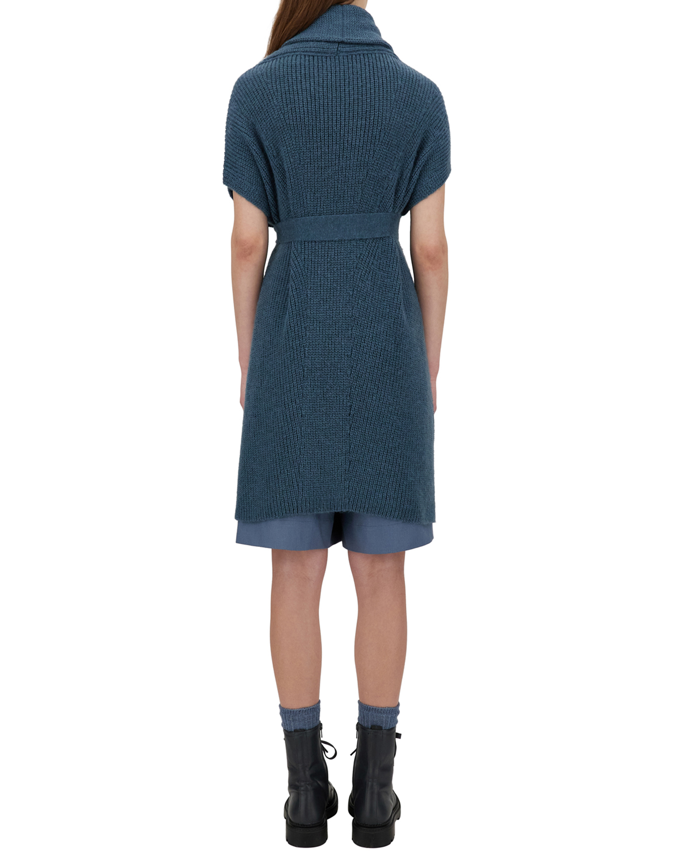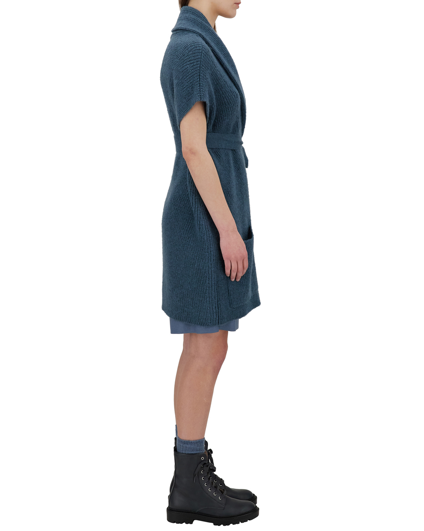 Теплый кардиган Marella серо-голубого цвета на поясе. Свободная модель без рукавов со спущенной линией плеча и широкими краями, которые создают более уютный образ. Также имеются накладные карманы по бокам. Стильный кардиган станет незаменимой вещью вашего гардероба, который можно сочетать с водолазкой, джемпером, блузой, рубашкой, платьем, юбкой и брюками.