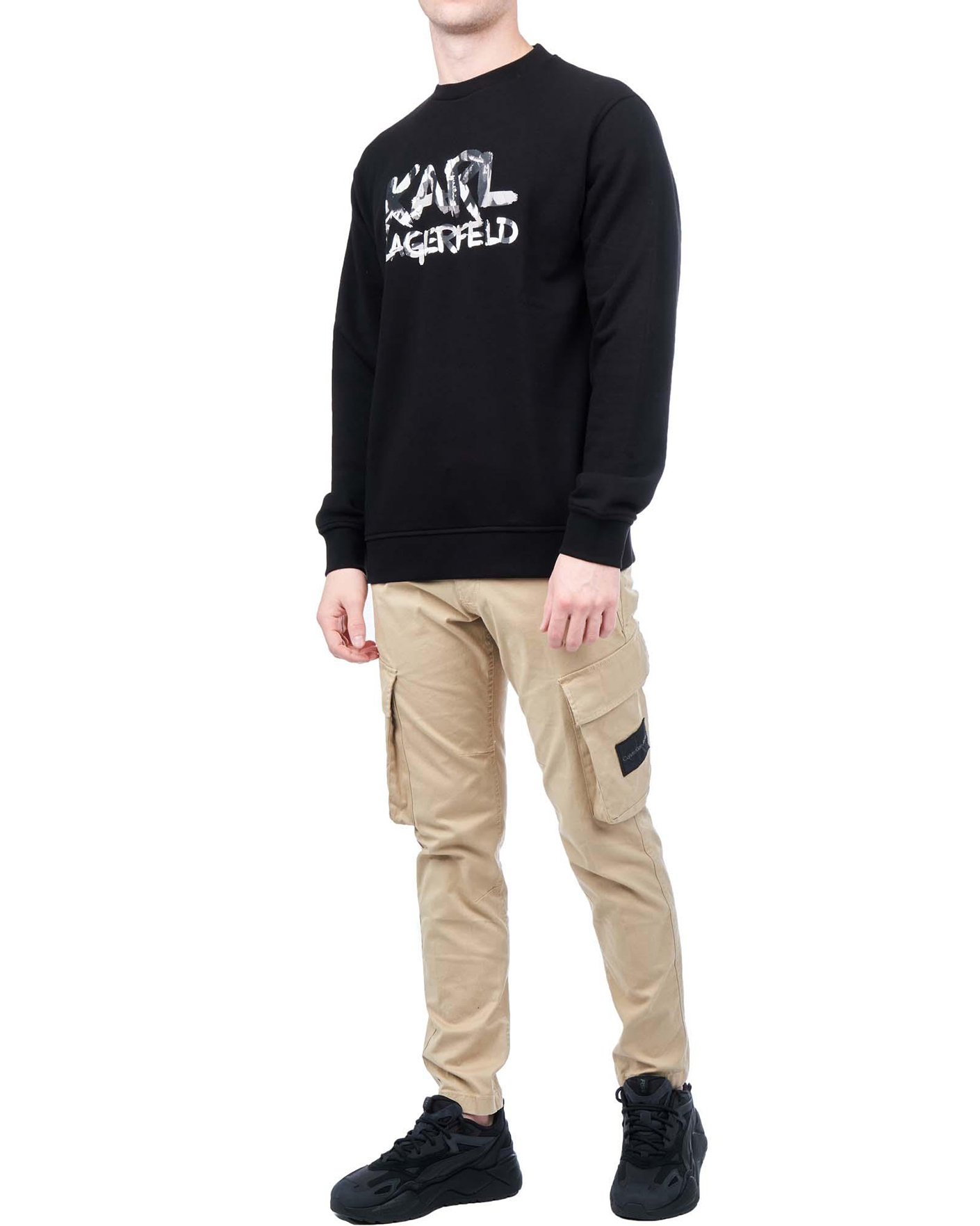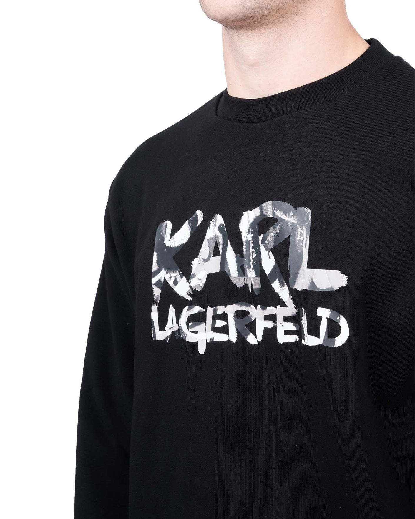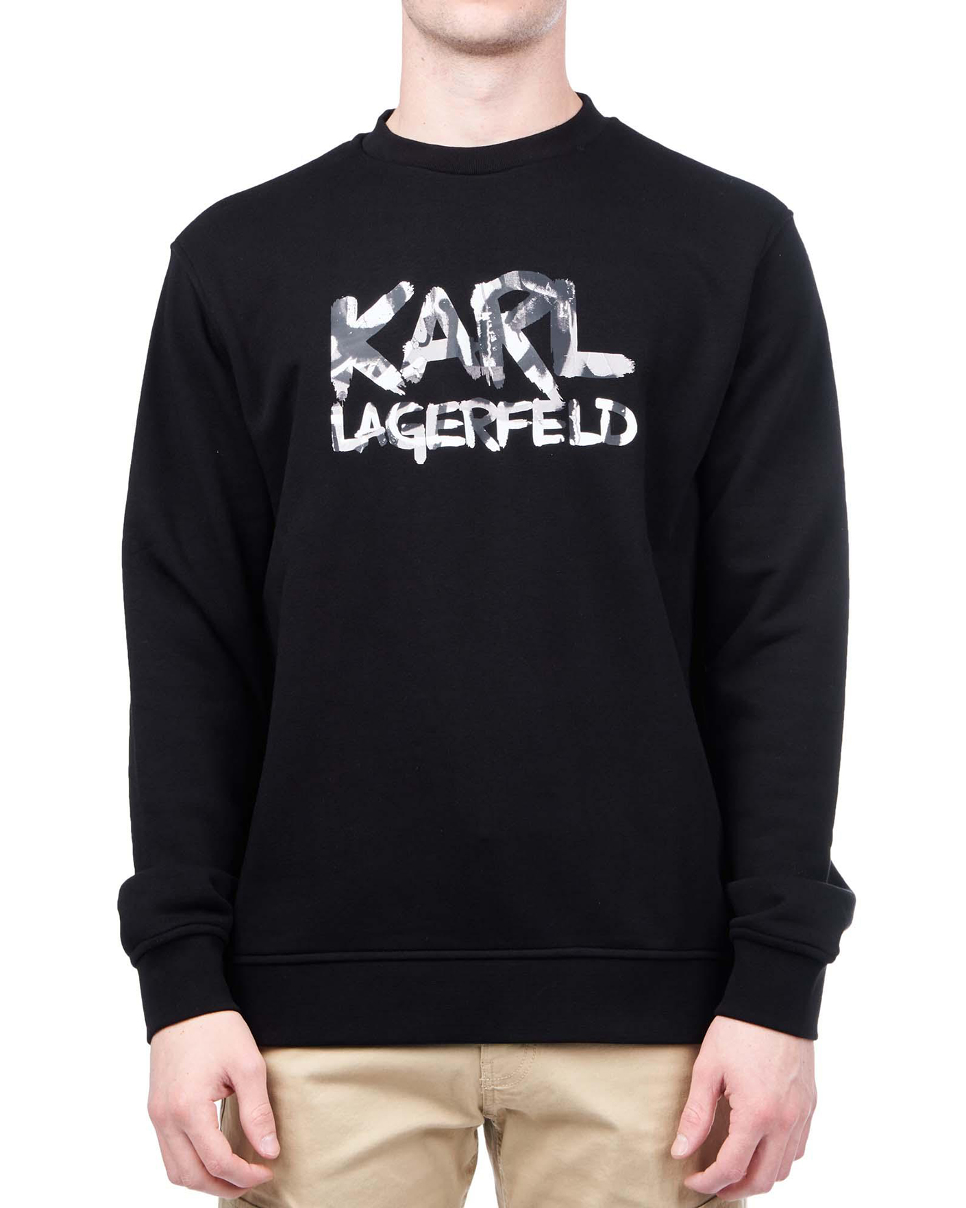 Толстовка Karl Lagerfeld черного цвета с крупным граффити-логотипом по центру. Хлопковая модель с круглым вырезом, длинными рукавами. Толстовка отлично впишется в ваш гардероб.