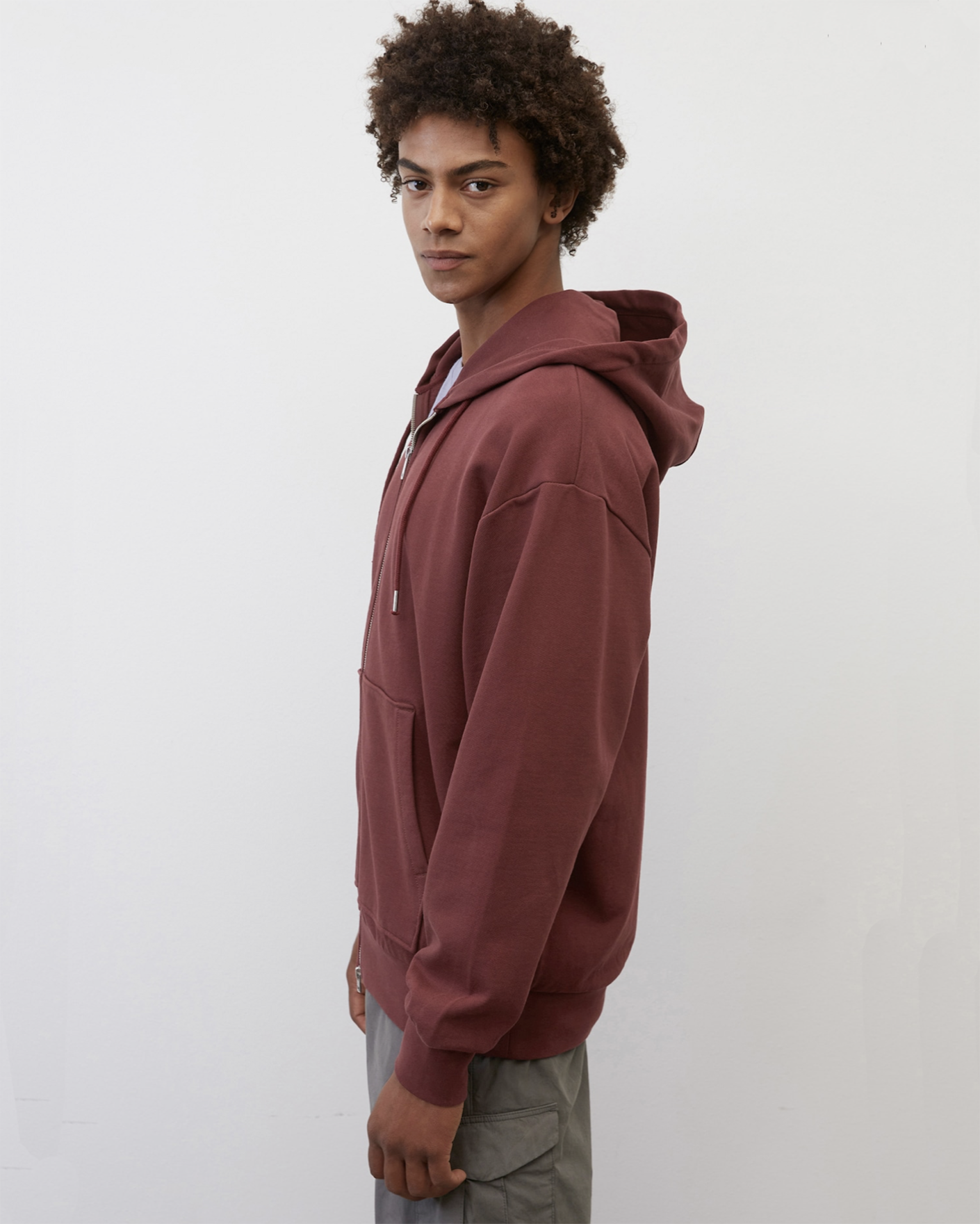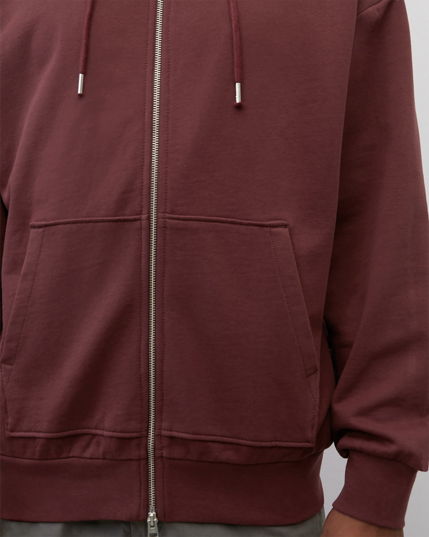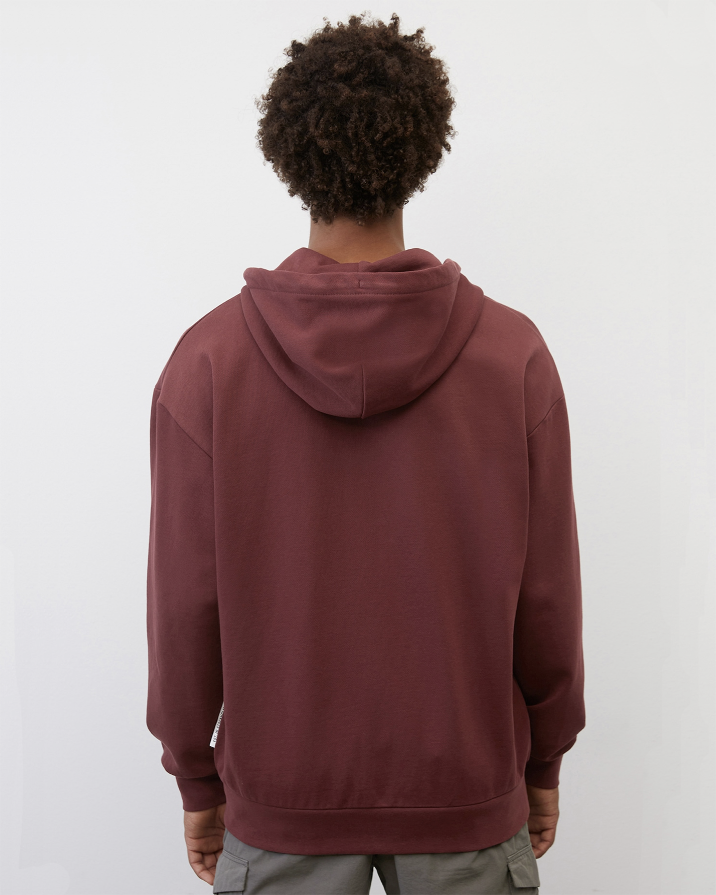 Толстовка Marc O'Polo вишневого цвета выполнен из 100% хлопка. Модель с регулируемым капюшоном, застежкой на молнию, имеется накладной карман-кенгуру спереди. Спущенная линия плеча и широкие рукава с манжетами на резинке. Толстовка отлично впишется в ваш гардероб в спортивном стиле.