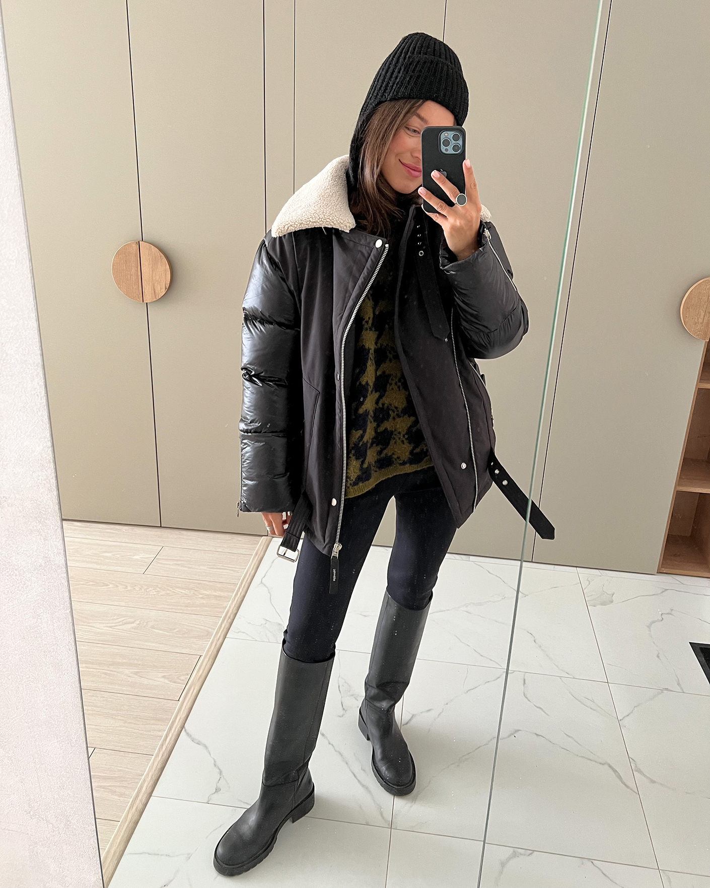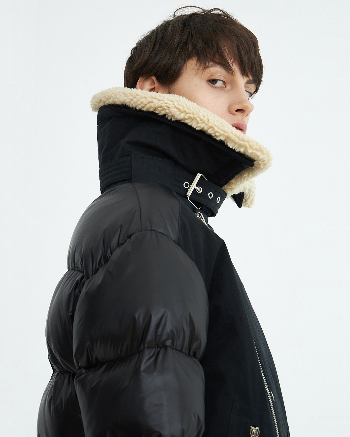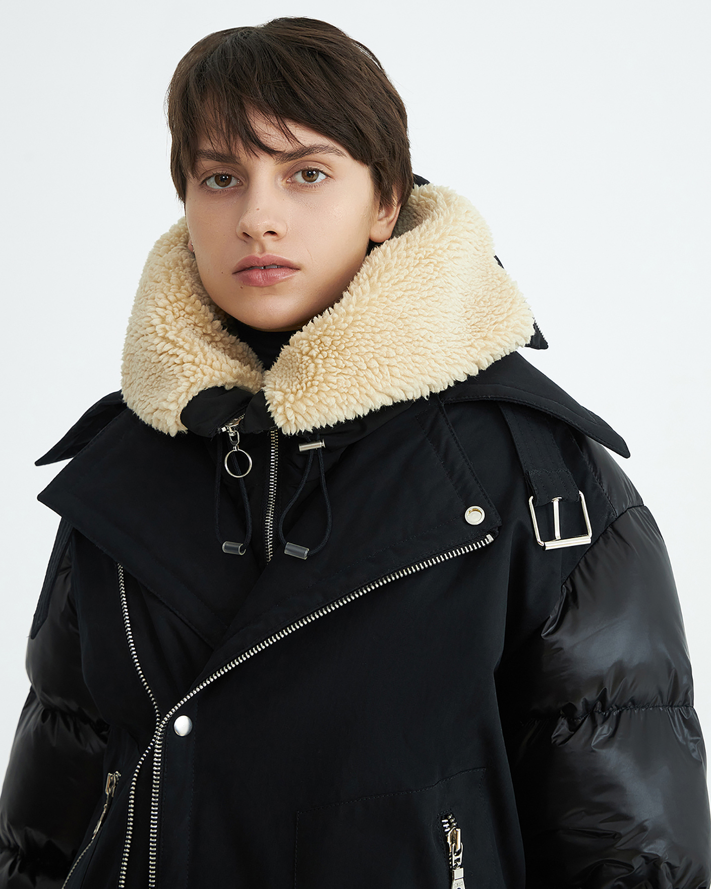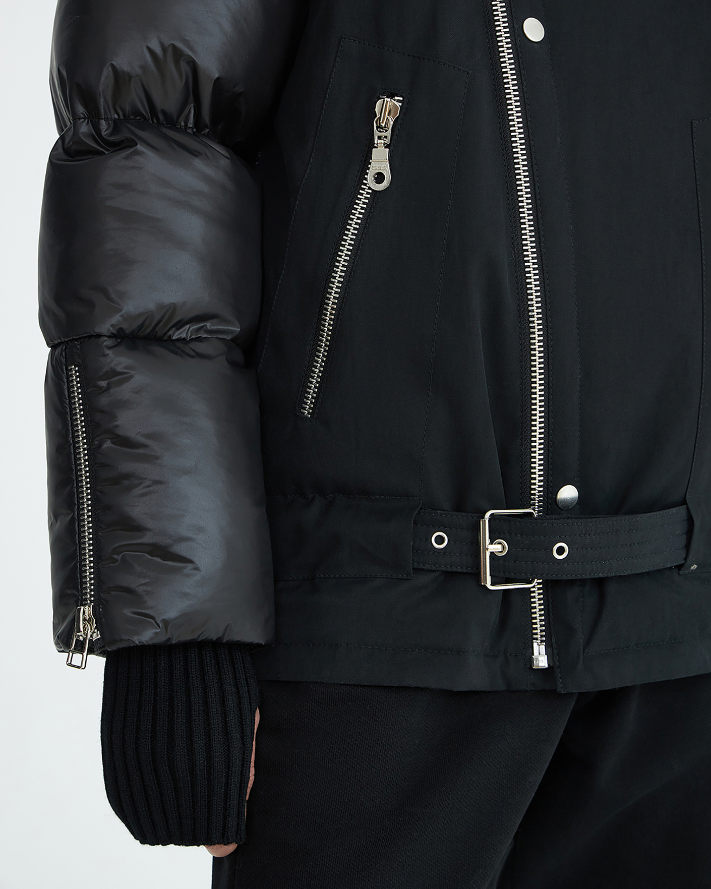 Теплая куртка-косуха Novaya черного цвета из комбинированных тканей. Модель с воротником-стойка, смещенная застежка на молнию, имеются карманы по бокам на молнии. также по низу вставной пояс с пряжкой. Стильная и универсальная куртка-косуха станет незаменимым спутником в холодную погоду.