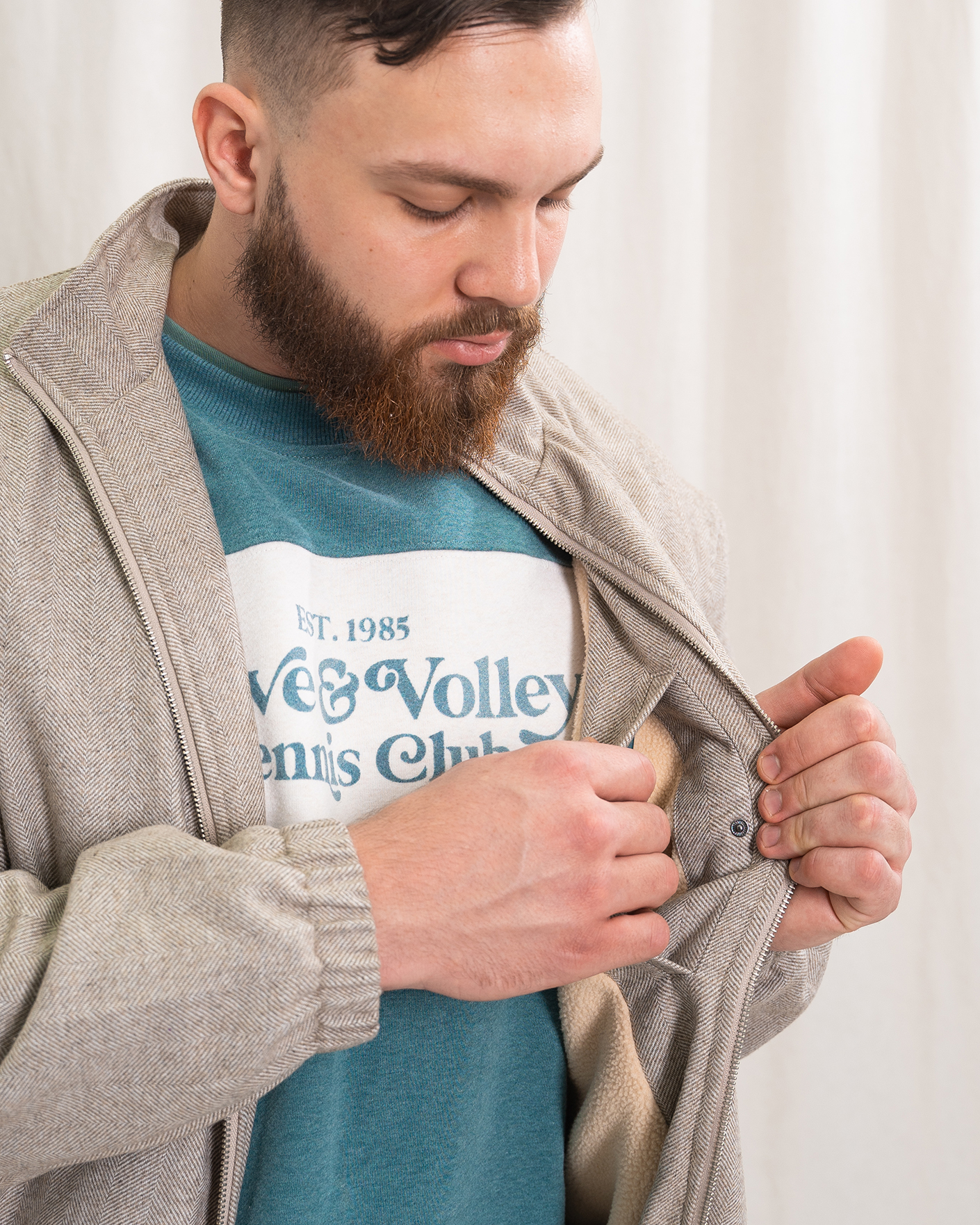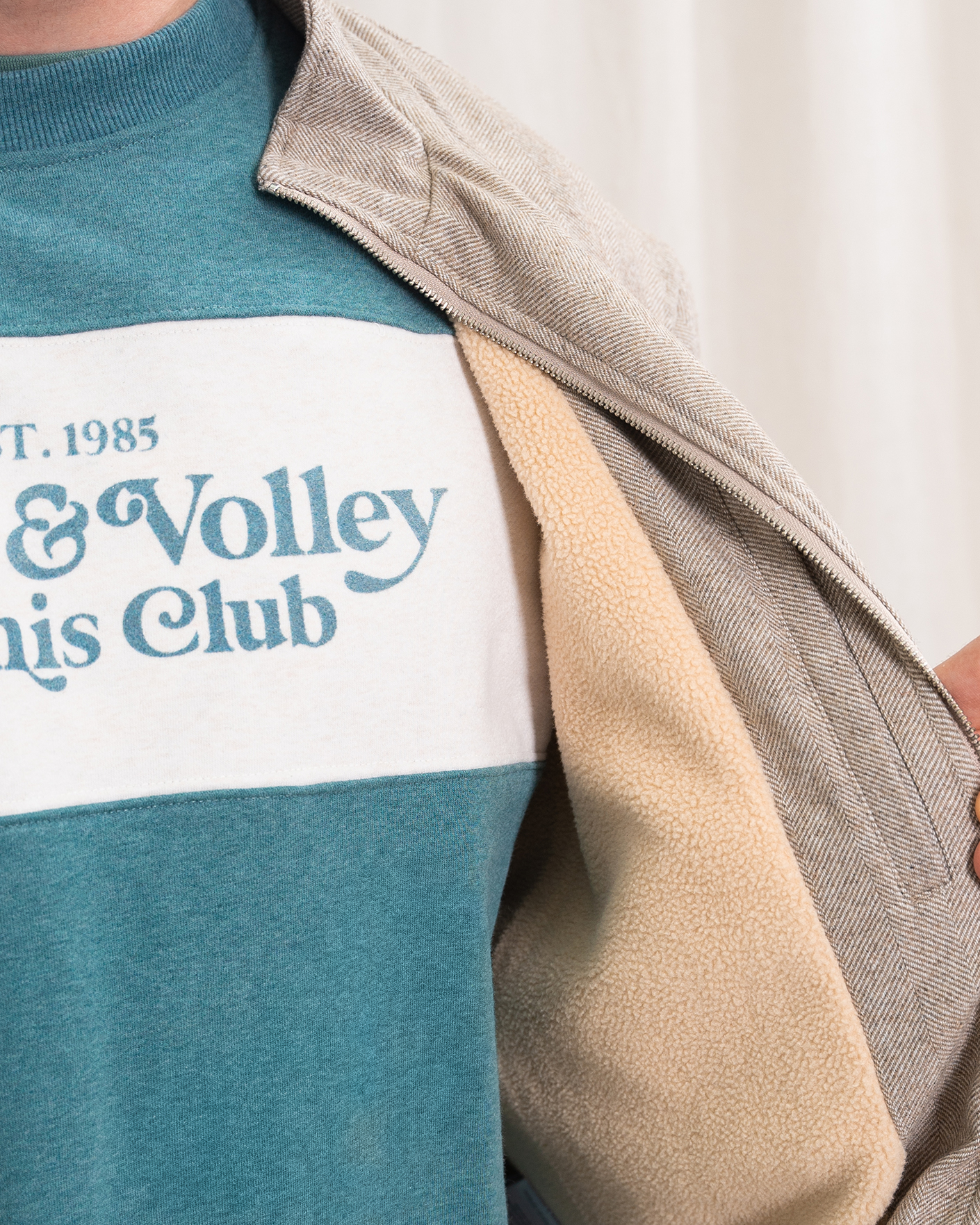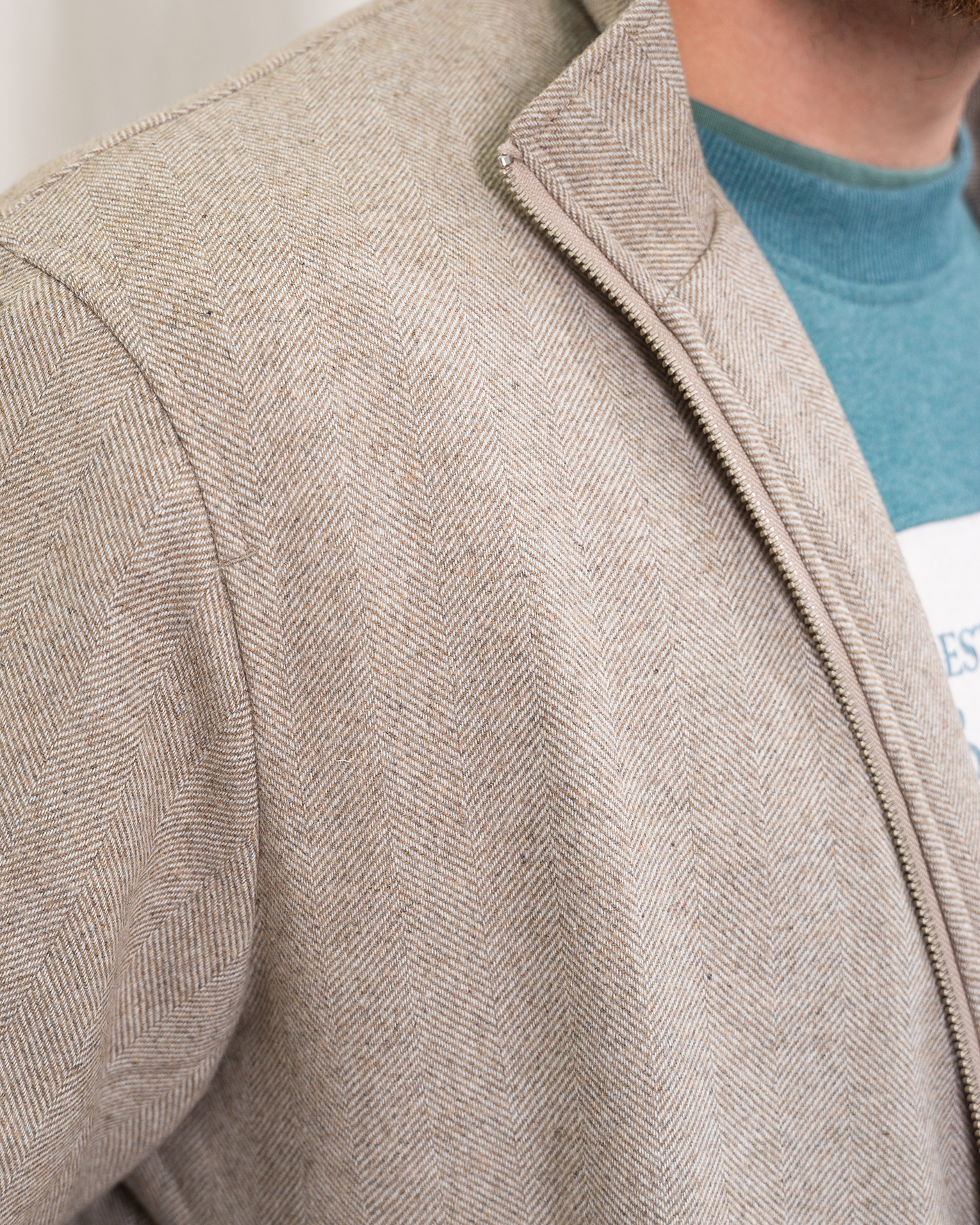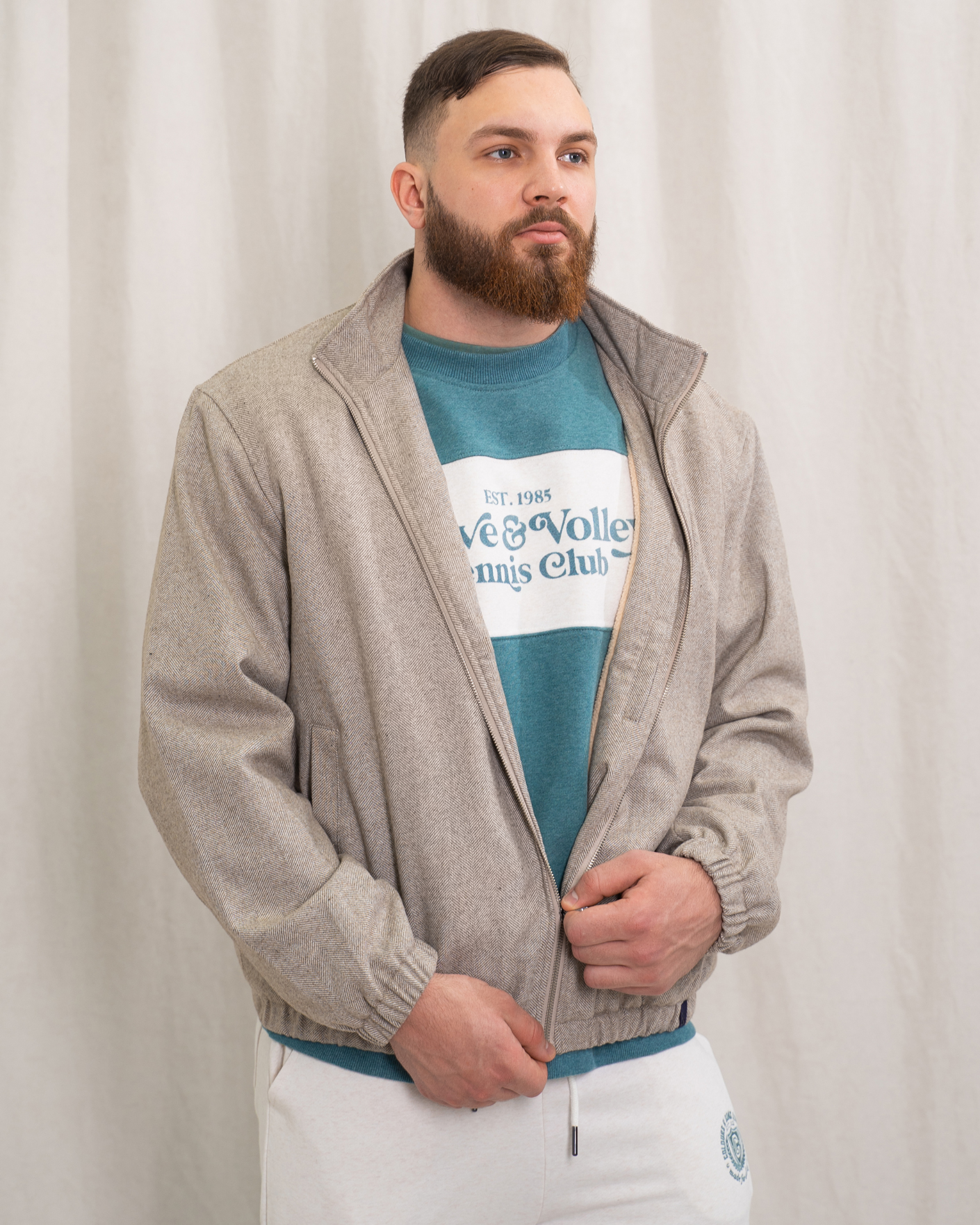 Куртка-бомбер Colours&Sons бежевого цвета в мелкий рисунок-елочка. Модель с воротником-стойка, застежка и боковые карманы на молнии. Манжеты и низ на резинке в складку. Куртка-бомбер отлично впишется в ваш повседневный гардероб.