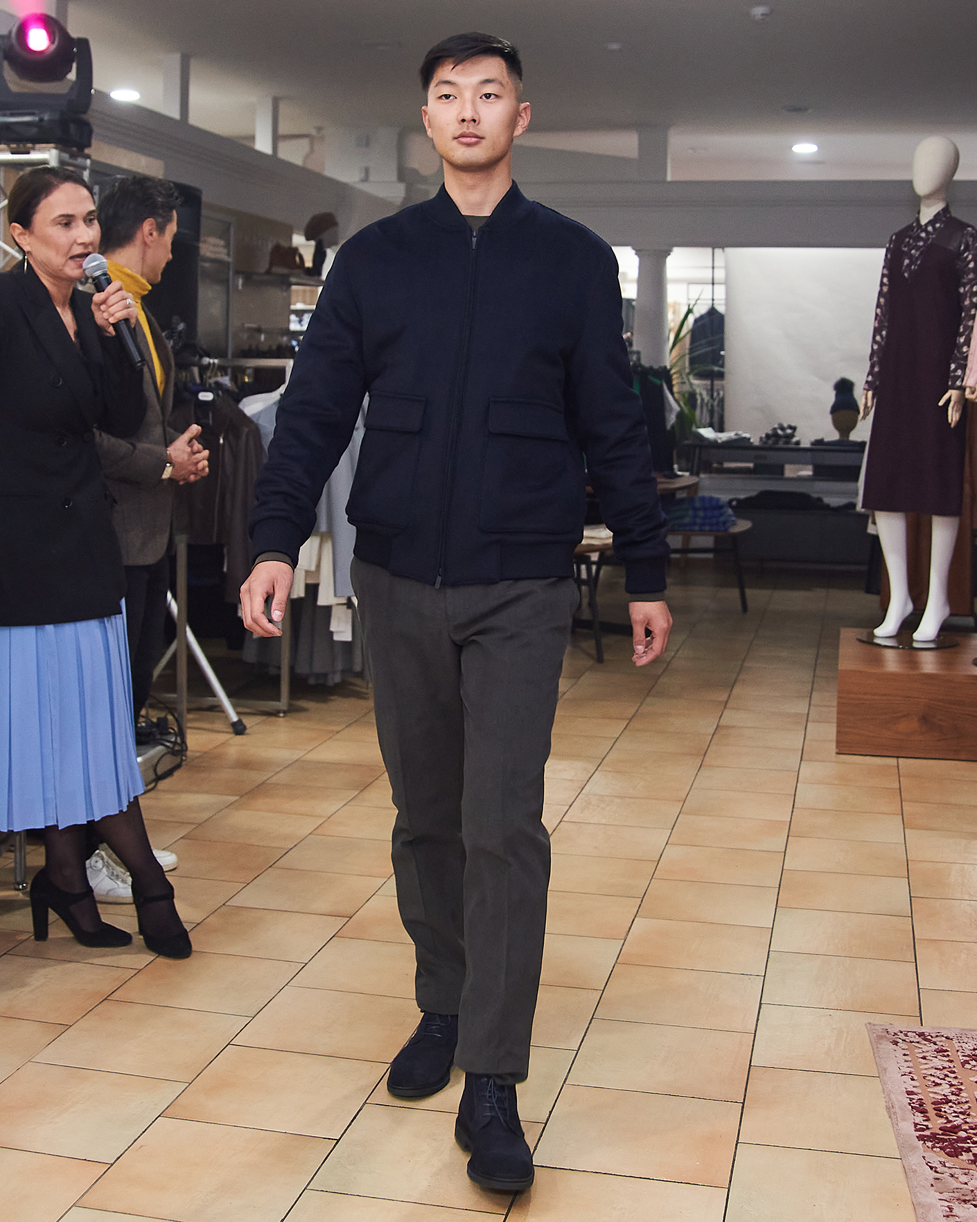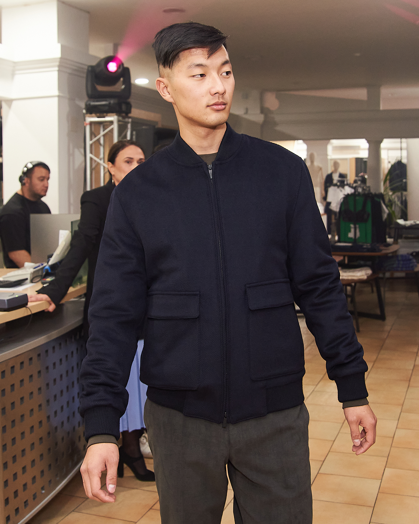 Утепленная куртка-бомбер Corneliani синего цвета в мелкий строчный рисунок. Модель с удлиненным воротником, манжетами и низом на ребристой резинке. Застежка на молнию, имеются накладные карманы с клапанами по бокам. Куртка-бомбер отлично впишется в ваш повседневный гардероб.