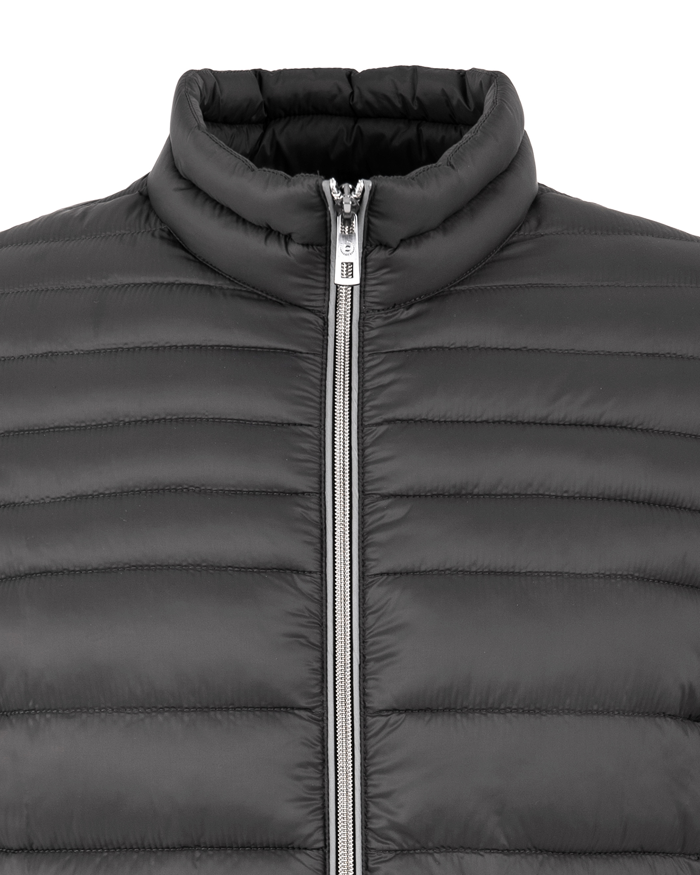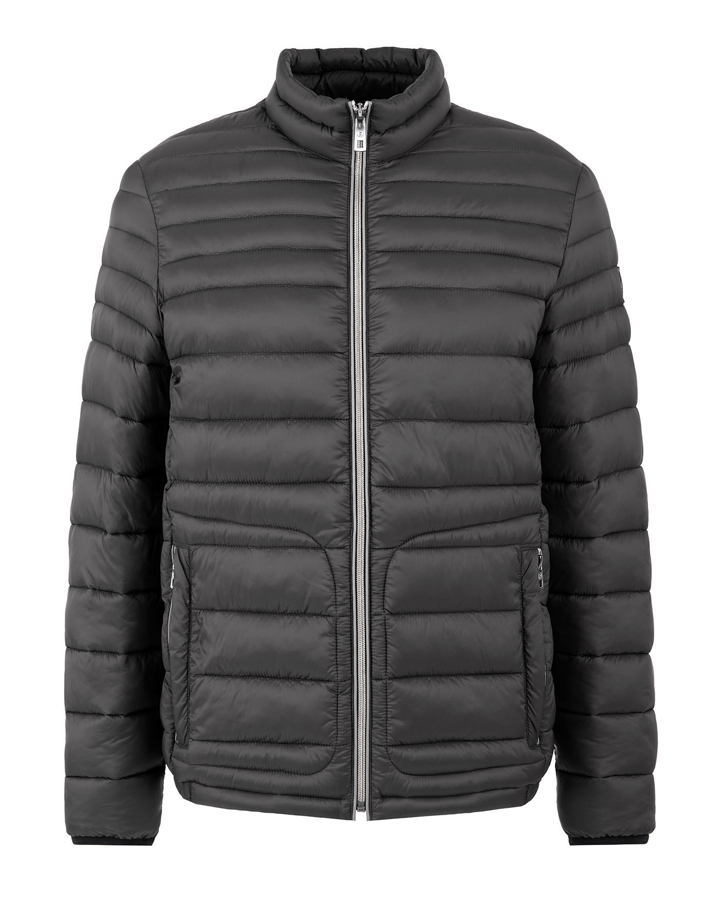 Утепленная куртка Bugatti серого цвета в горизонтальную стежку. Модель с воротником-стойка, застежка и боковые карманы на молнии. Теплая куртка станет отличным спутником на каждый день.