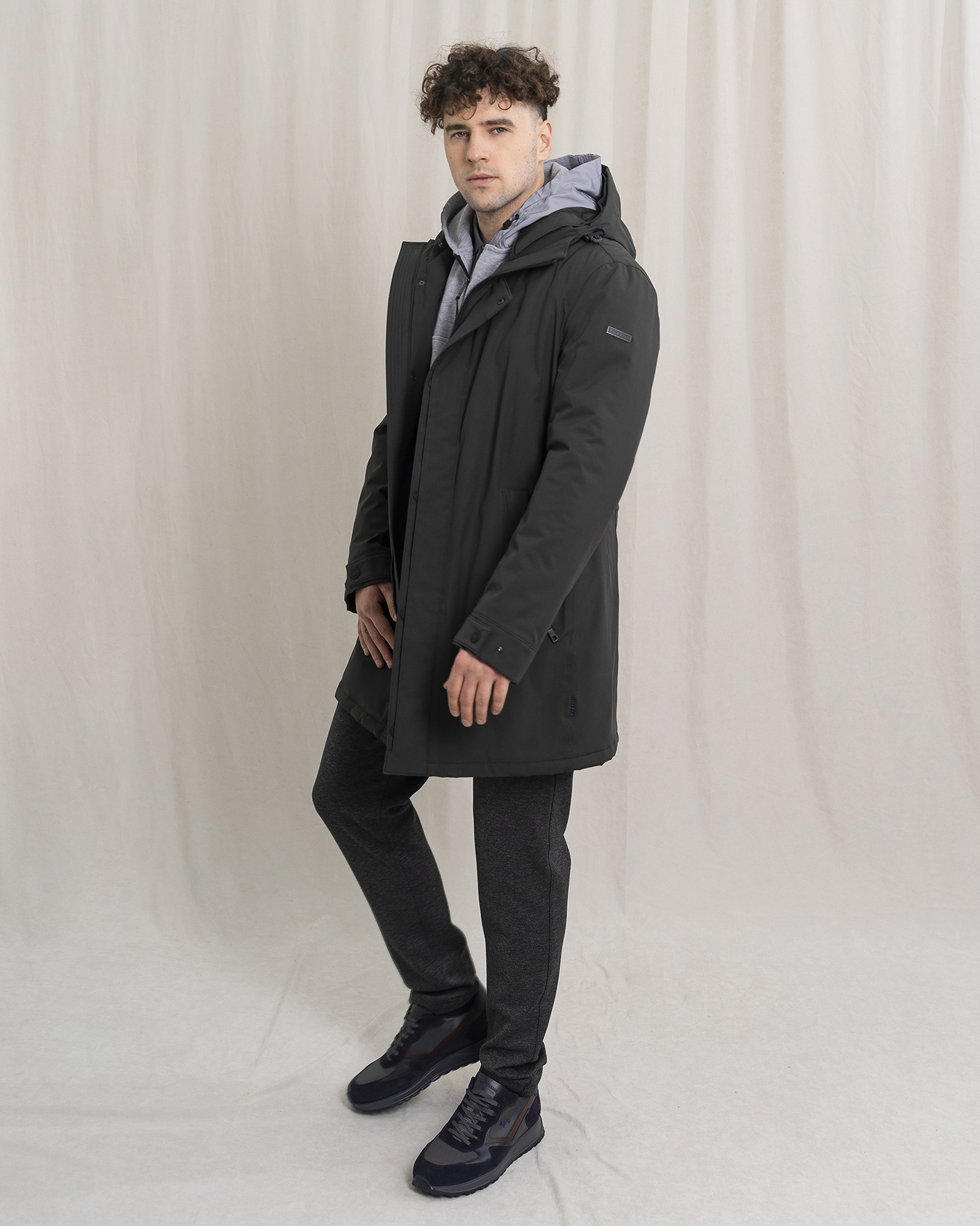 Куртка-парка Bugatti оливкового цвета. Модель с воротником-стойка и фиксированным капюшоном, застежка на скрытую молнию с клепками, имеются врезные карманы по бокам на молнии. Ширина манжет регулируетсяс помощью шлейки с клепками. Куртка-парка станет отличным спутником на каждый день.
