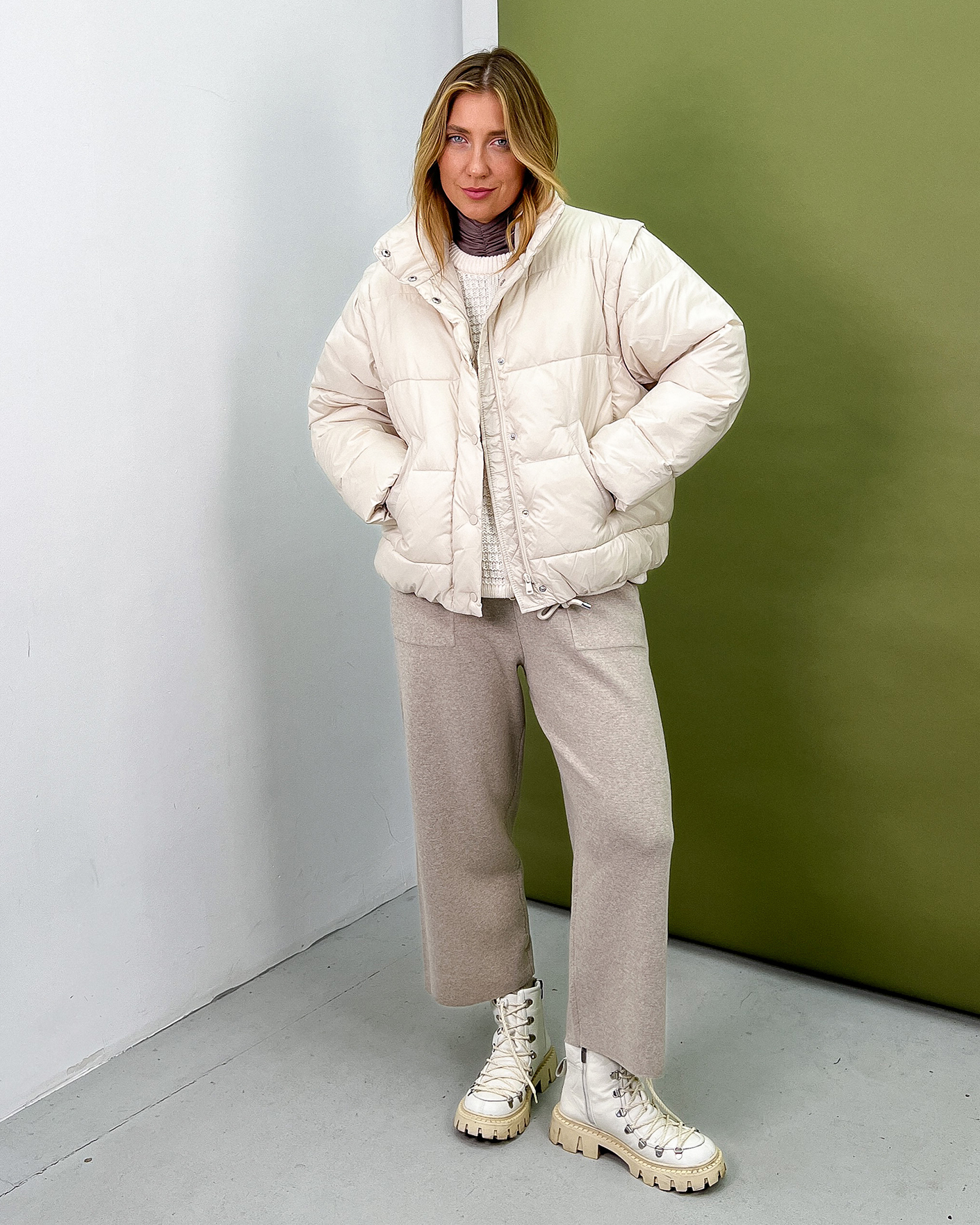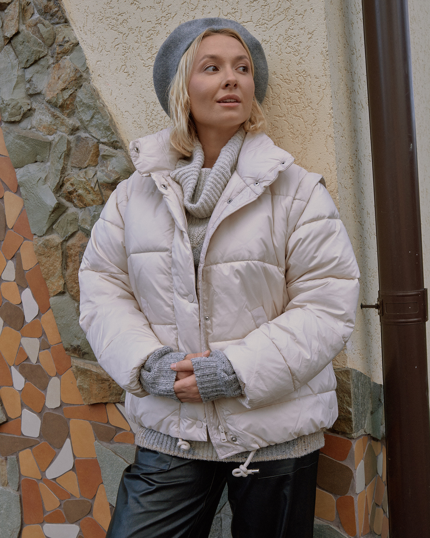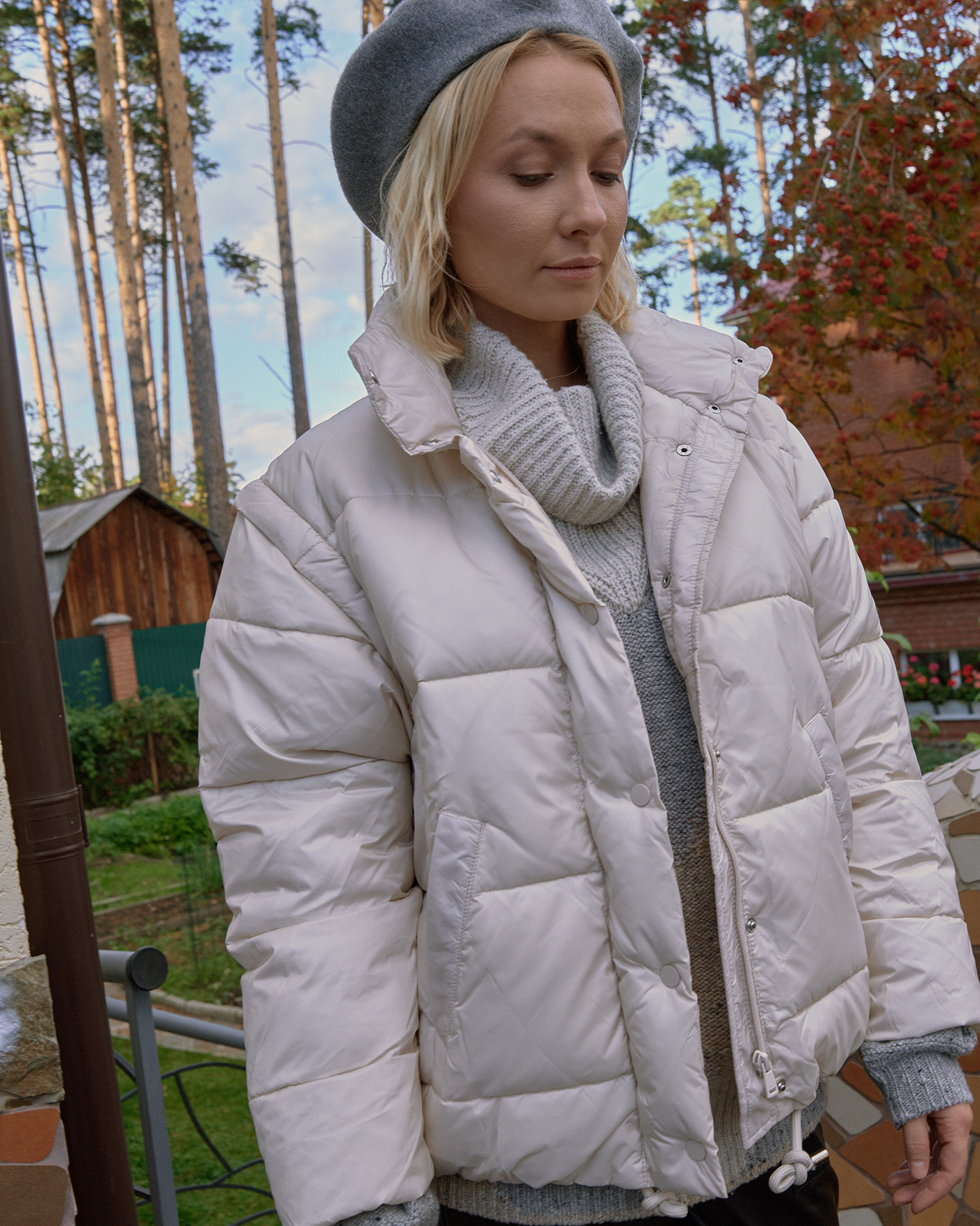 Куртка-трансформер OUI бежевого цвета в горизонтальную стежку. Модель с воротником-стойка, застежка на молнию и кнопки. Низ на вставной регулируемой кулиске, имеются врезные карманы по бокам. Стильная куртка станет фаворитом вашего верхнего гардероба на каждый день.