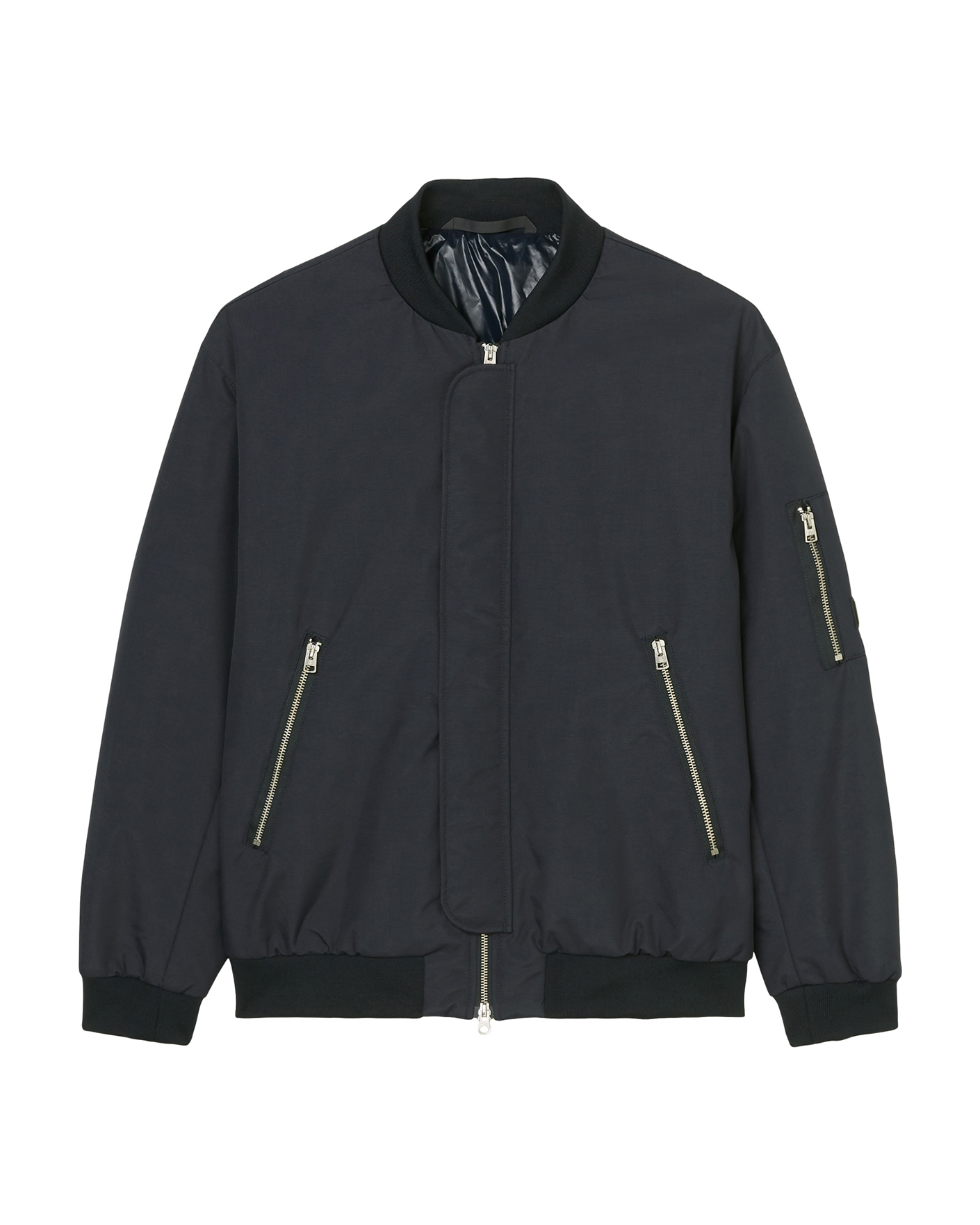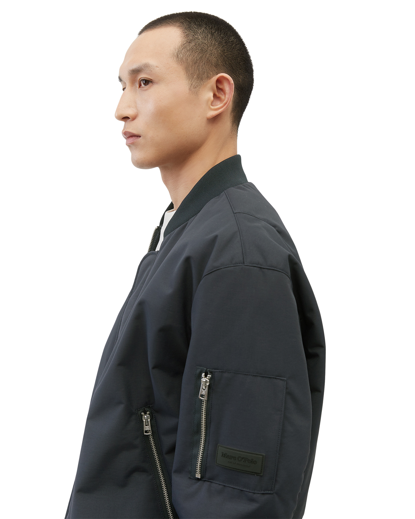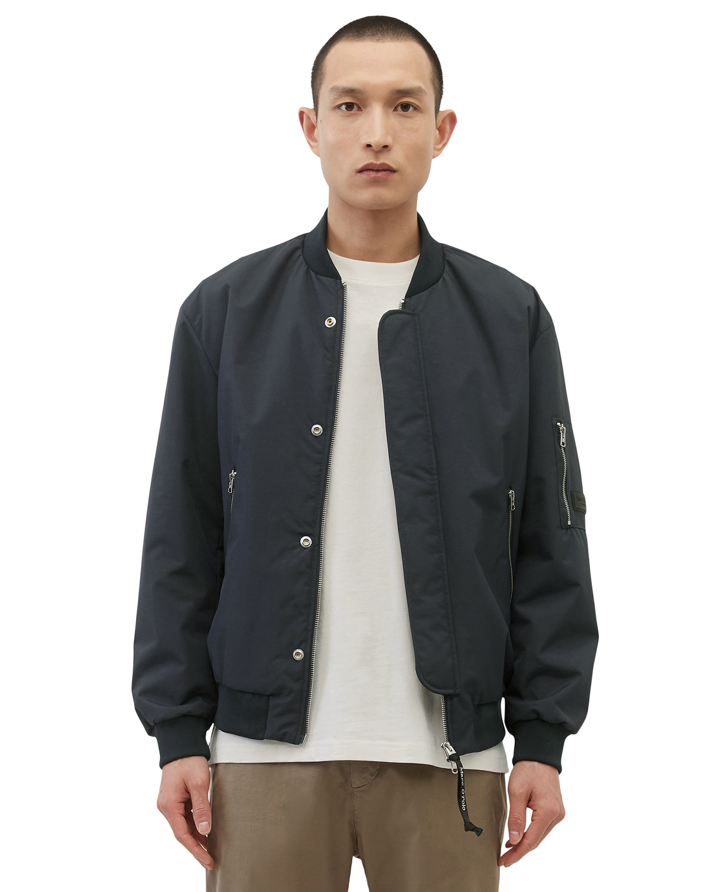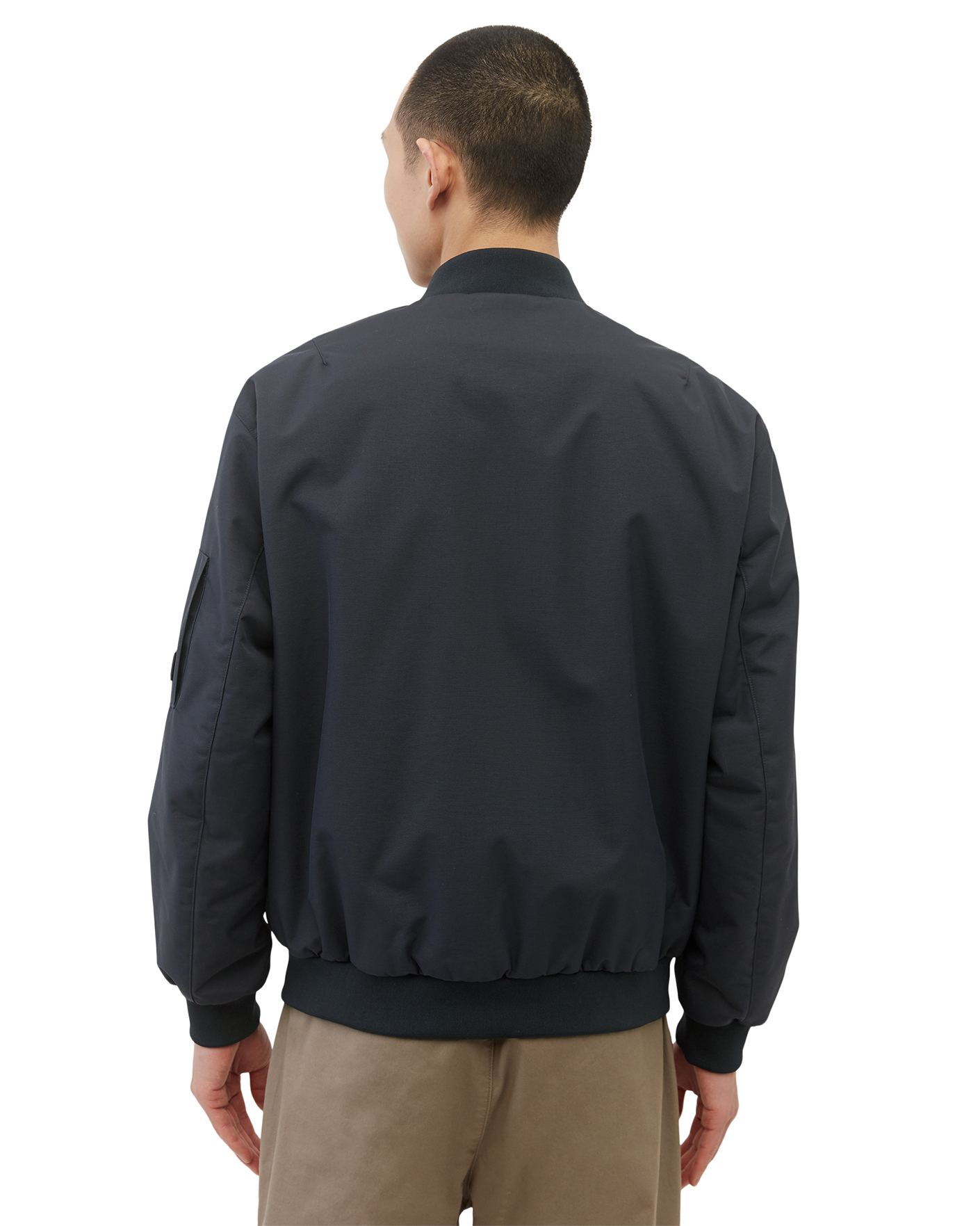 Куртка-бомбер Marc O'Polo фиолетово-синего цвета. Модель с удлиненным воротником, манжетами и низом на тонкой ребристой резинке. Застежка на молнию и скрытую планку на клепки. Имеются боковые карманы на молнии и один на плече с нашивкой логотипа. Куртка-бомбер станет идеальным спутником на каждый день.