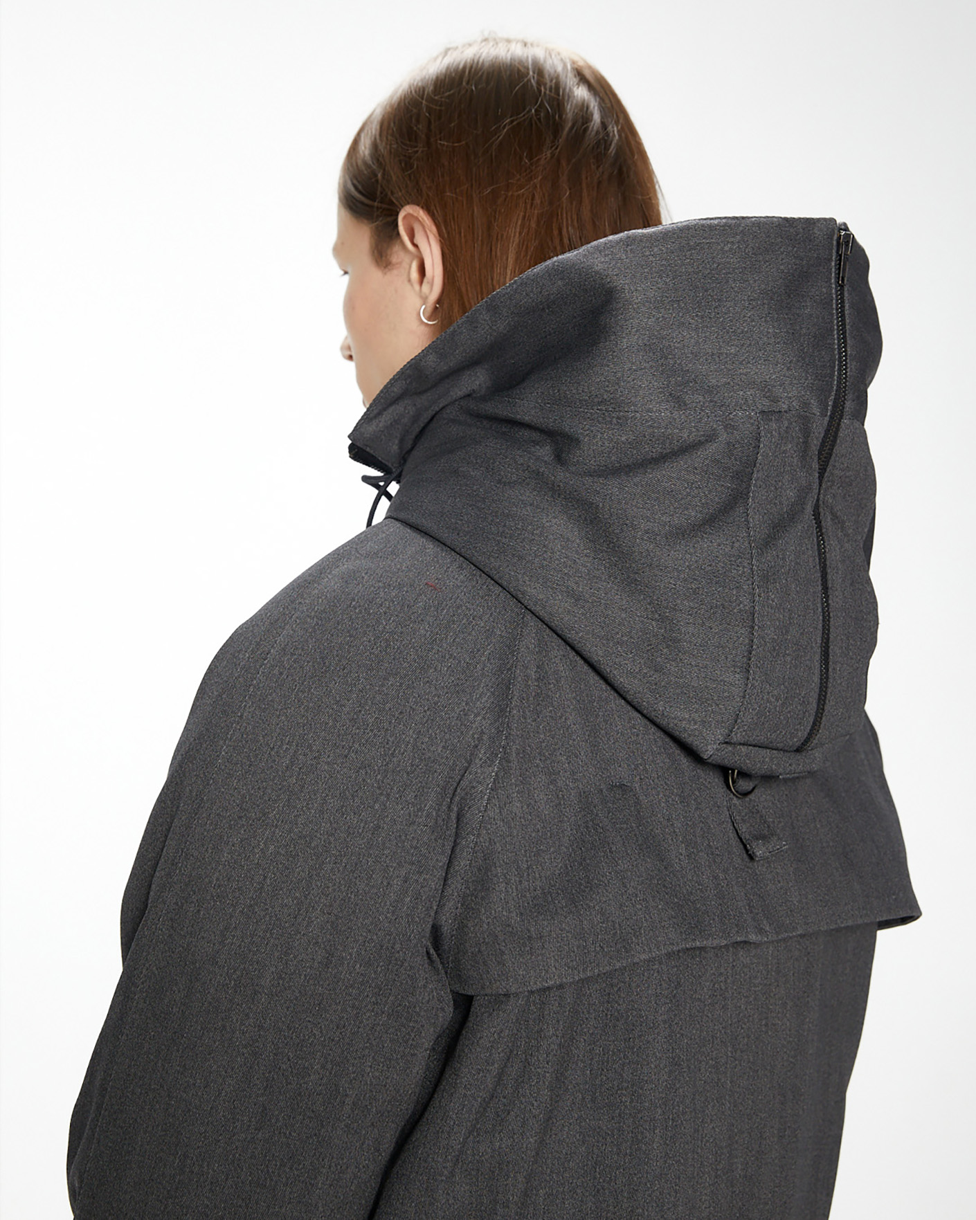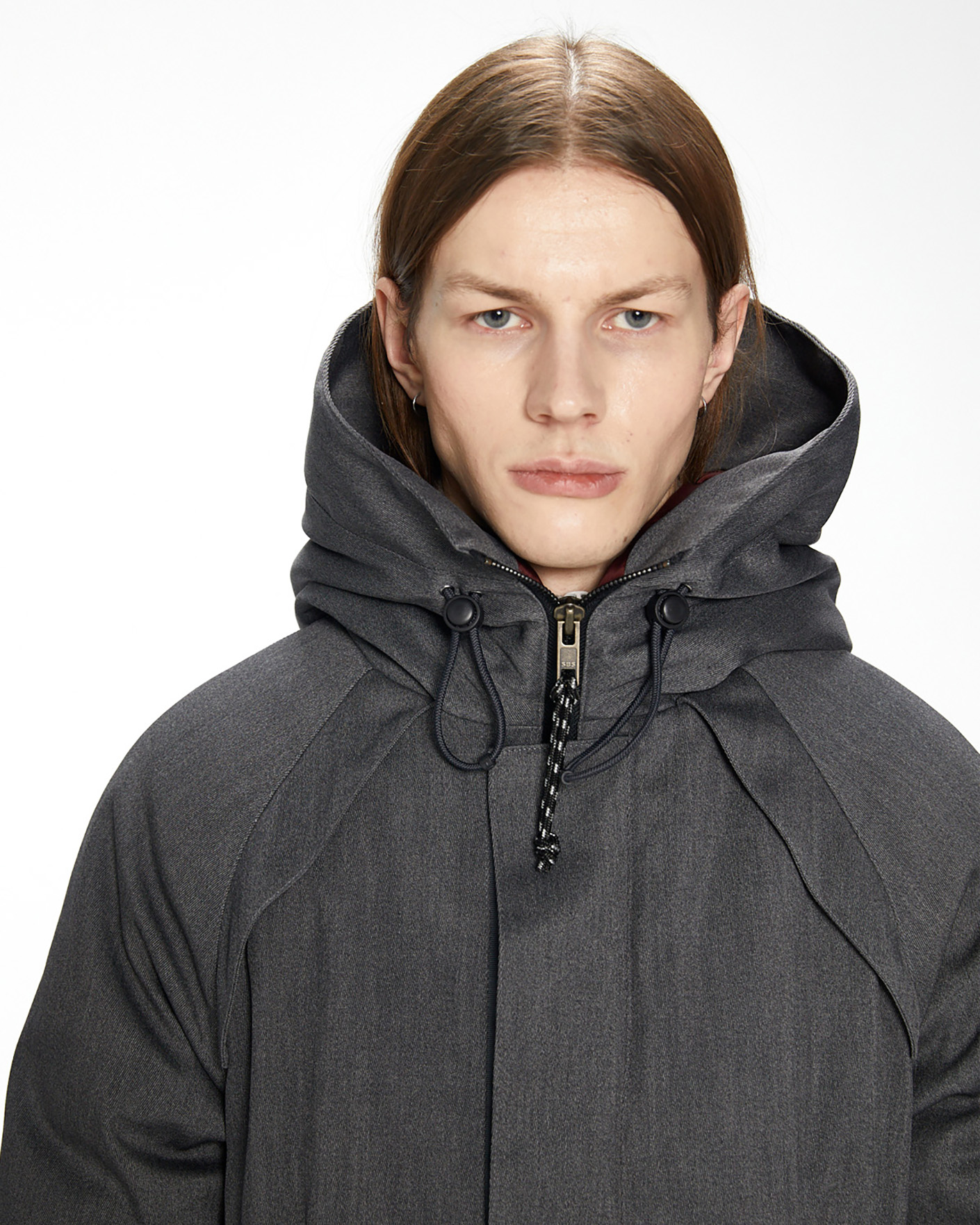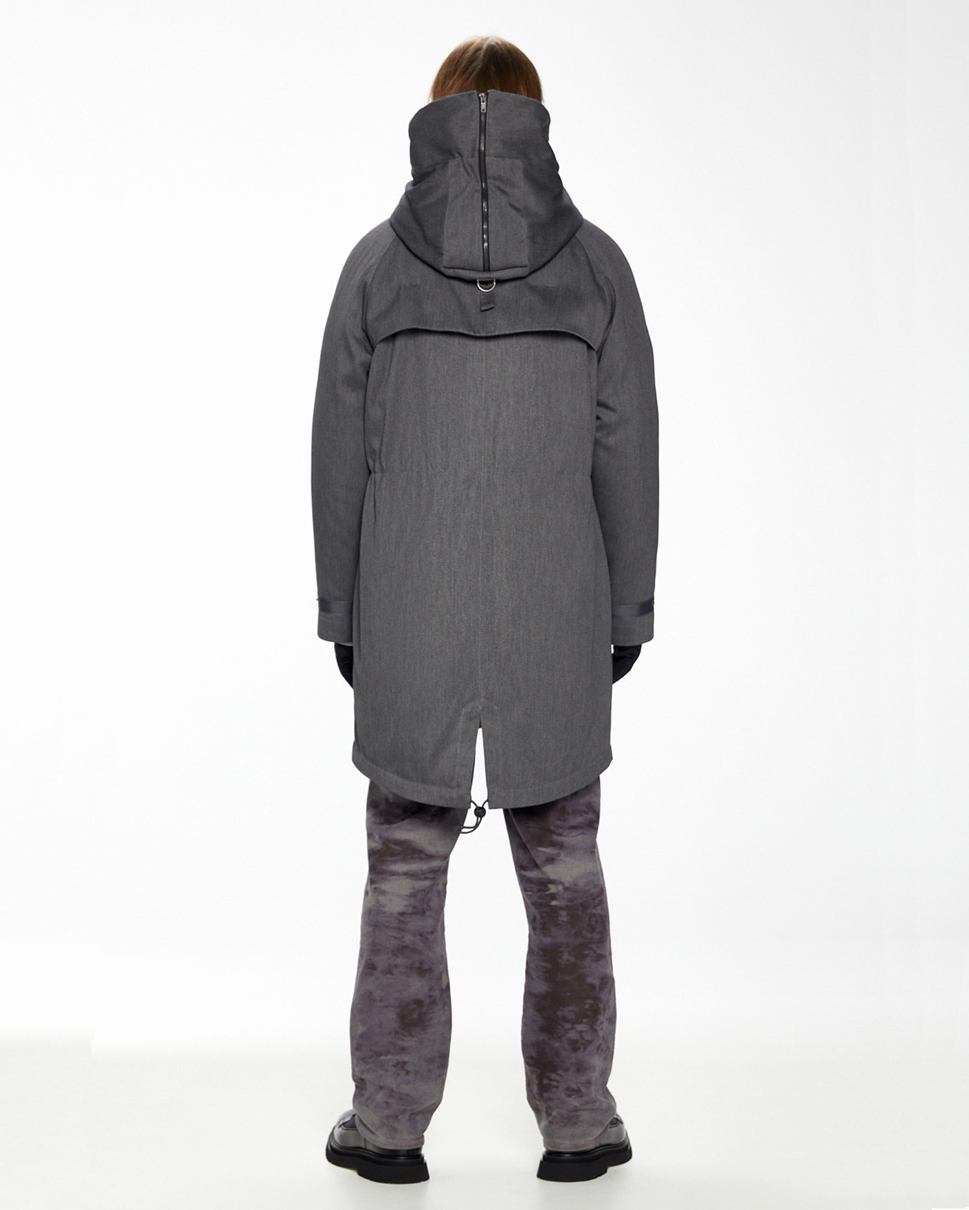 Утепленный пуховик-парка Novaya серого цвета. Модель с воротником-стойка, регулируемым капюшоном с молнией, застежка на молнию и планку на скрытые клепки, что обеспечивает максимальную защиту от холода. Регулируемые манжеты, линия пояса на кулиске, имеются карманы по бокам. Комфортный и теплый пуховик-парка станет идеальным спутником в холодное время года.