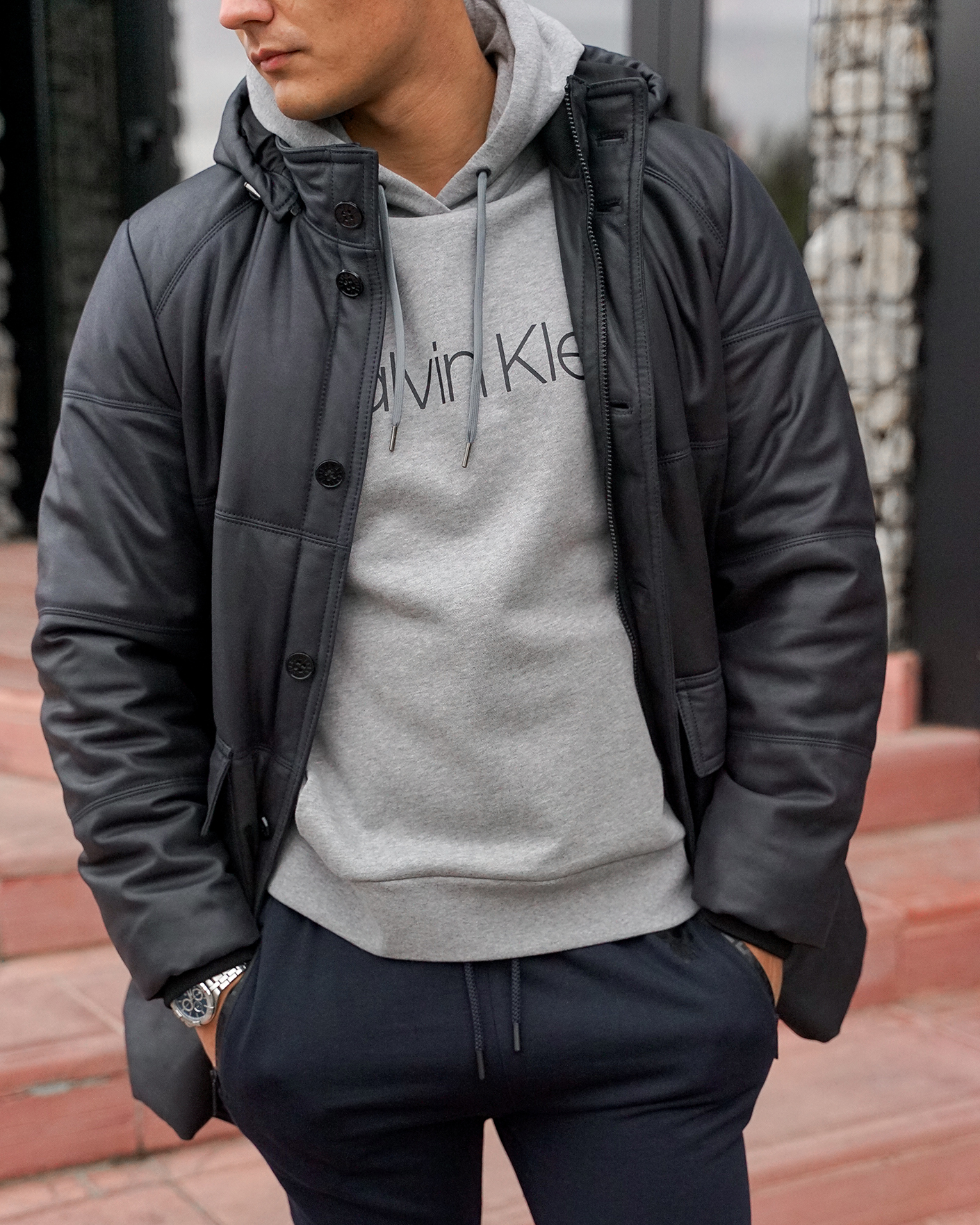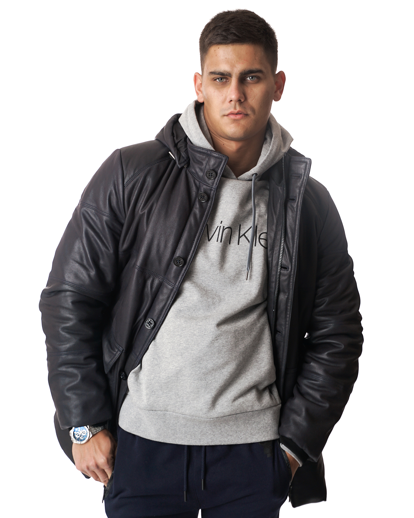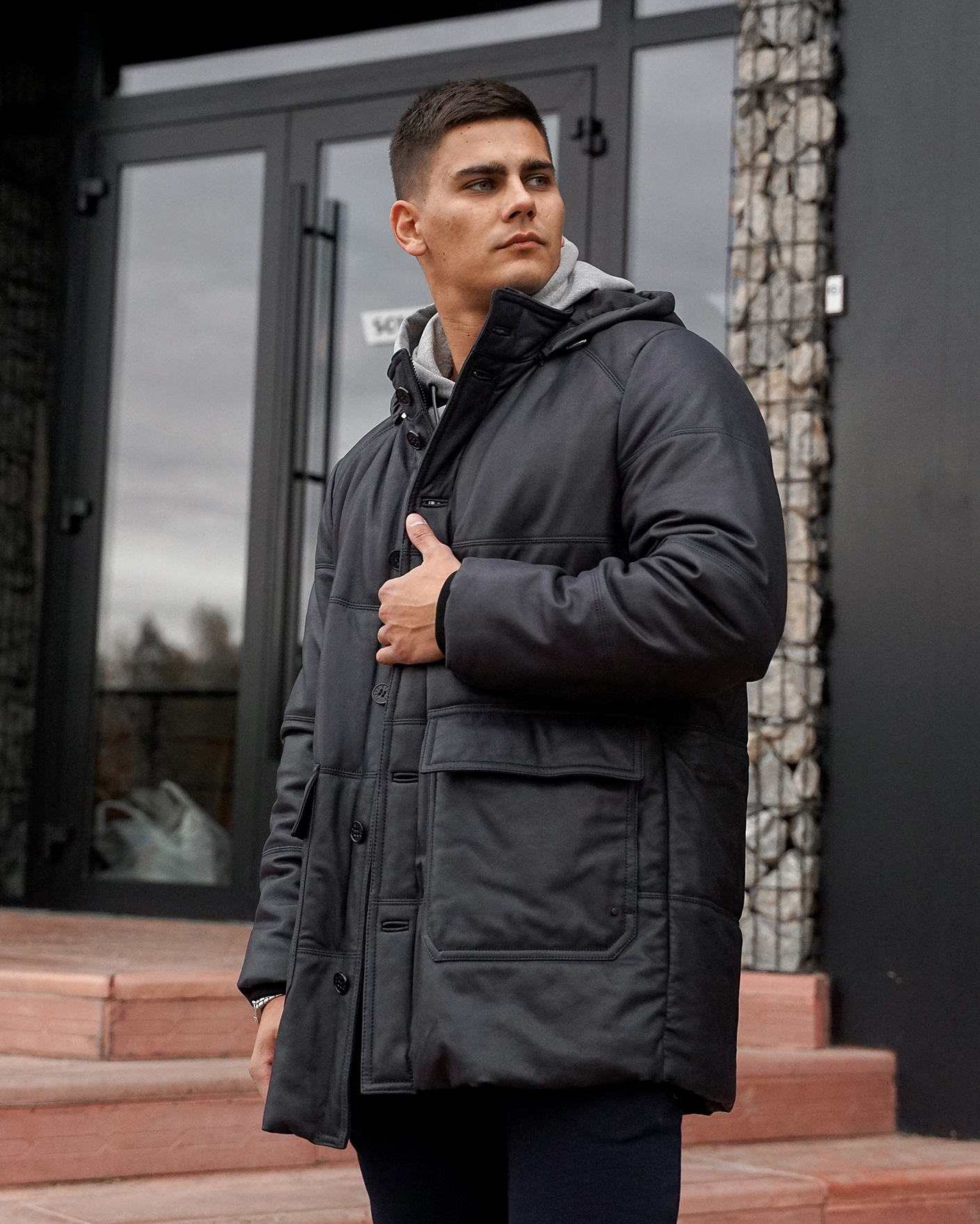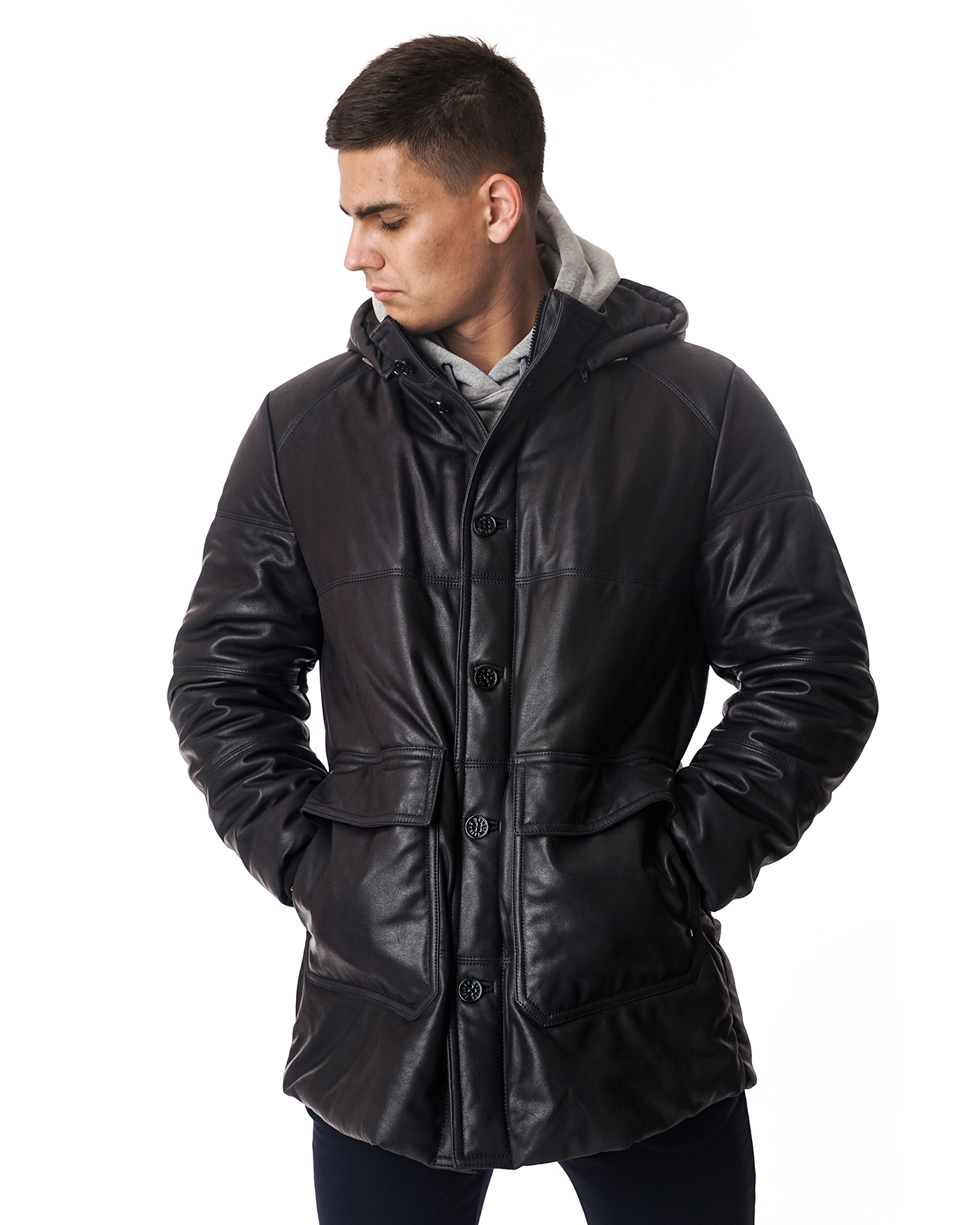 Удлиненная куртка Werner Christ с капюшоном, темно-синего цвета и в горизонтальную стежку. Яркая модель с деталями: воротник-стойка, застежка на молнию и планку на контрастных пуговицах ручной работы, два боковых кармана с отделкой и клапанами. Выполненная из 100% кожи, куртка станет фаворитом вашего гардероба.