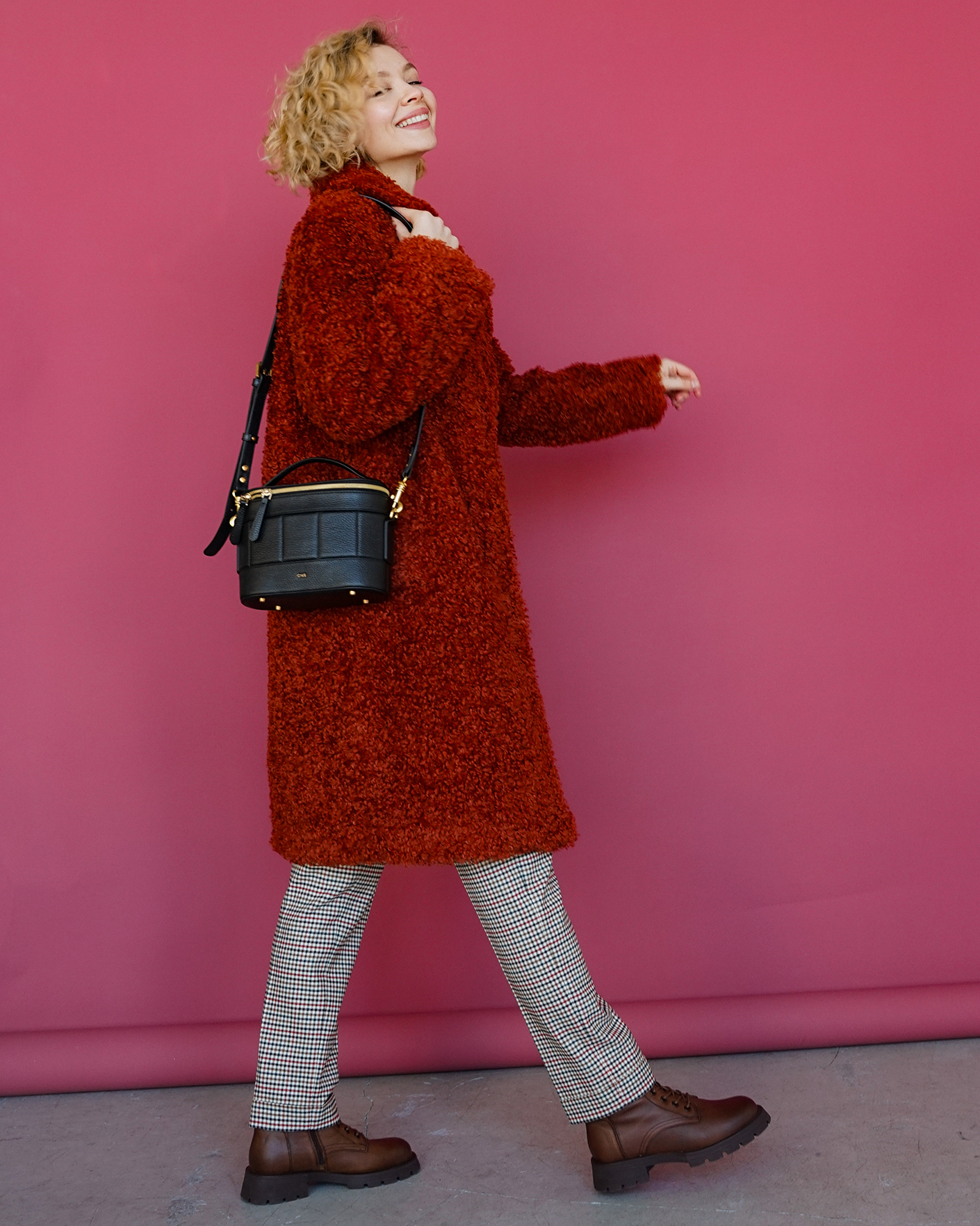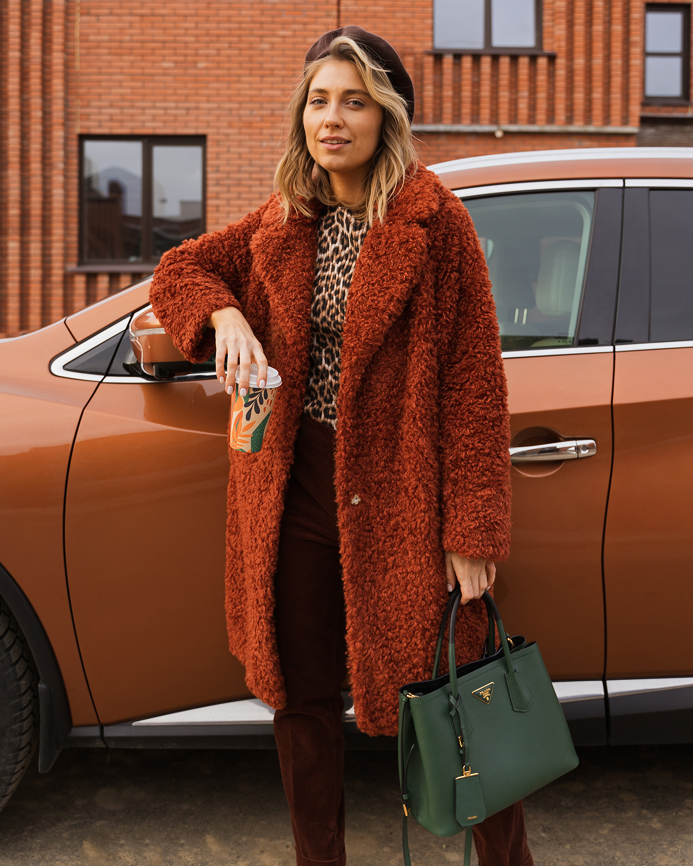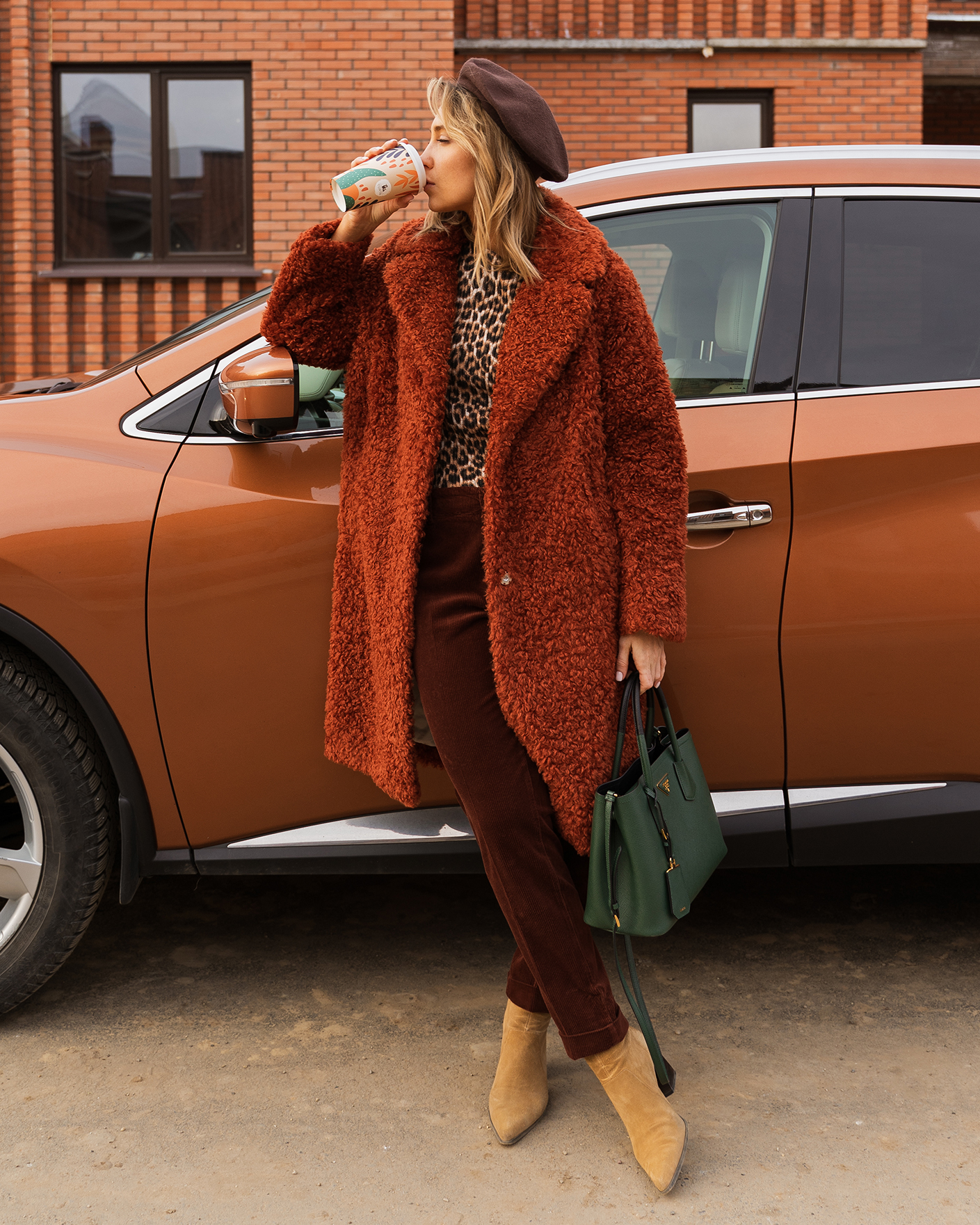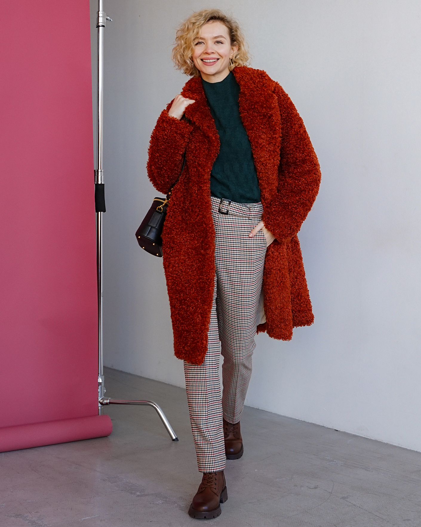 Стильный образ для работы в офисе: пальто, джемпер, брюки