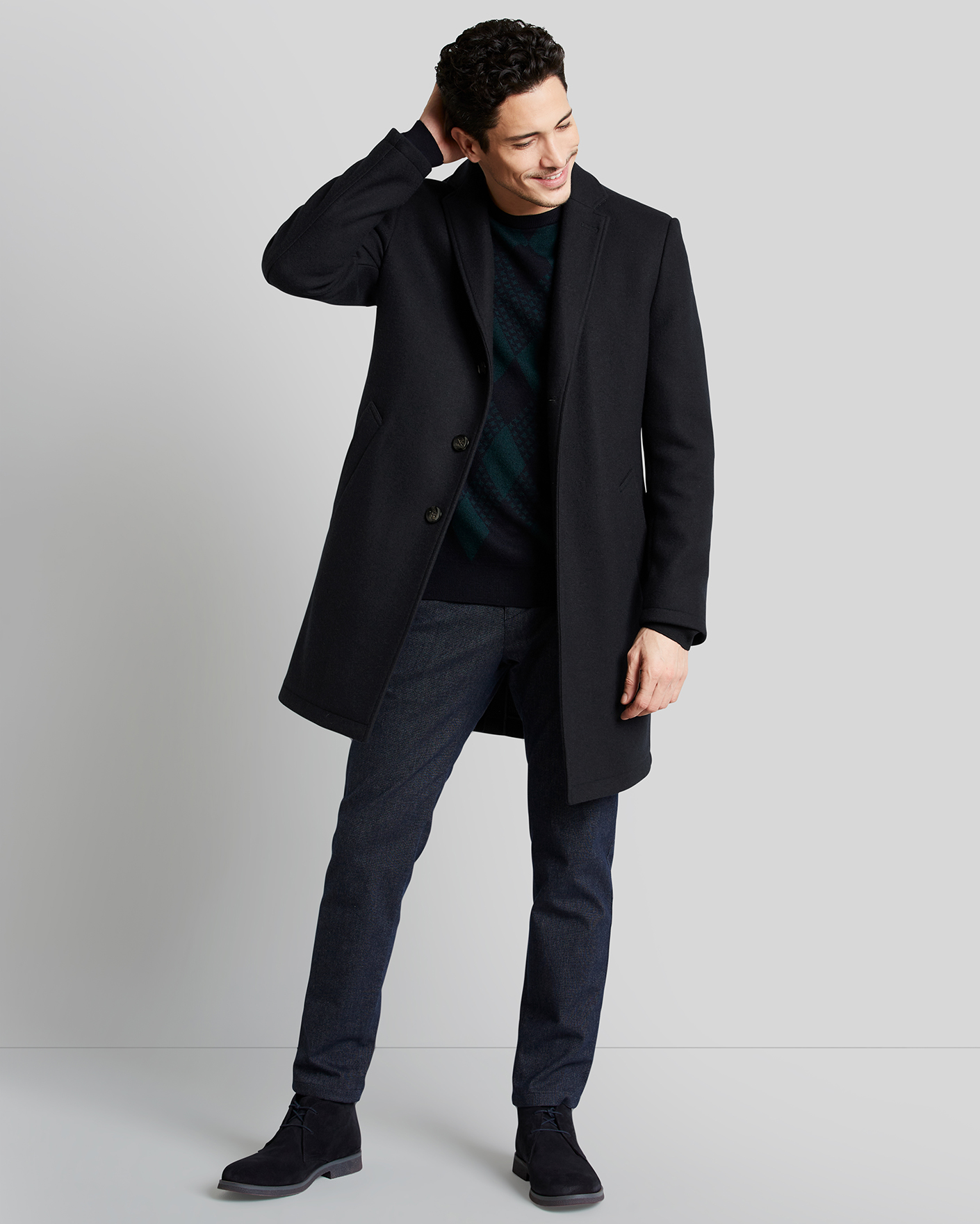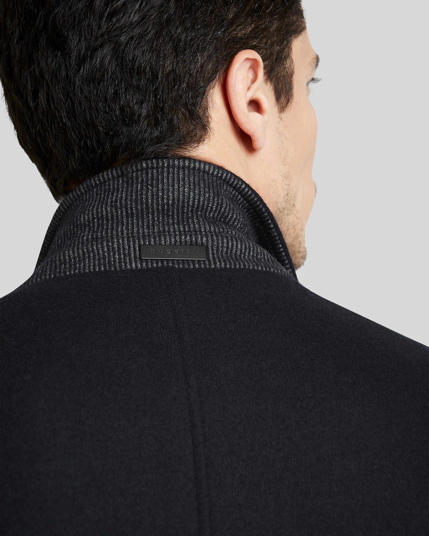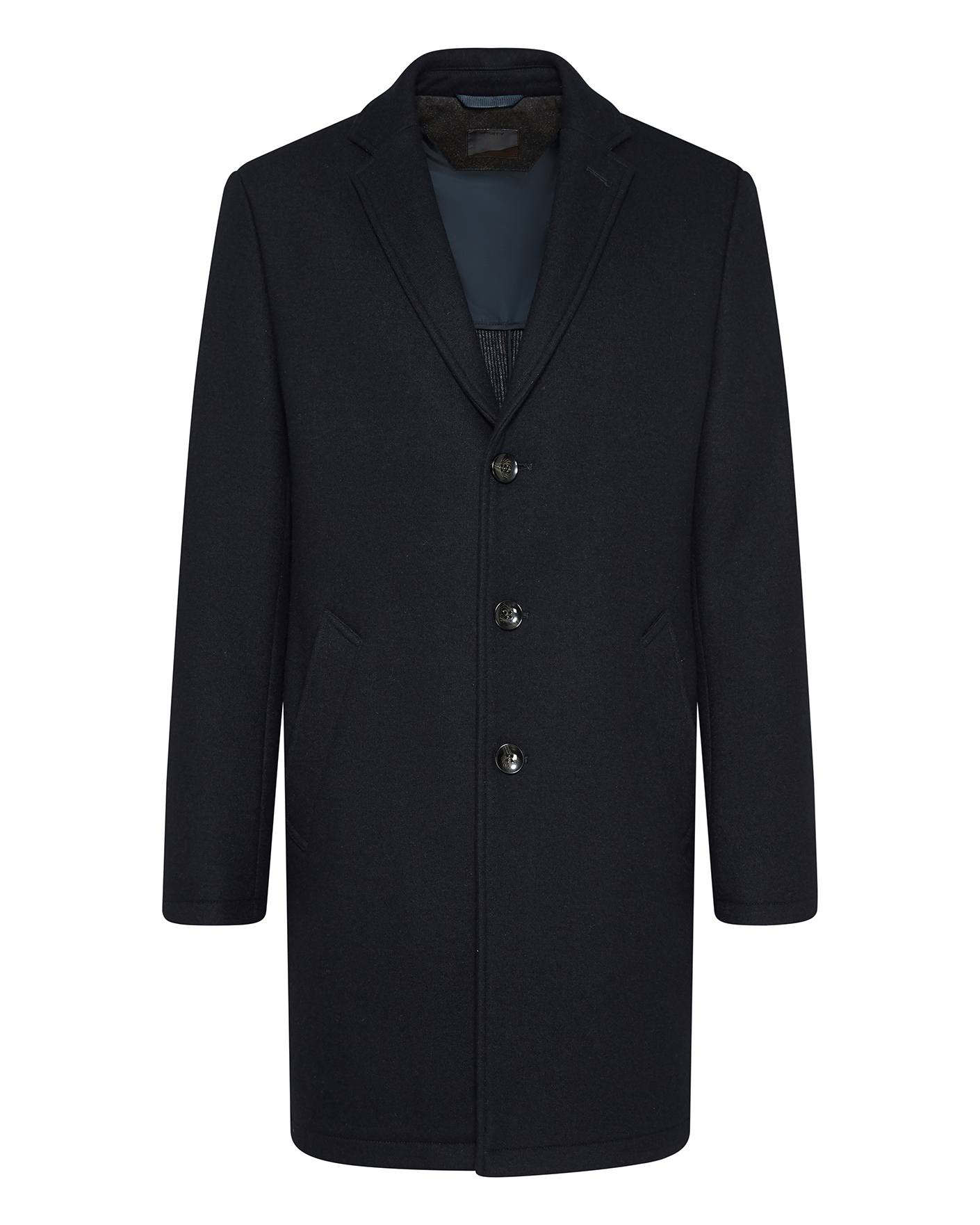 Классическое пальто Bugatti черного цвета. Модель с лацканами и застежкой на три пуговицы. Имеются врезные карманы по бокам. Пальто станет идеальным спутником на каждый день.