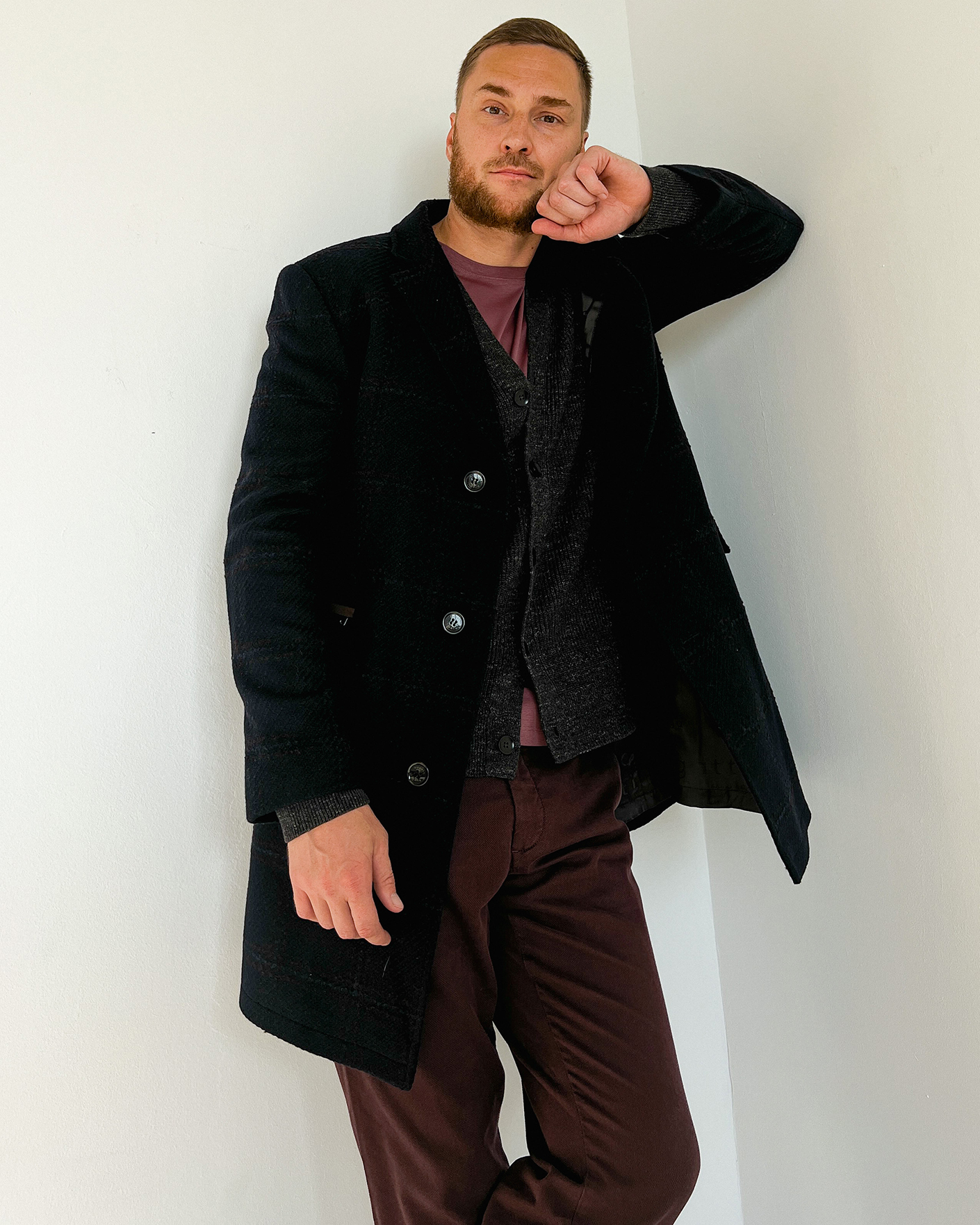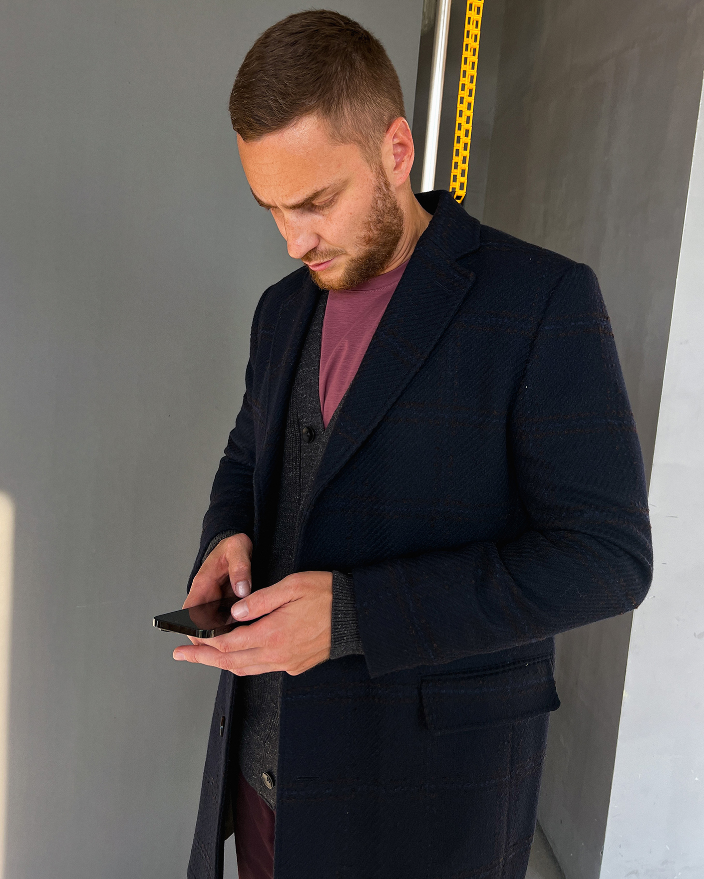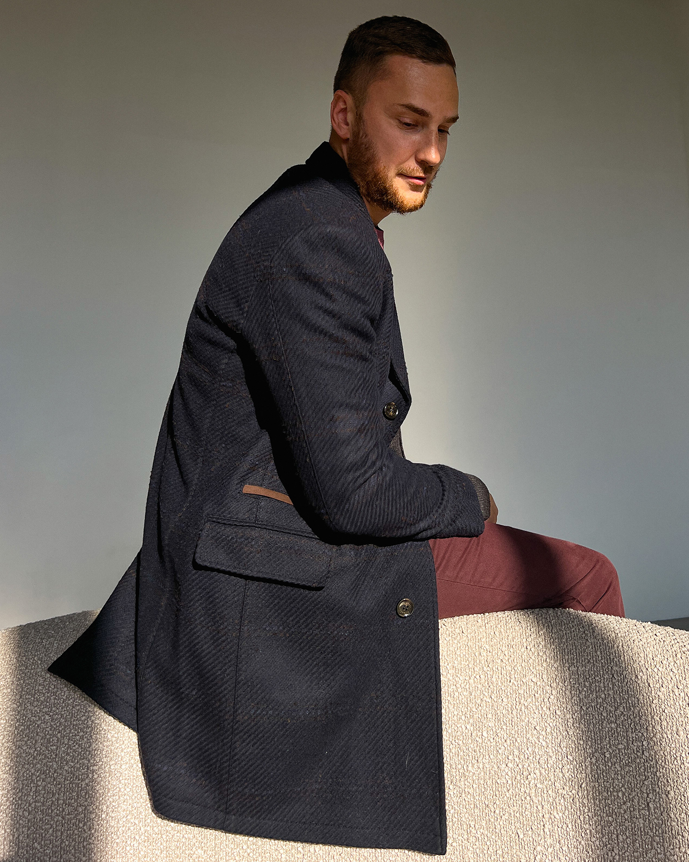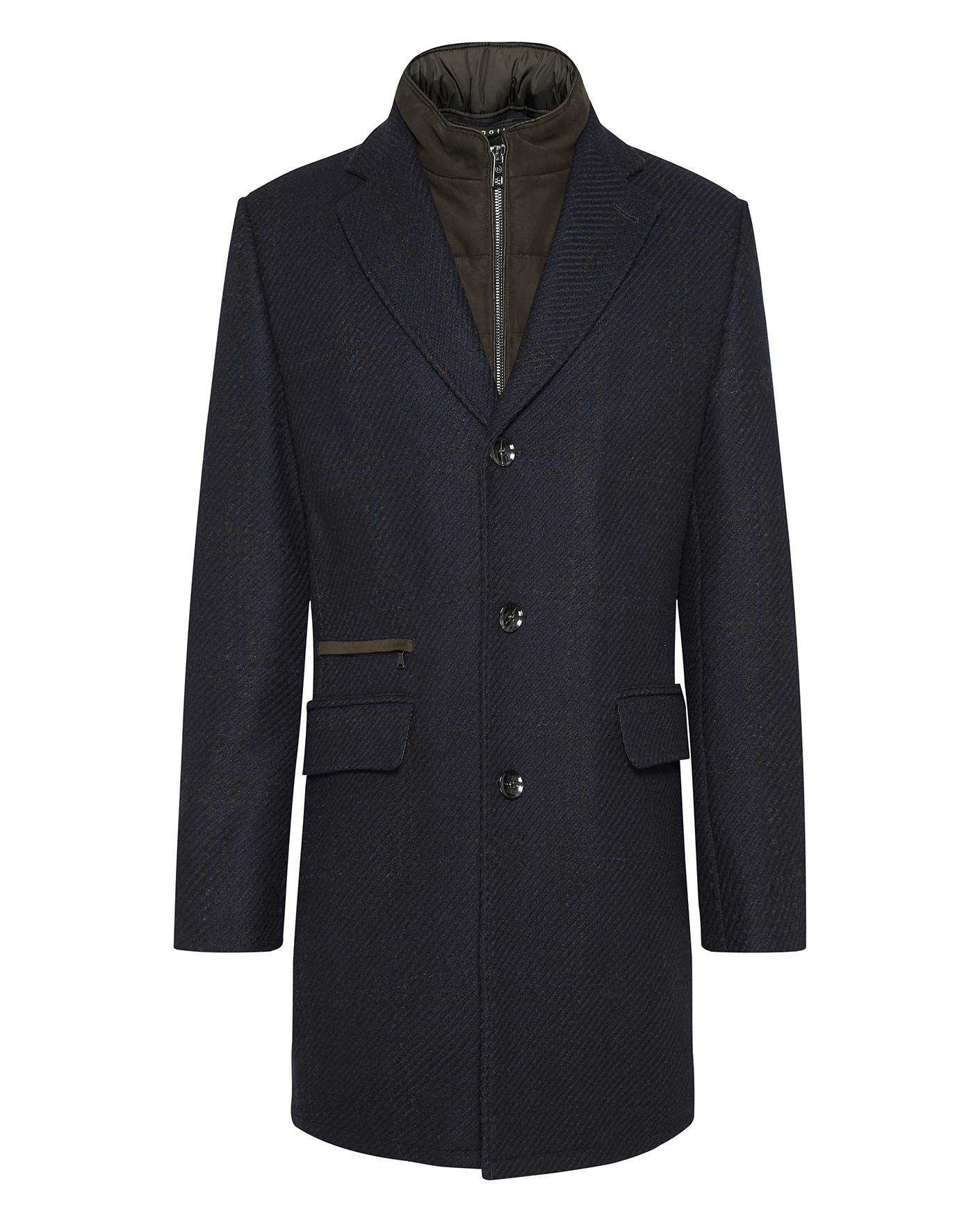 Теплое пальто Bugatti темно-синего цвета в диагональный строчный рисунок и крупную клетку. Модель с лацканами, застежка на три пуговицы, имеется внутренняя манижка на молнии. Также карманы с клапанами по бокам. Стильное пальто станет фаворитом вашего гардероба.