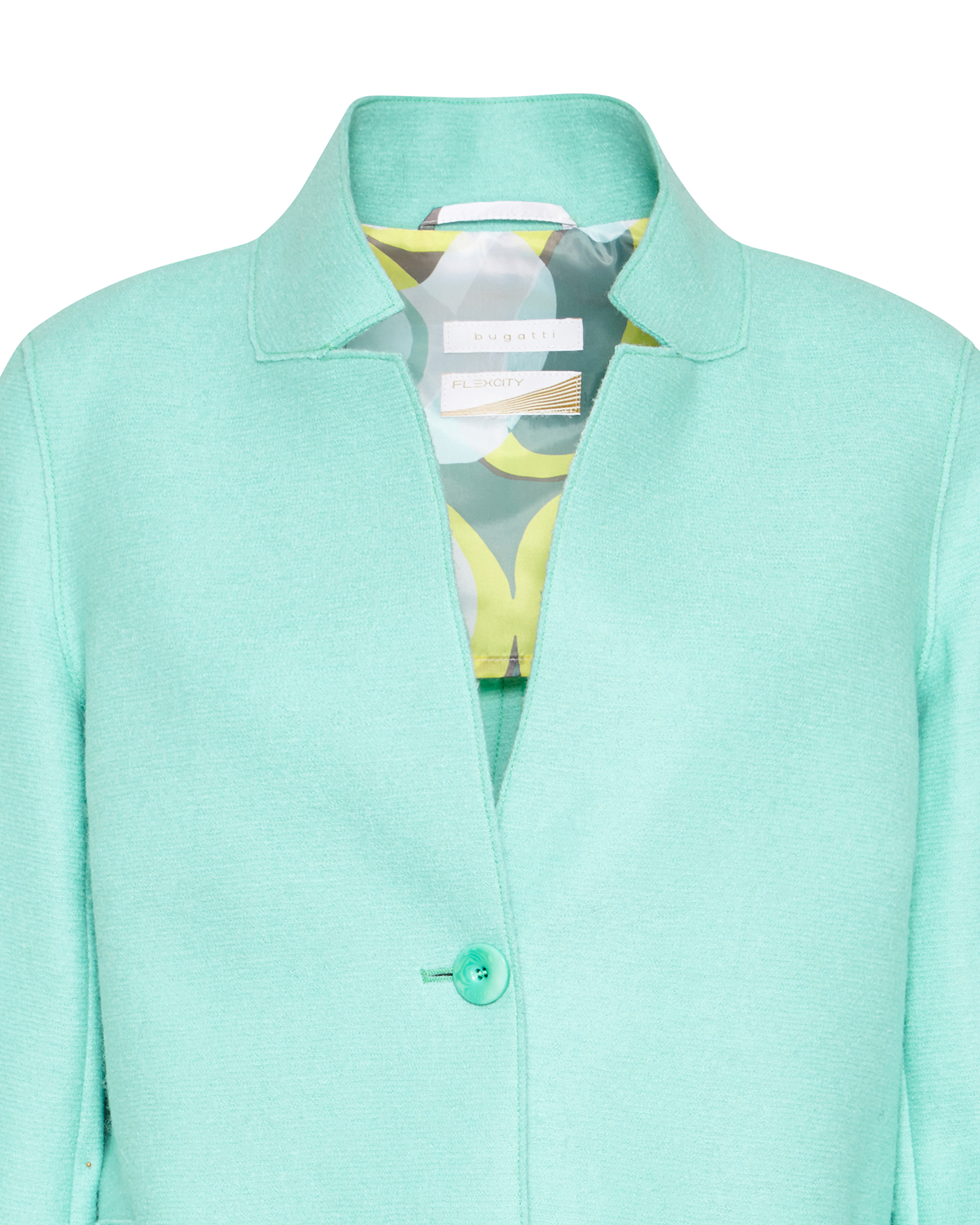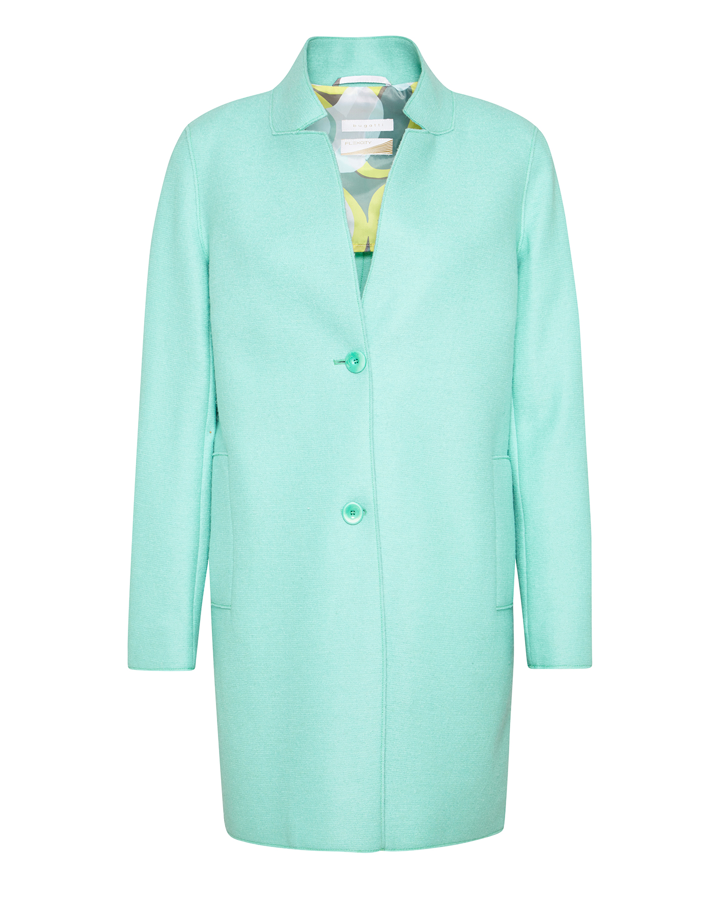 Стильное пальто Bugatti мятного цвета выполнено из 100% шерсти. Модель с воротником-стойка, V-образным вырезом с застежкой на две пуговицы. Имеются врезные карманы по бокам. Пальто отлично впишется в ваш гардероб.