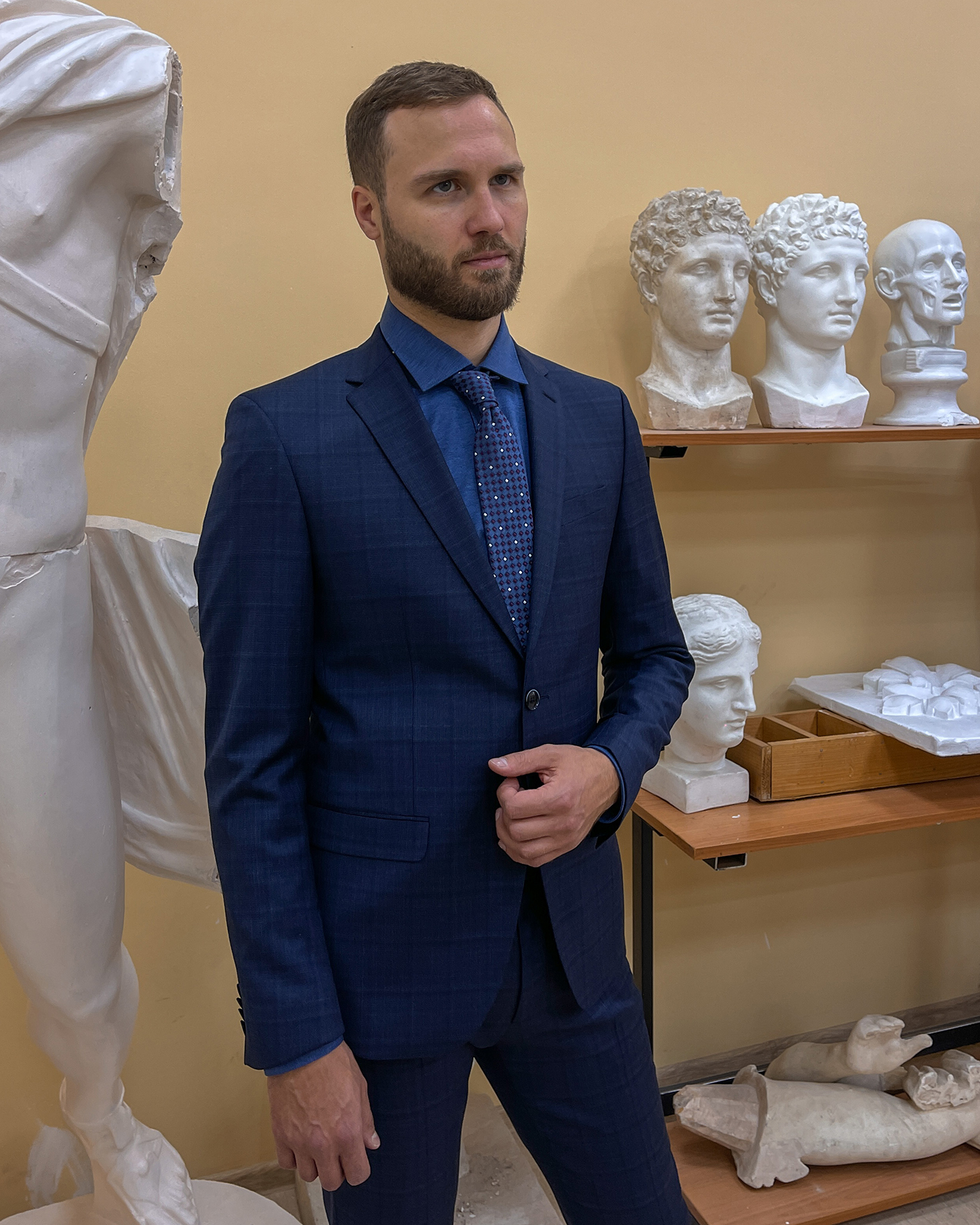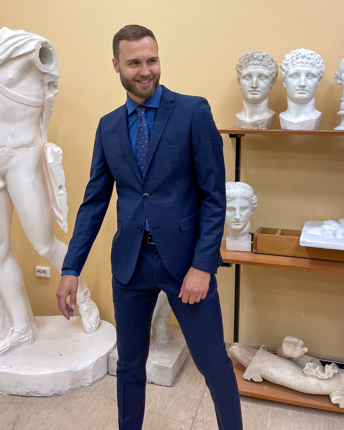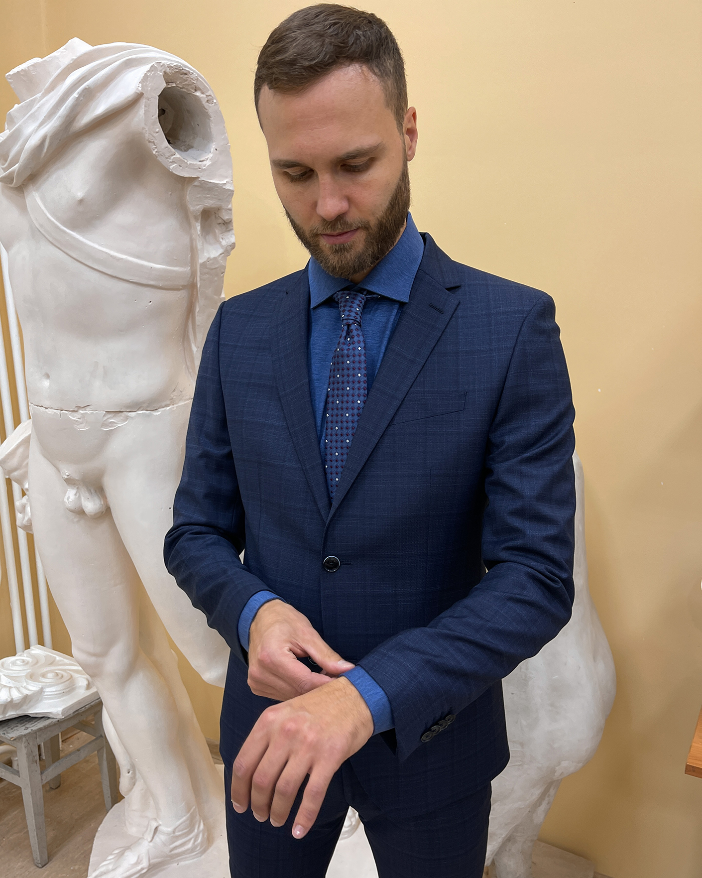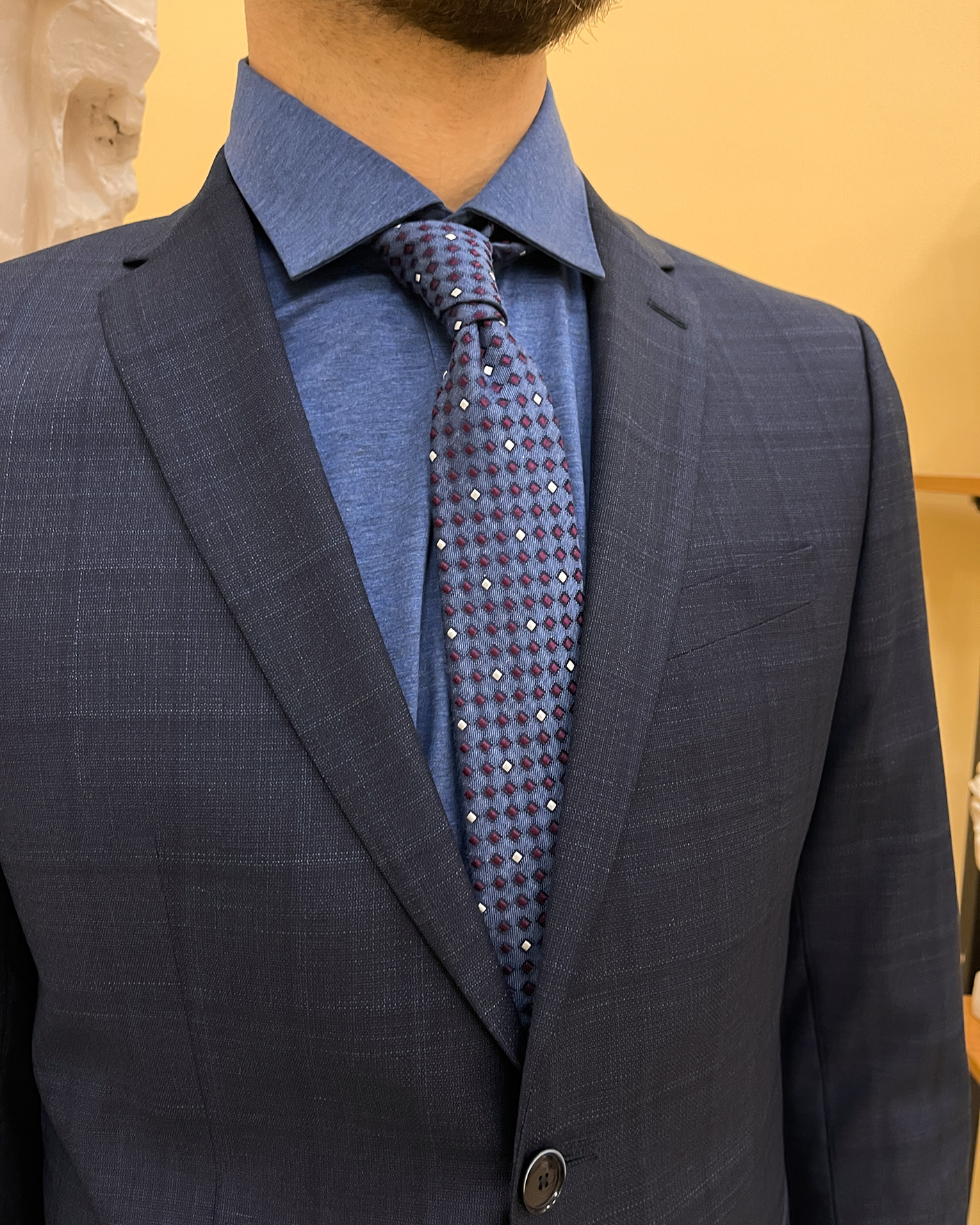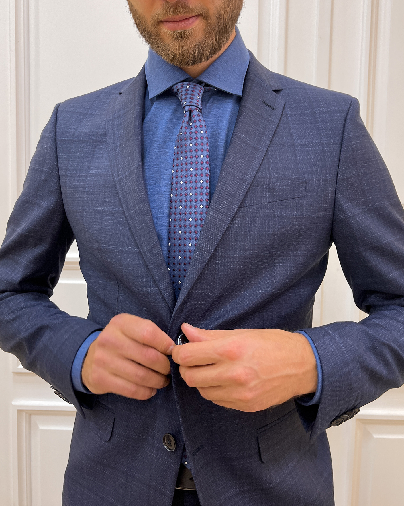 Пиджак Digel фиолетово-инего цвета в оптическую клетку. Модель выполнена из высококачественной шерсти с небольшим добавлением эластана. Имеются лацканы, две пуговицы и врезные краманы с клапаном. Пиджак отлично сочетается с рубашкой и брюками.