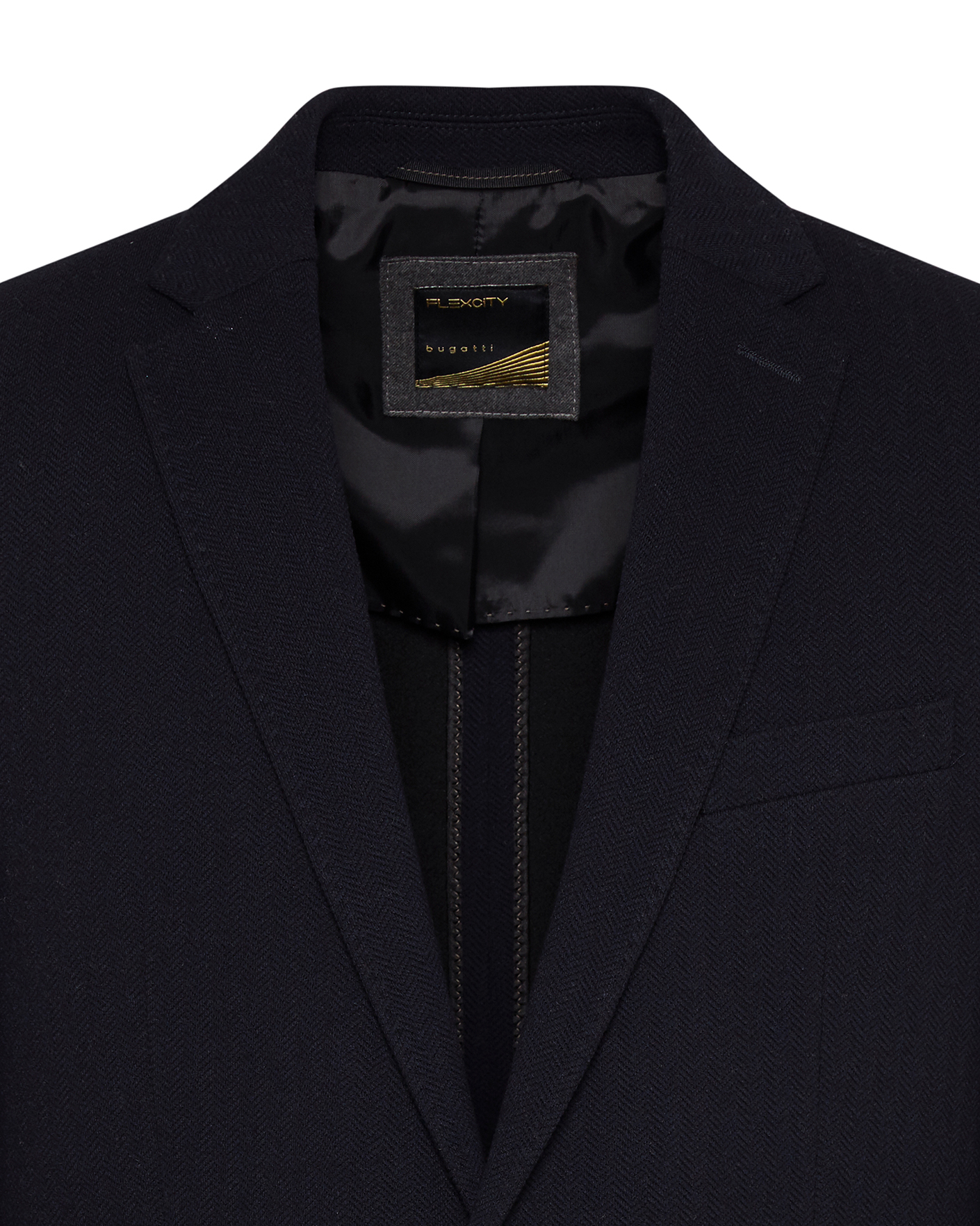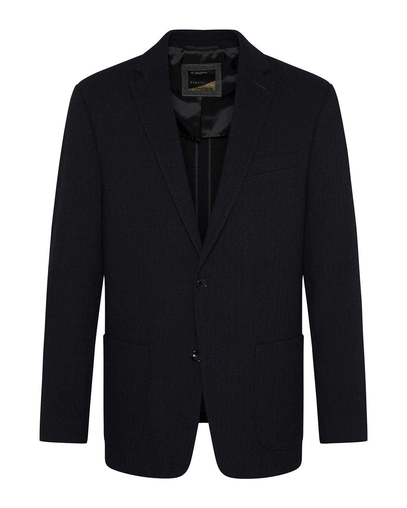 Пиджак Bugatti фиолетово-синего цвета в строчный вертикальный рисунок. Модель с лацканами, застежка на две пуговицы, имеются накладные карманы по бокам и врезной нагрудный. Пиджак отлично впишется в ваш гардероб.