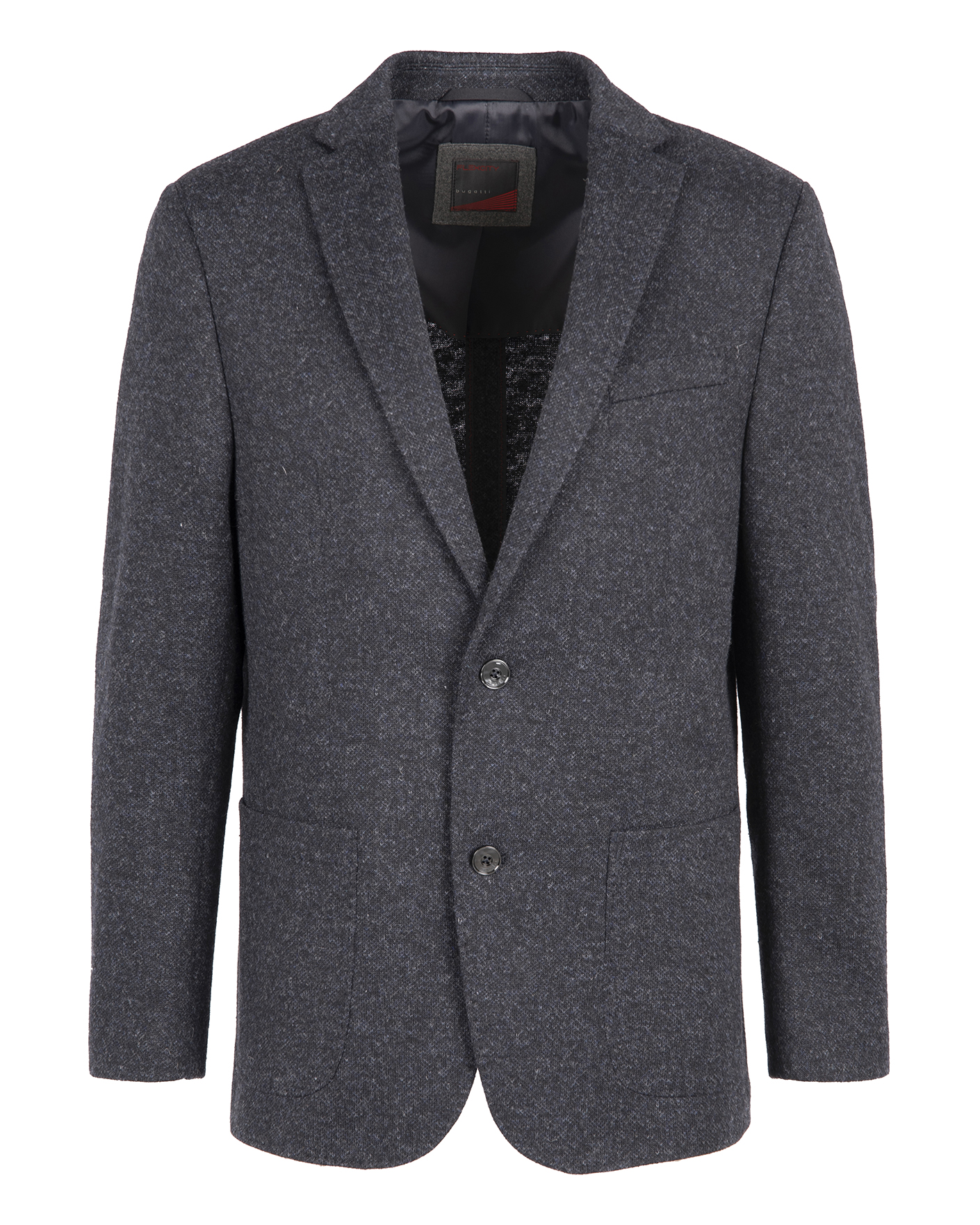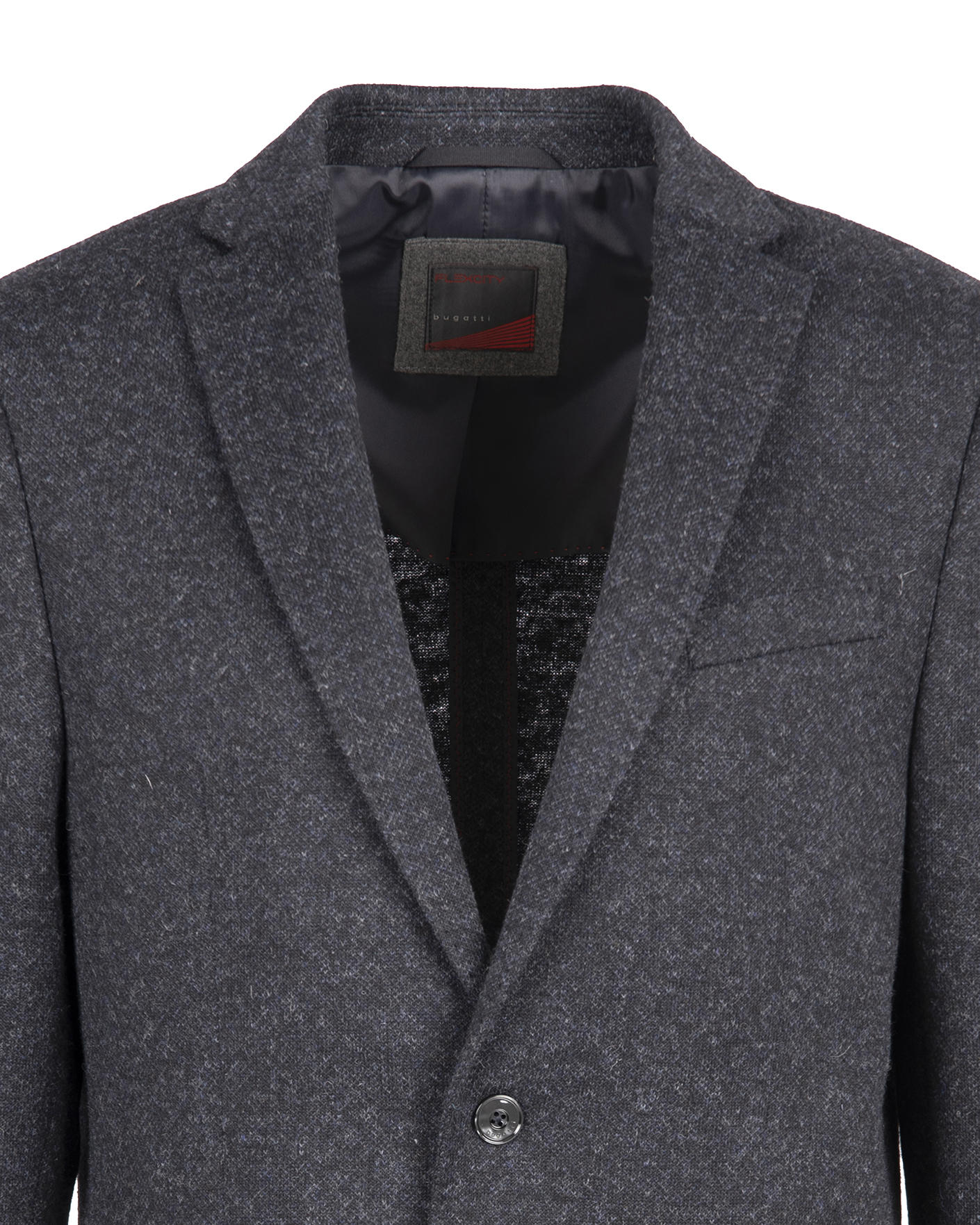 Пиджак Bugatti серо-черного цвета в мелкий текстурный рисунок. Модель с лацканами, застежка на две пуговицы, имеются накладные карманы по бокам и врезной нагрудный. Пиджак отлично впишется в ваш гардероб.