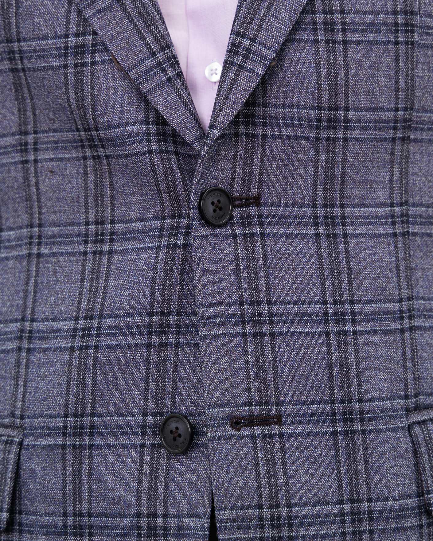 Пиджак Truvor сине-серого цвета в крупную клетку. Модель с лацканами, застежкой на две пуговицы, имеются врезные краманы с клапанами по бокам. Пиджак можно сочетать с жилетом, рубашкой, поло и брюками.