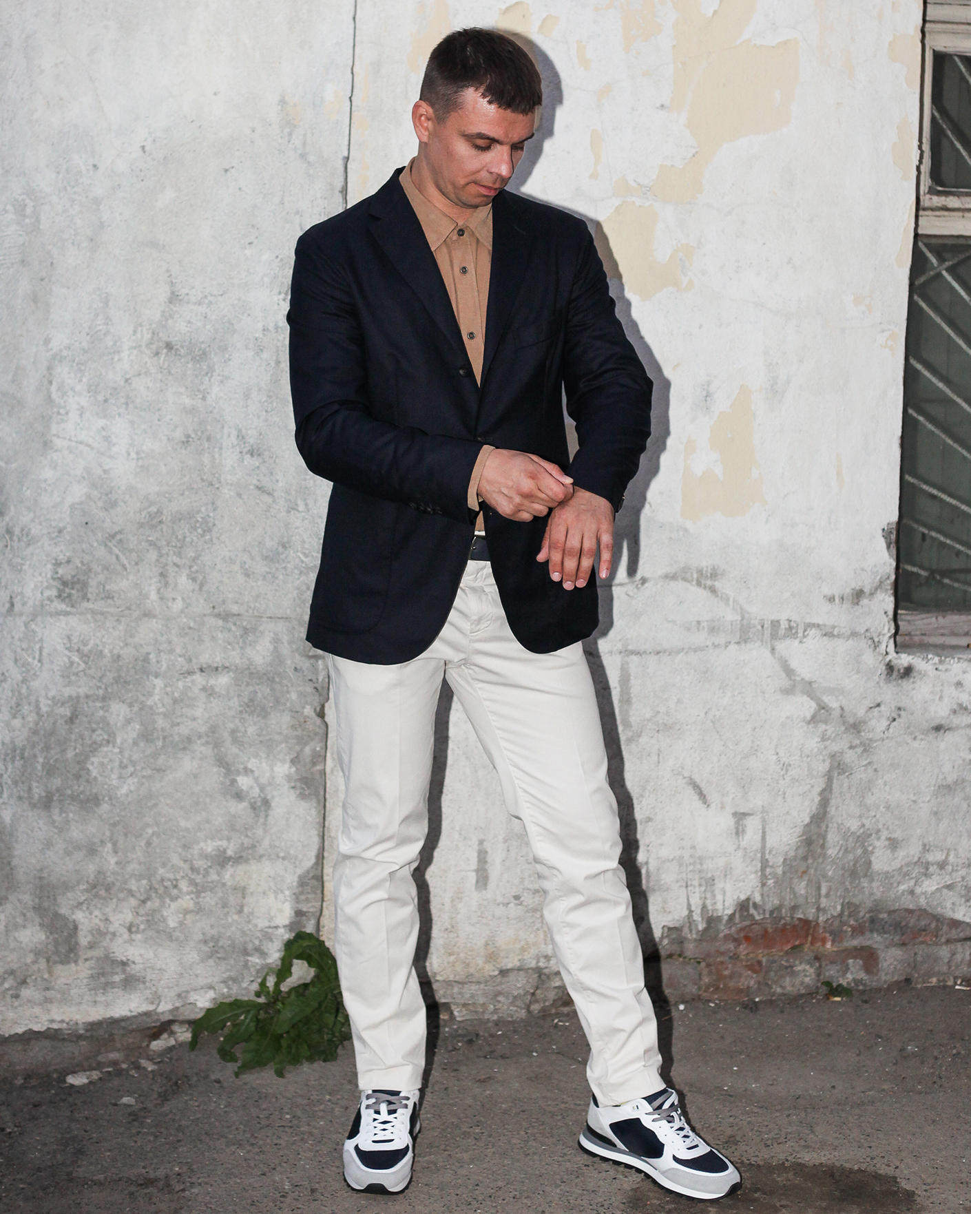 Пиджак Peserico черно-синего цвета в строчный рисунок. Модель с лацканами, застежка на пуговицы, накладные карманы по бокам. Шерстяной пиджак отлично впишется в ваш гардероб.