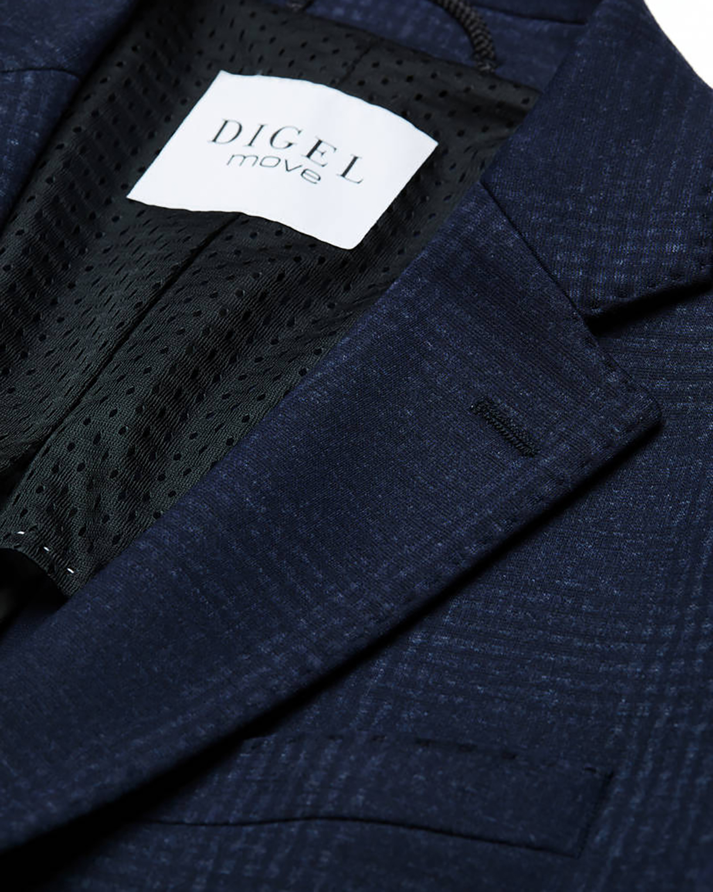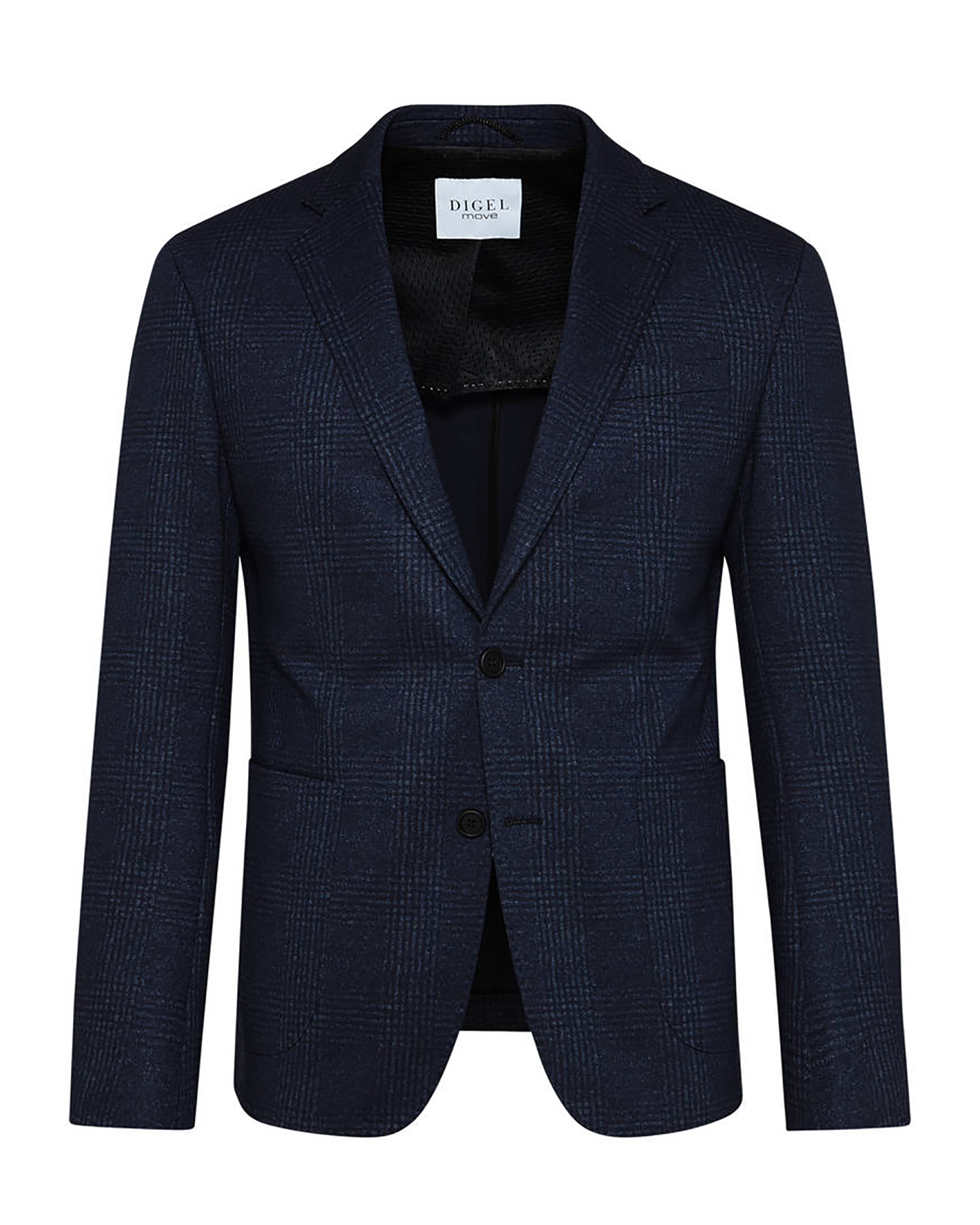 Пиджак Digel сине-фиолетового цвета в крупную клетку. Модель с лацканами и застежкой на две пуговицы. Имеются накладные карманы по бокам. Пиджак можно сочетать с рубашкой, поло, джемпером, тонкой водолазкой, жилетом и брюками.