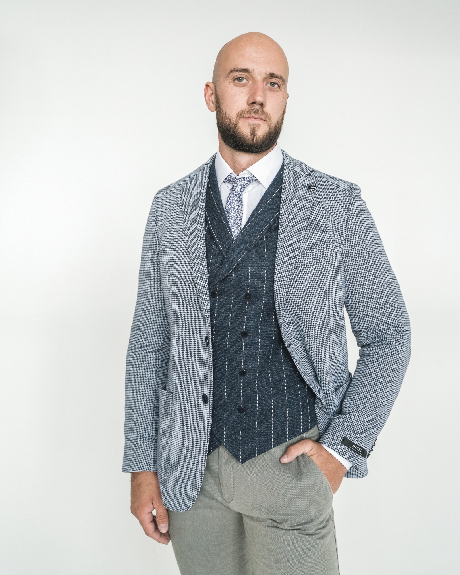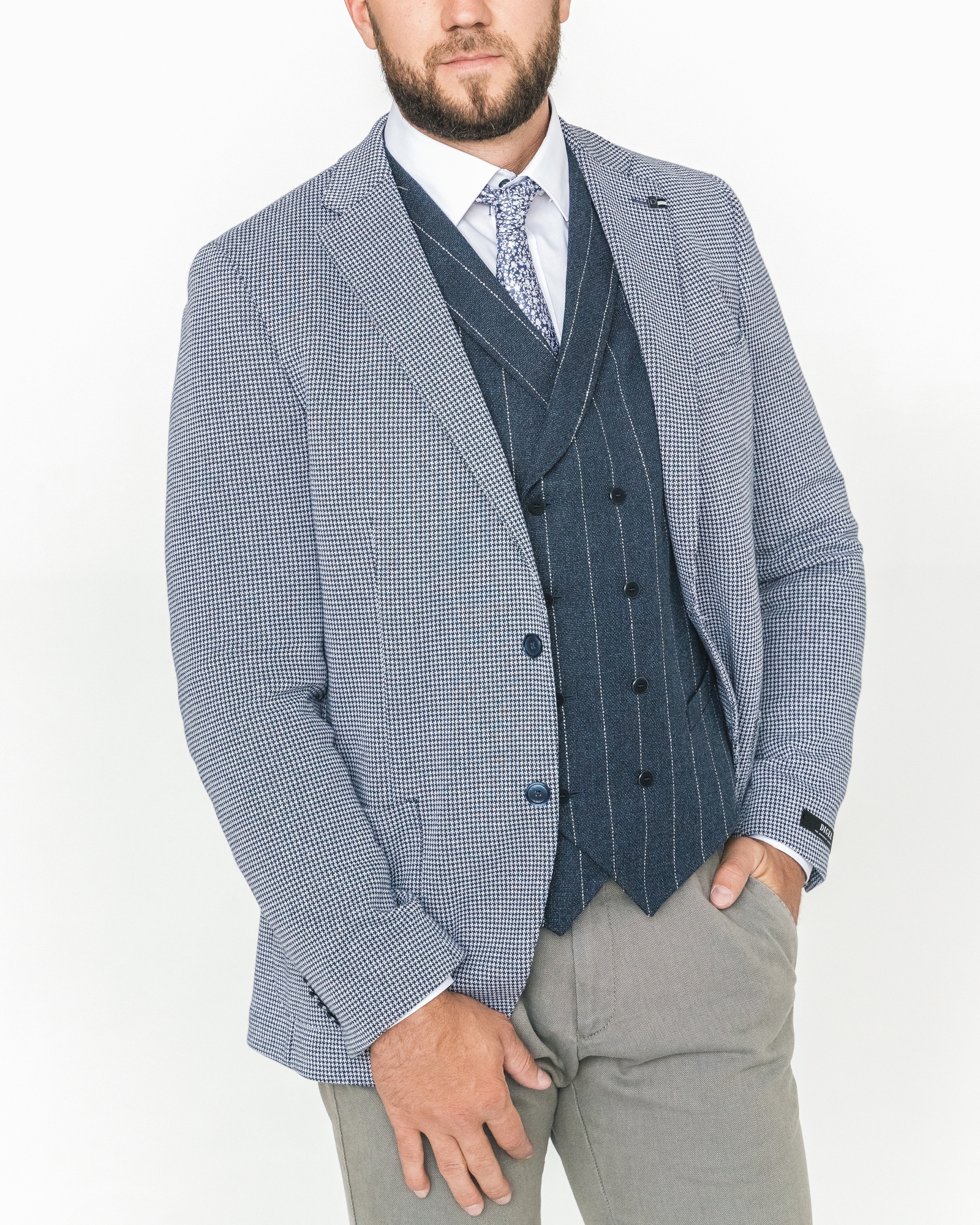 Стильный пиджак DIGEL темно-синего цвета в мелкую клетку, с лацканами и застежкой на контрастные синие пуговицы. Пиджак можно сочетать с рубашкой, легкой футболкой-поло, брюками, как однотонными, так и с принтом. Данная модель станет отличным вариантом на каждый день.