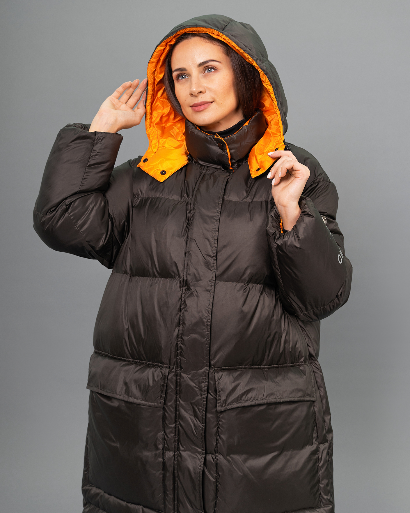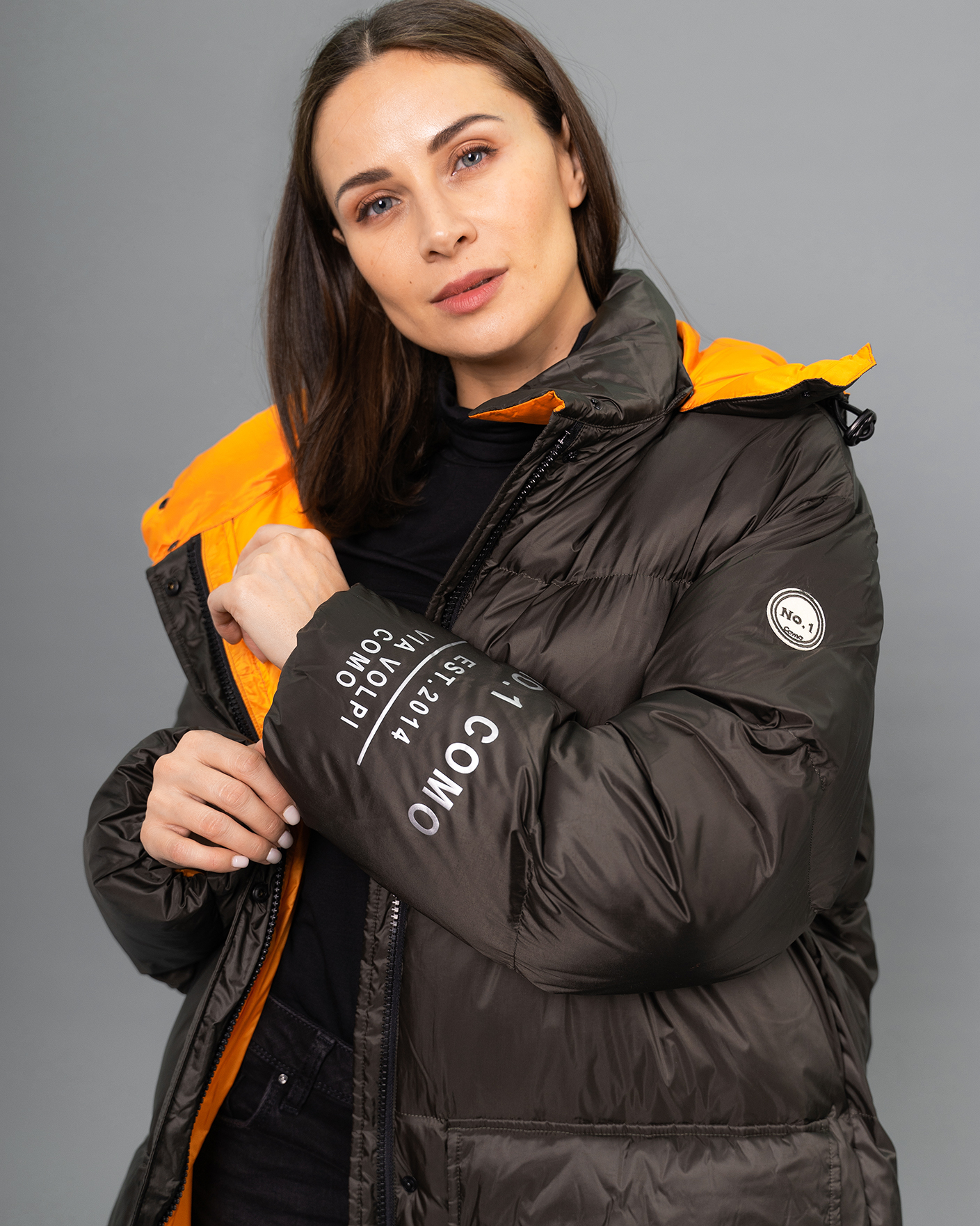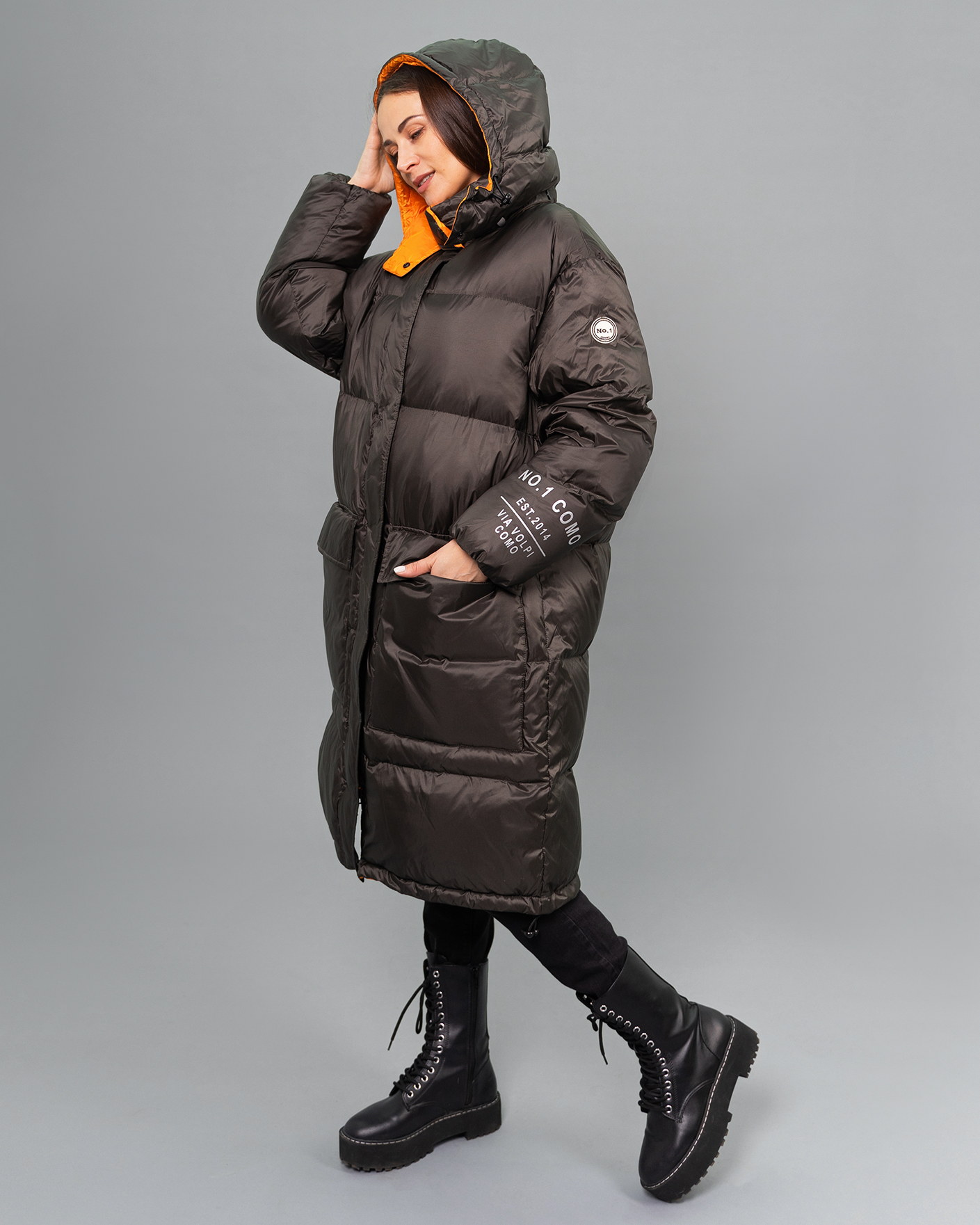 Стильный, теплый пуховик Como №1 темно-зеленого цвета с внутренним ярким подкладом. Стеганая модель длины миди, с воротником-стойка и съемным капюшоном с защитной полочкой на клепках, что обеспечивает максимальную защиту от ветра. ЗАстежка на скрытую молнию с планкй на клепки, имеются накладные карманы с клапанами по бокам. Низ изделия на регулируемой резинке. Левый рукав декорирован нашивкой на плече и принтом на краю манжеты в виде логотипов бренда. СТильный и универсальный пуховик - незаменимый спутник на каждый день в холодное время года.