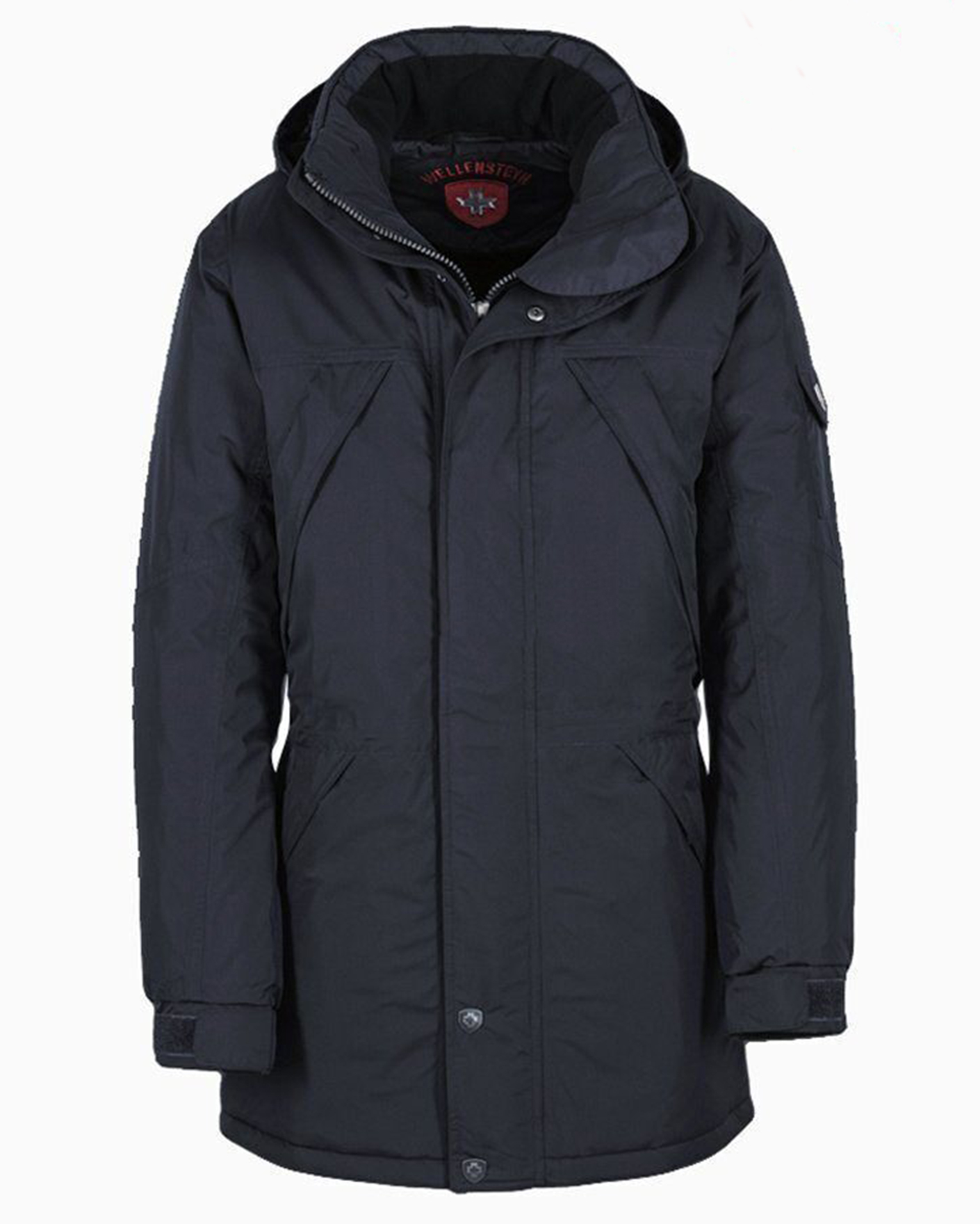 Пуховик-парка Wellensteyn темно-синего цвета, удлиненного кроя. Многофункциональная модель водонепроницаемая и ветрозащитная. Модель с внешними пятью карманами и двумя внутренними на молнии. Под мышками находятся молнии, с помощью которых можно регулировать температуру тела. Воротник-стойка, регулируемый съемный капюшон, вставная кулиска на талии и по низу обеспечивают максимальную защиту от холода. Эластичные манжеты на рукавах также защищают от ветра. Пуховик-парка станет незаменимым спутником на каждый день.