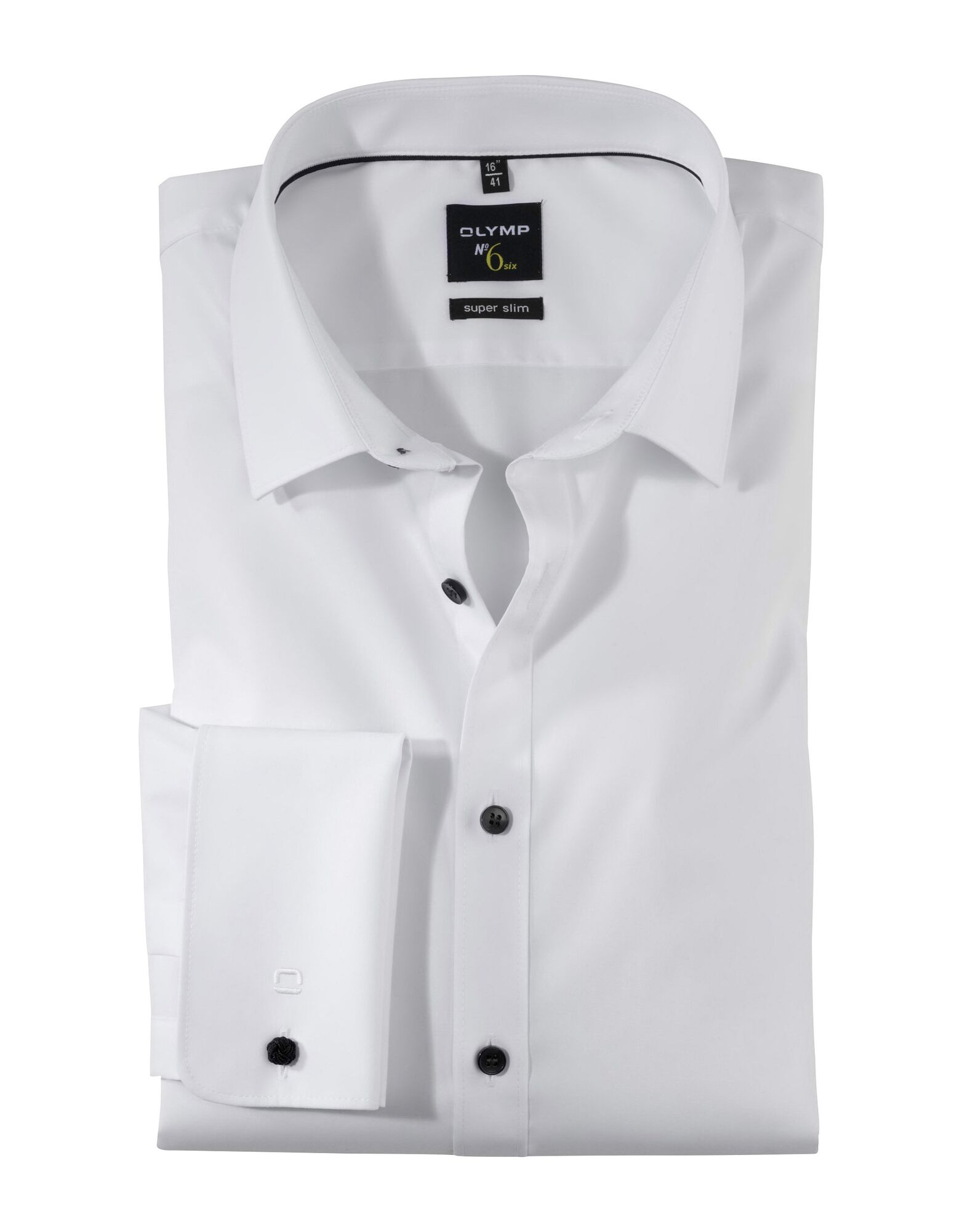 Рубашка ОЛИМП Number Six Super Slim белого цвета с контрастными пуговицами. Воротник New York Kent, регулируемые манжеты. Данная модель идеально подойдет для праздничного мероприятия.