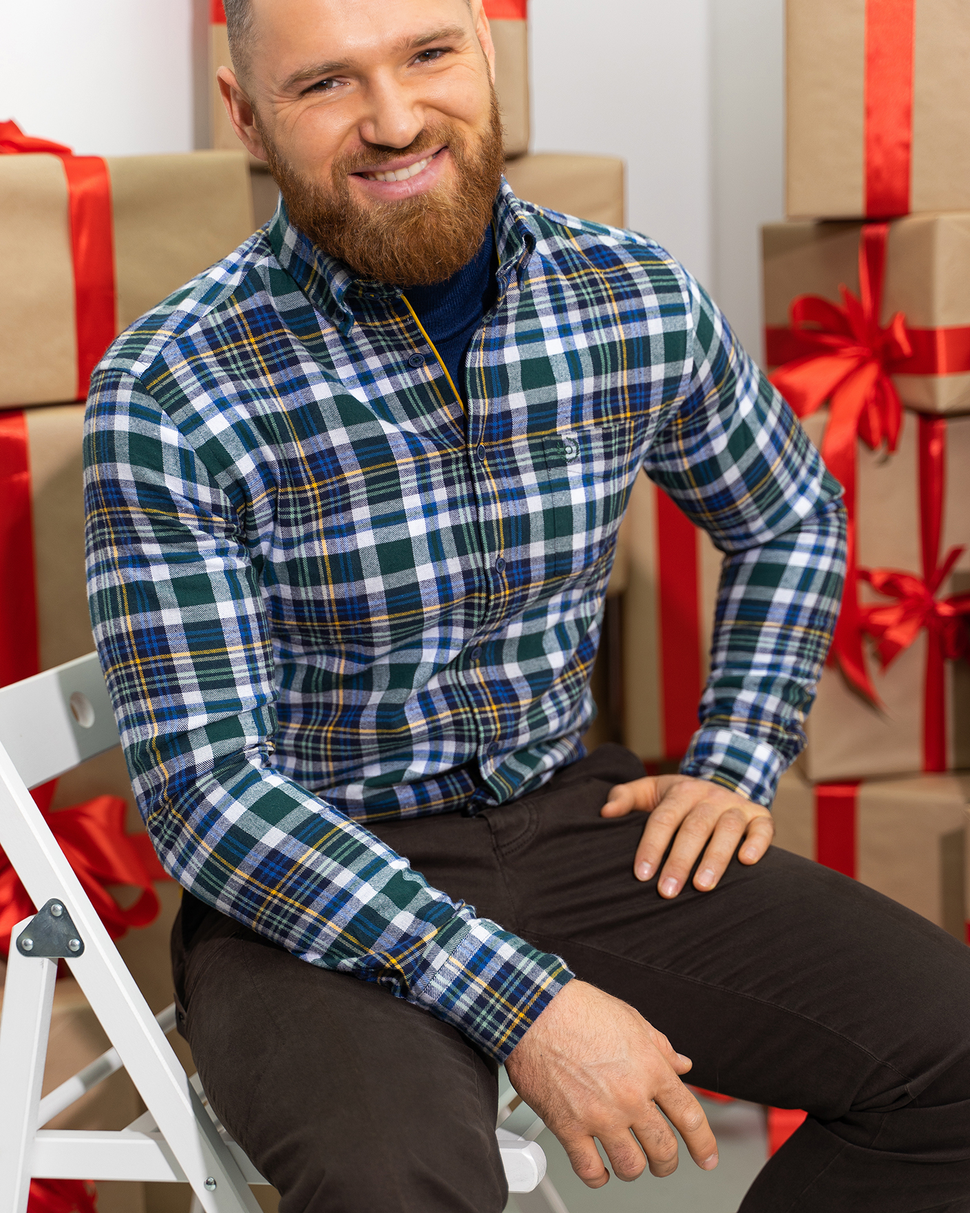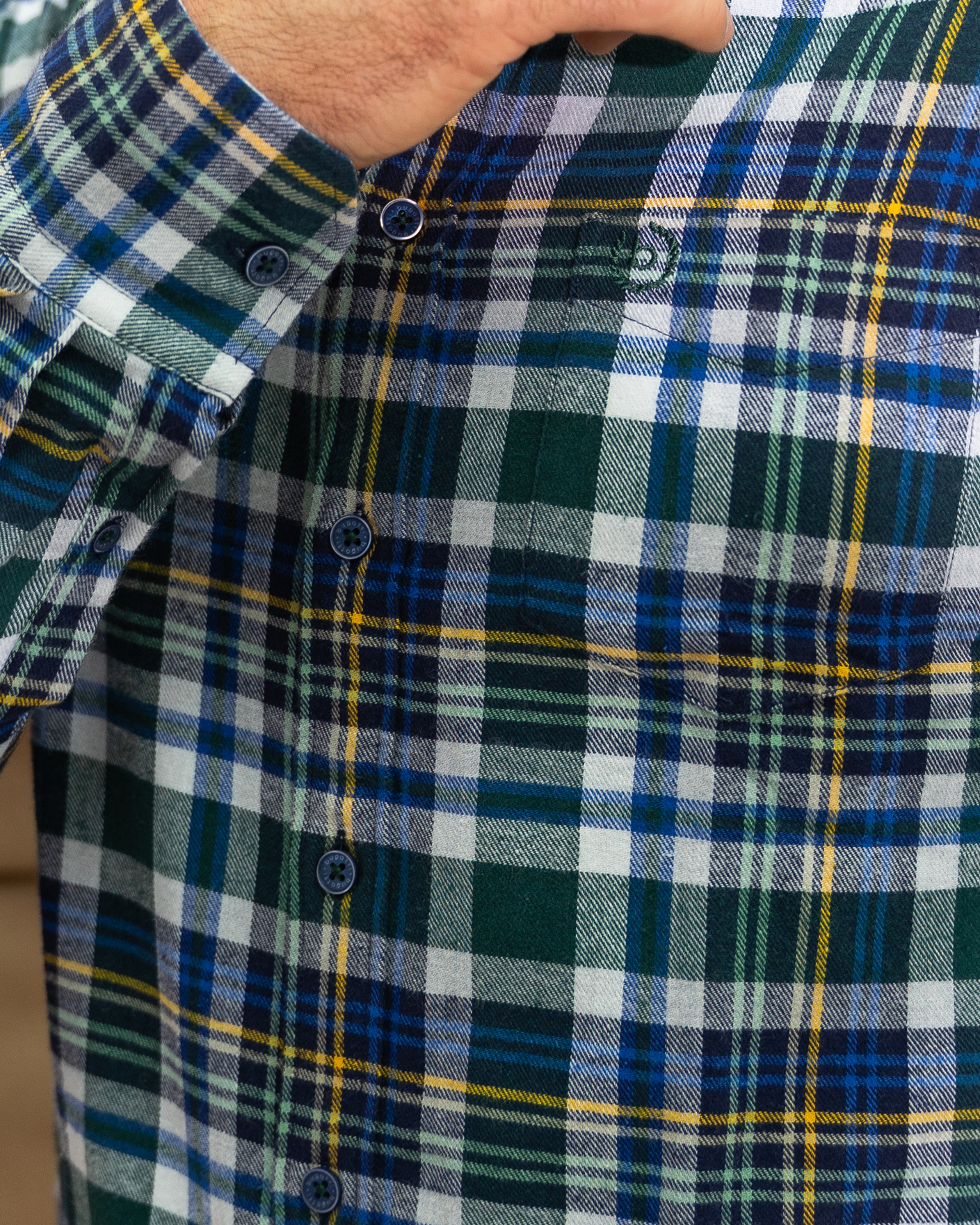 Рубашка Bugatti сине-зеленого цвета в крупную клетку. Модель выполнена из 100% хлопка в приталенном силуэте. Имеется накладной нагрудный карман с аккуратной вышиквкой логотипа. Рубашка станет незаменимой вещью вашего гардероба в стиле casual.
