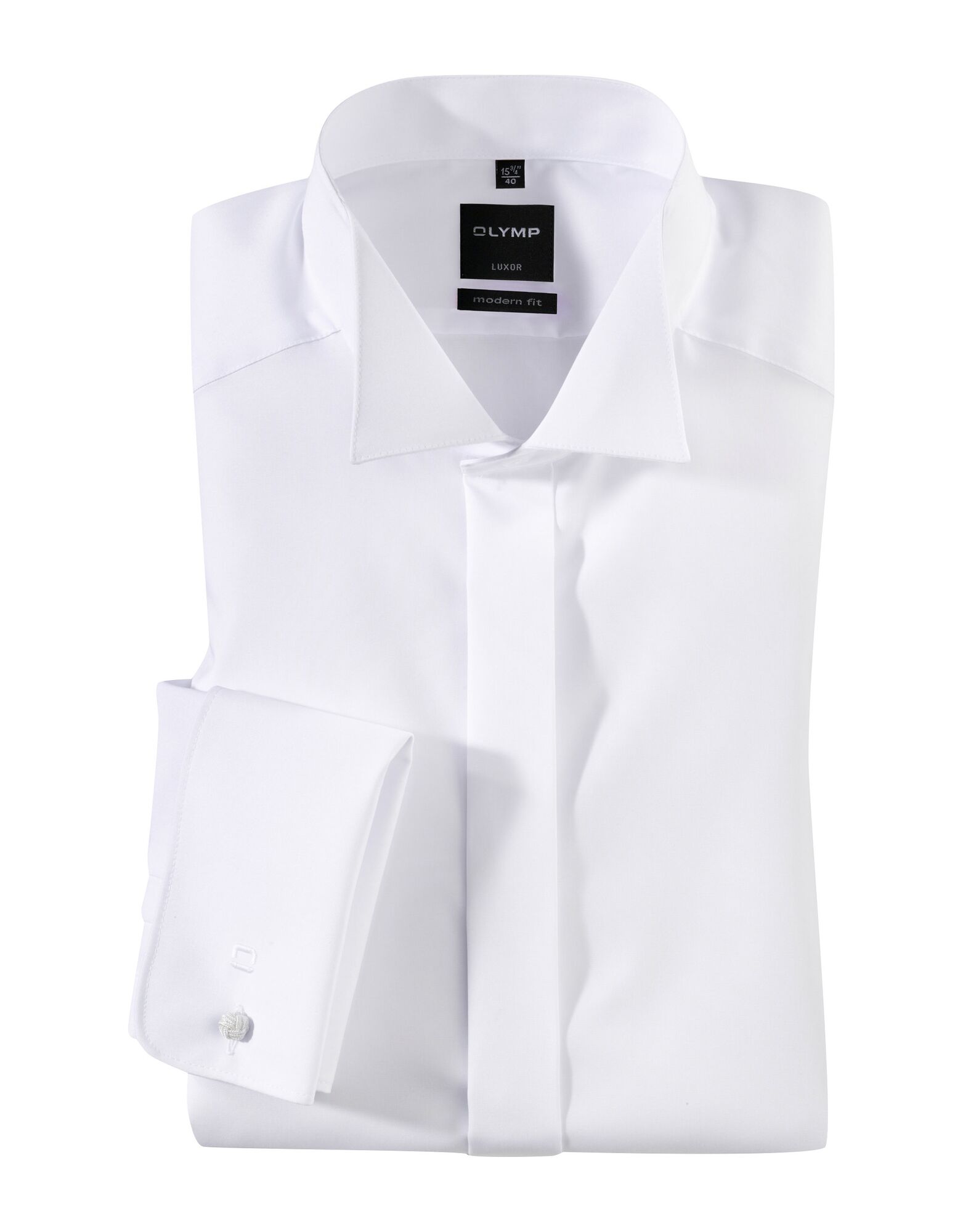 Торжественная рубашка OLYMP Luxor Modern Fit белого цвета с изящными деталями, такими как манжеты, воротник и скрытая планка на пуговицах. Данная модель идеально подойдет для праздничного мероприятия.