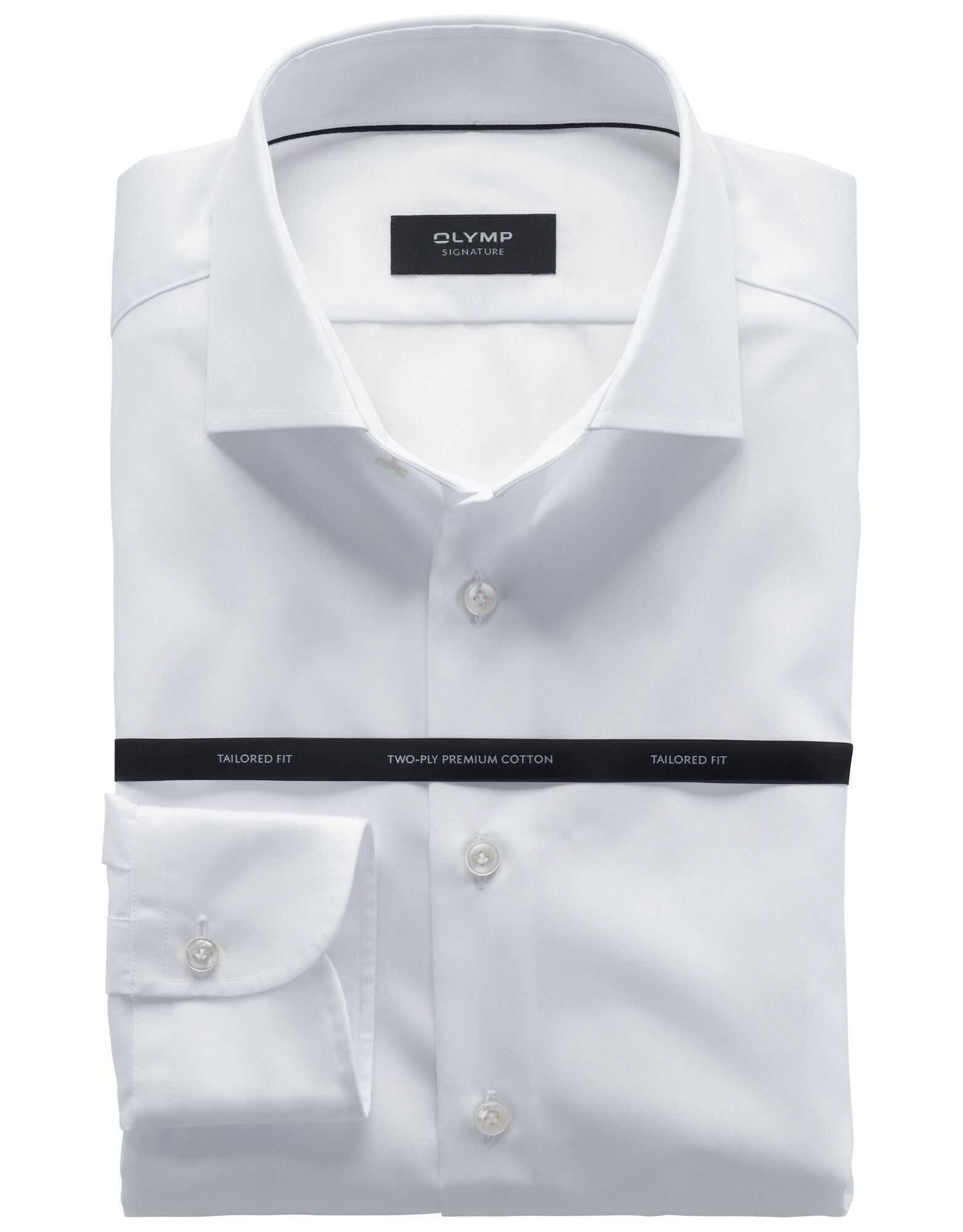 Рубашка OLYMP SIGNATURE с длинными рукавами белого цвета. Мелкие детали, такие как сшитые вручную швы, перламутровые петли и перламутровые пуговицы подчеркивают высокое качество этой необычной рубашки. Данная модель сделает Ваш образ элегантным, стильным и индивидуальным.