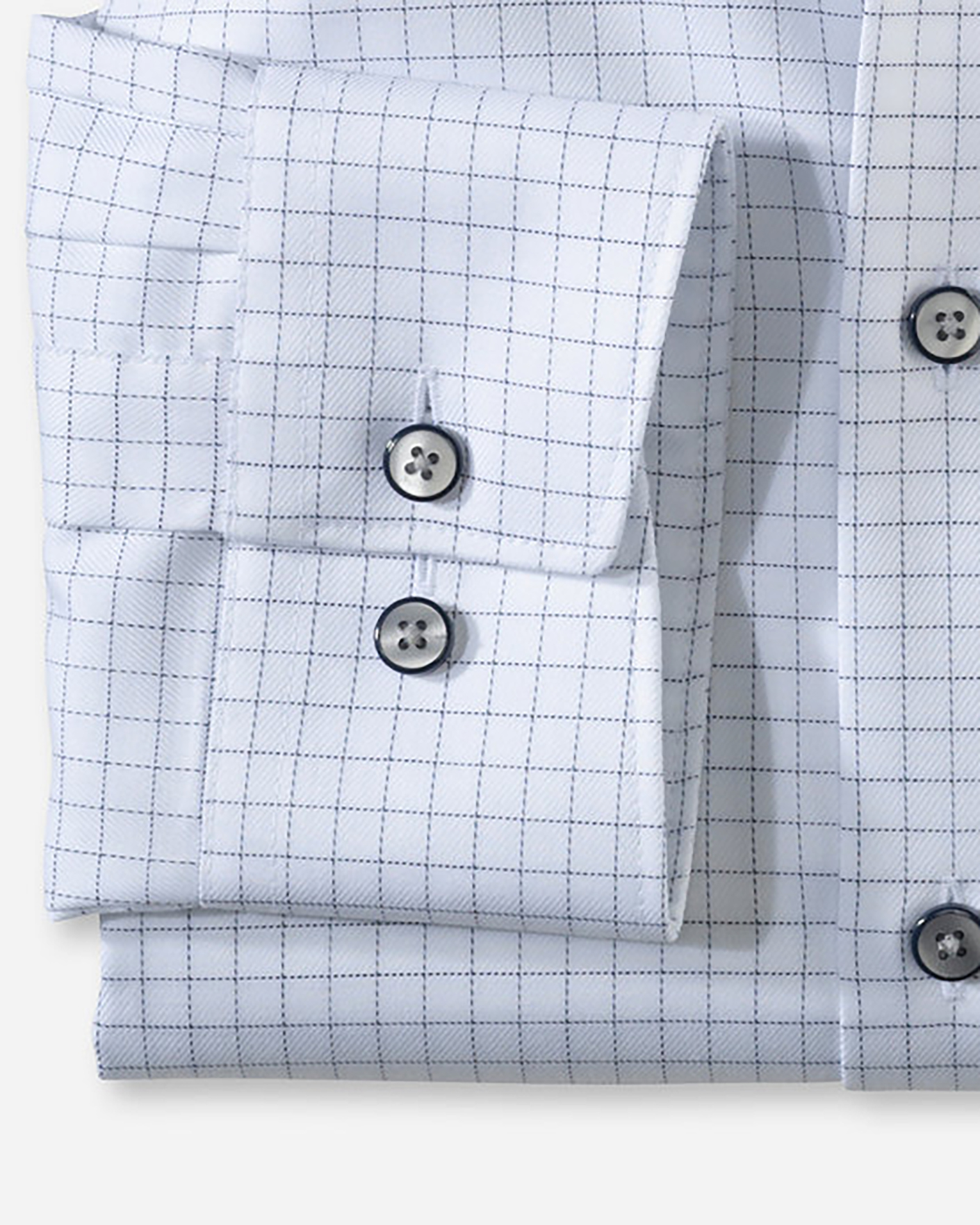Рубашка OLYMP Luxor Modern Fit белого цвета в тетрадную клетку. 100% хлопок, космополитичный воротник с внутренней отделкой и планкой на контрастных пуговицах . Рубашка - идеальный компаньон в течение всего рабочего дня.