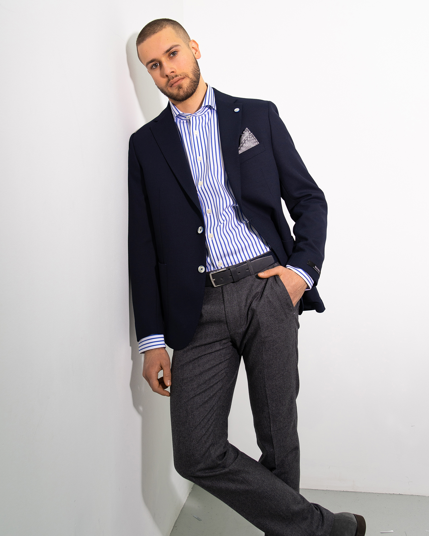 Деловая рубашка Digel бело-синего цвета в тонкую вертикальную полосу. Модель выполнена из 100% хлопка. Слегка приталенный крой подчеркивает фиугур и не сковывает движений. Рубашка - идеальный спунтник для успешного бизнеса.
