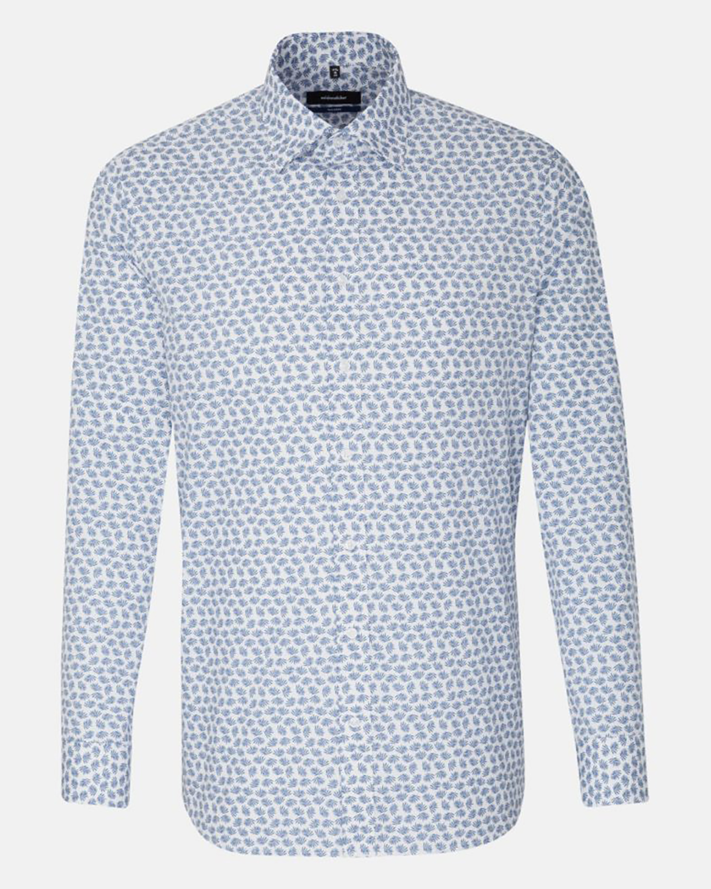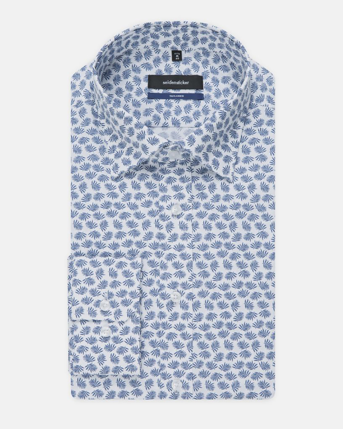 Рубашка Seidensticker серо-синего цвета в тропический рисунок. Выполненная из 100% хлопка, рубашка обеспечивает идеальную посадку с максимальной свободой движений. Элегантный воротник Kent и регулируемые комбинированные манжеты для изысканного делового образа.