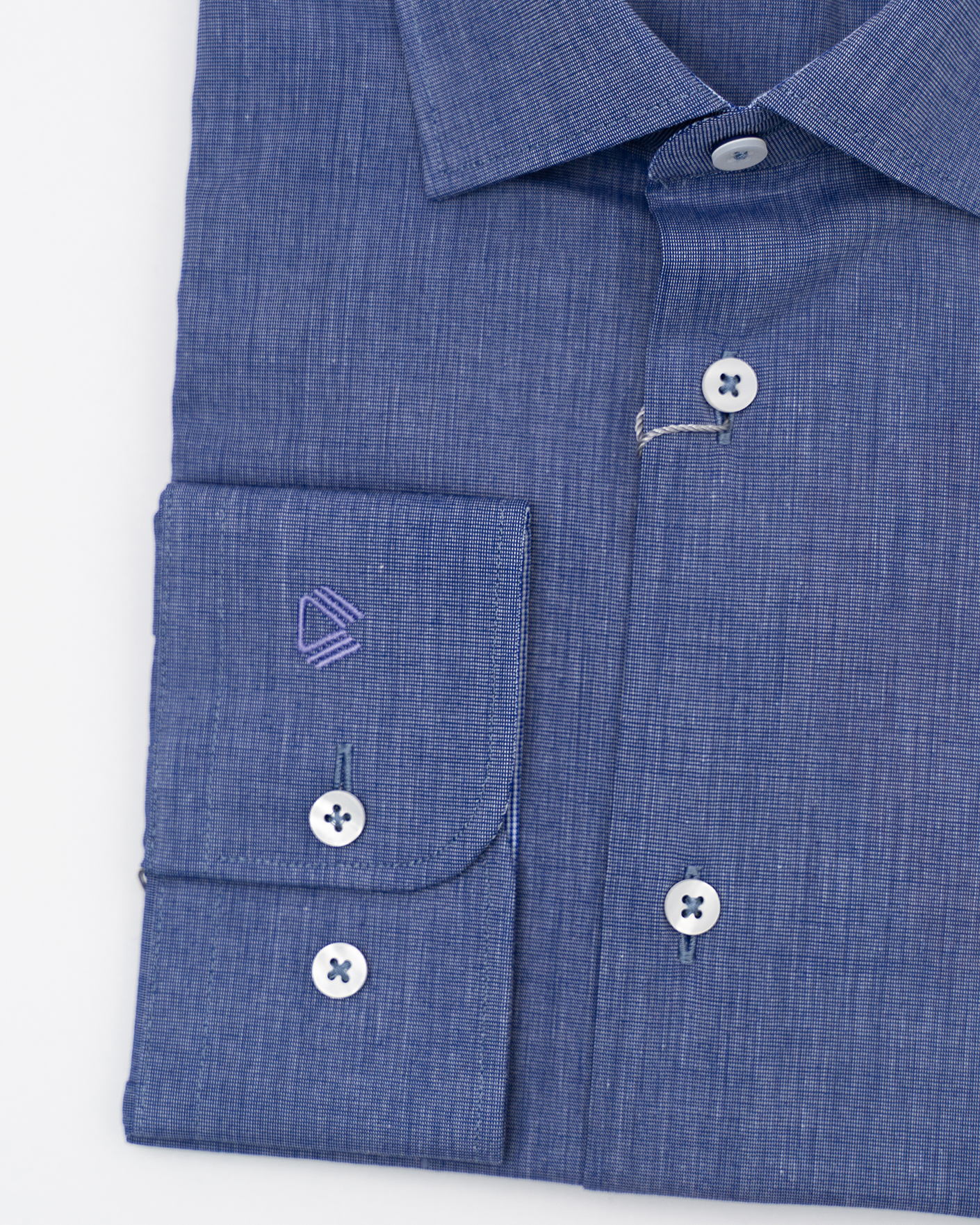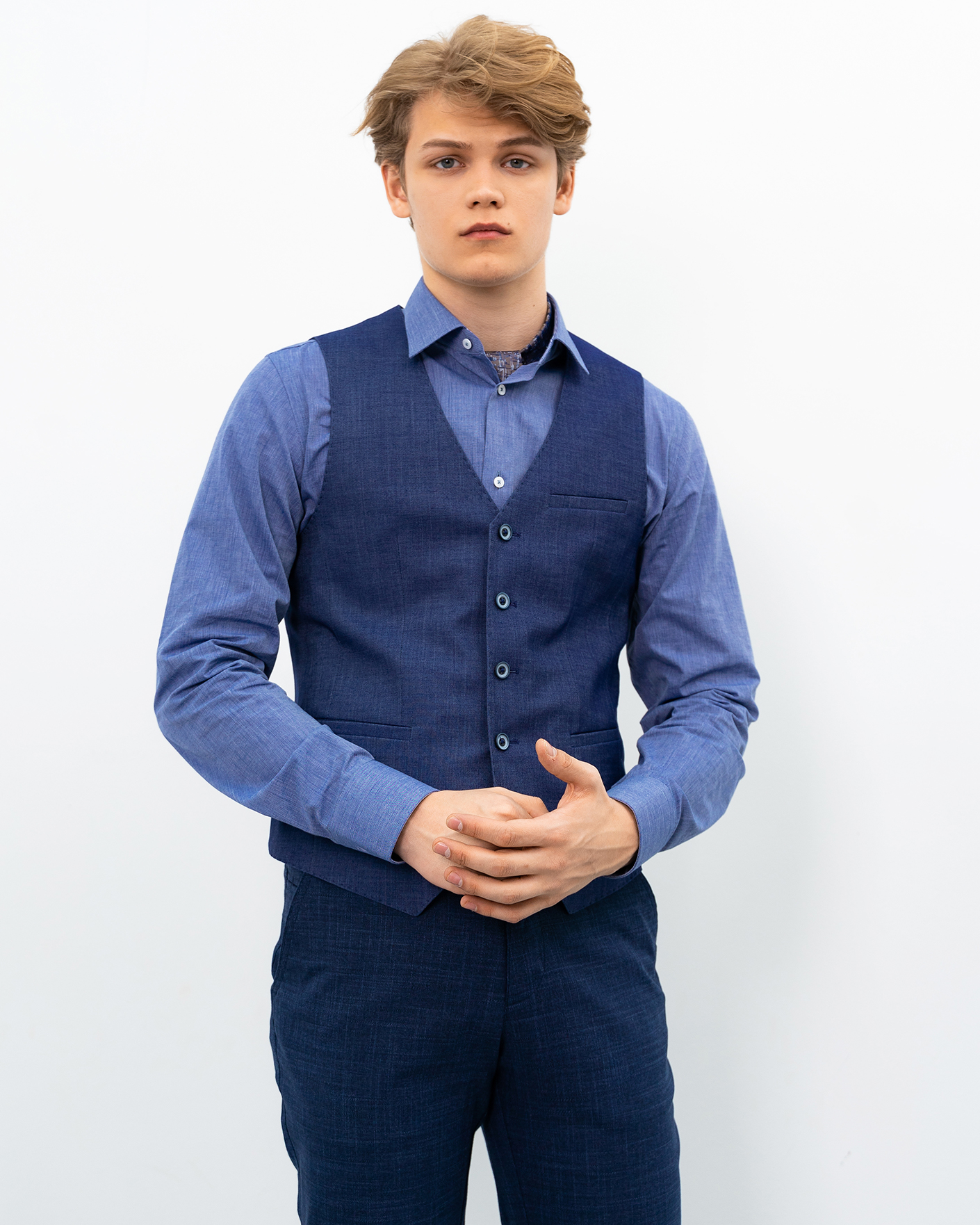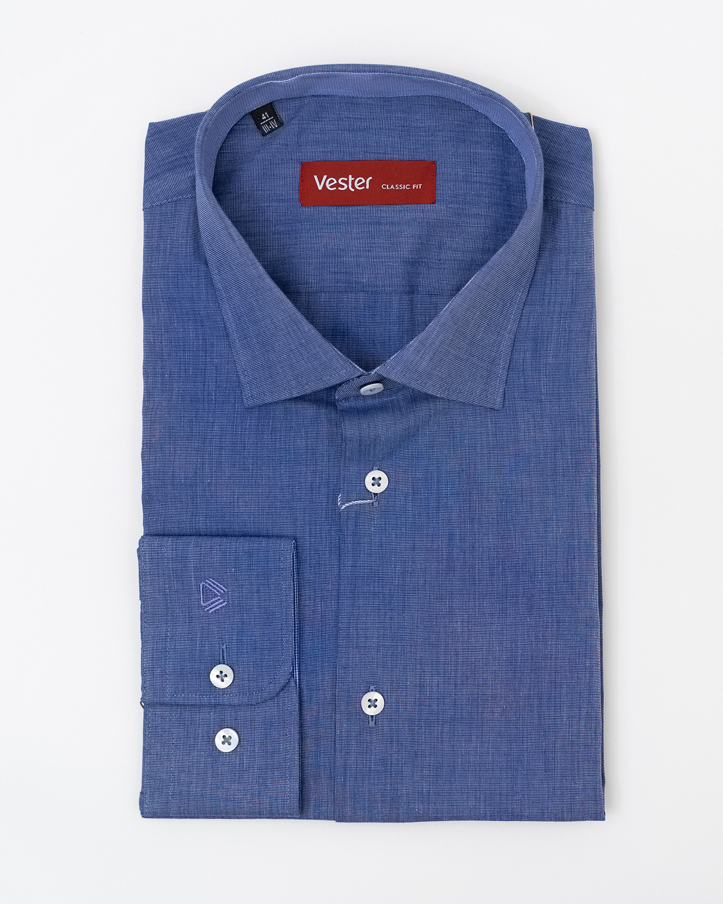 Деловая рубашка Vester серо-синего цвета в мелкий строчный рисунок. Модель с воротником и манжетами с внутренним рисунком. Застежка на контрастные пуговицы. Рубашка - современное решение для успешного бизнеса.