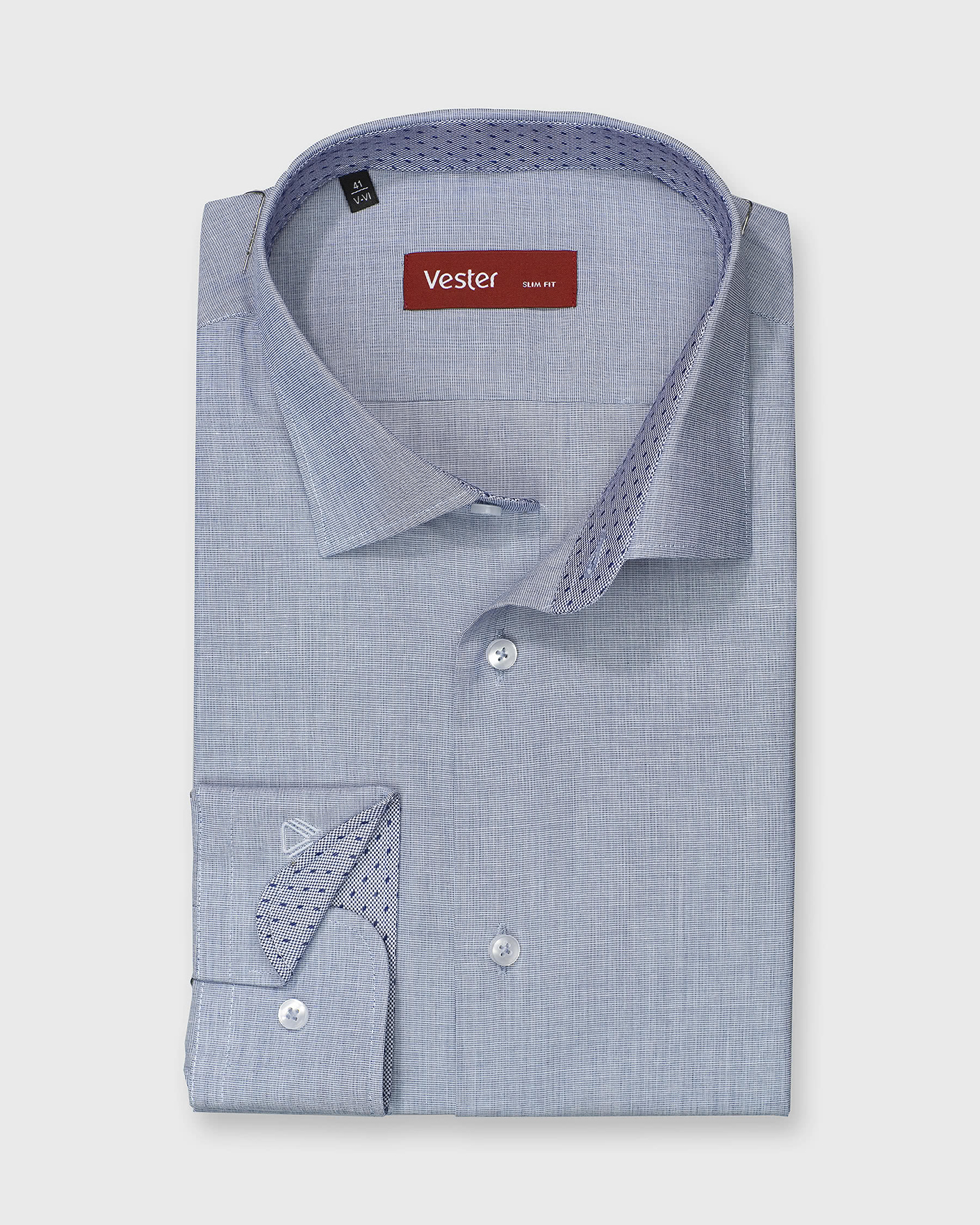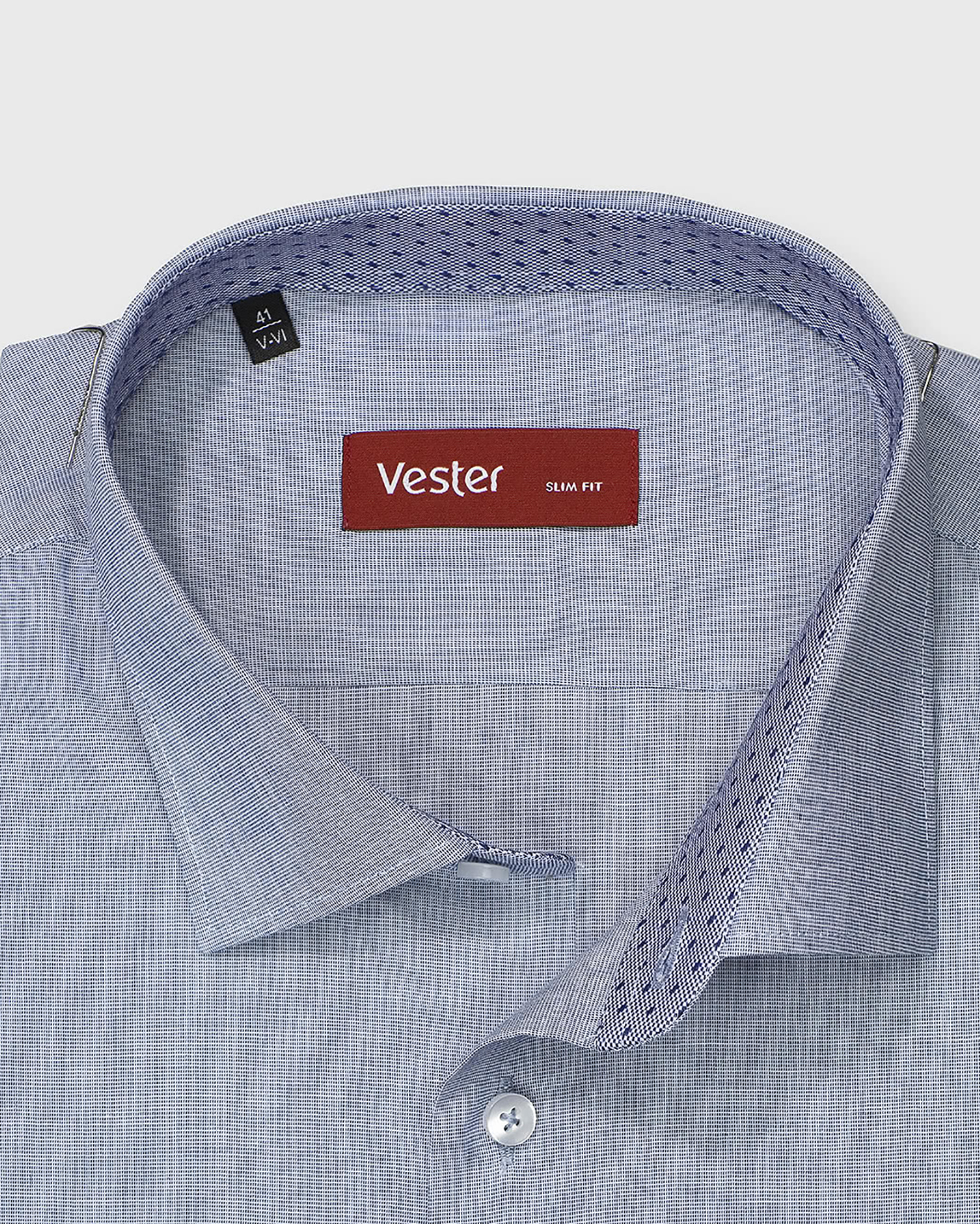 Деловая рубашка Vester серого цвета в мелкий строчный рисунок. Модель с воротником и манжетами с внутренним рисунком. Застежка на перламутровые пуговицы. Рубашка - современное решение для успешного бизнеса.