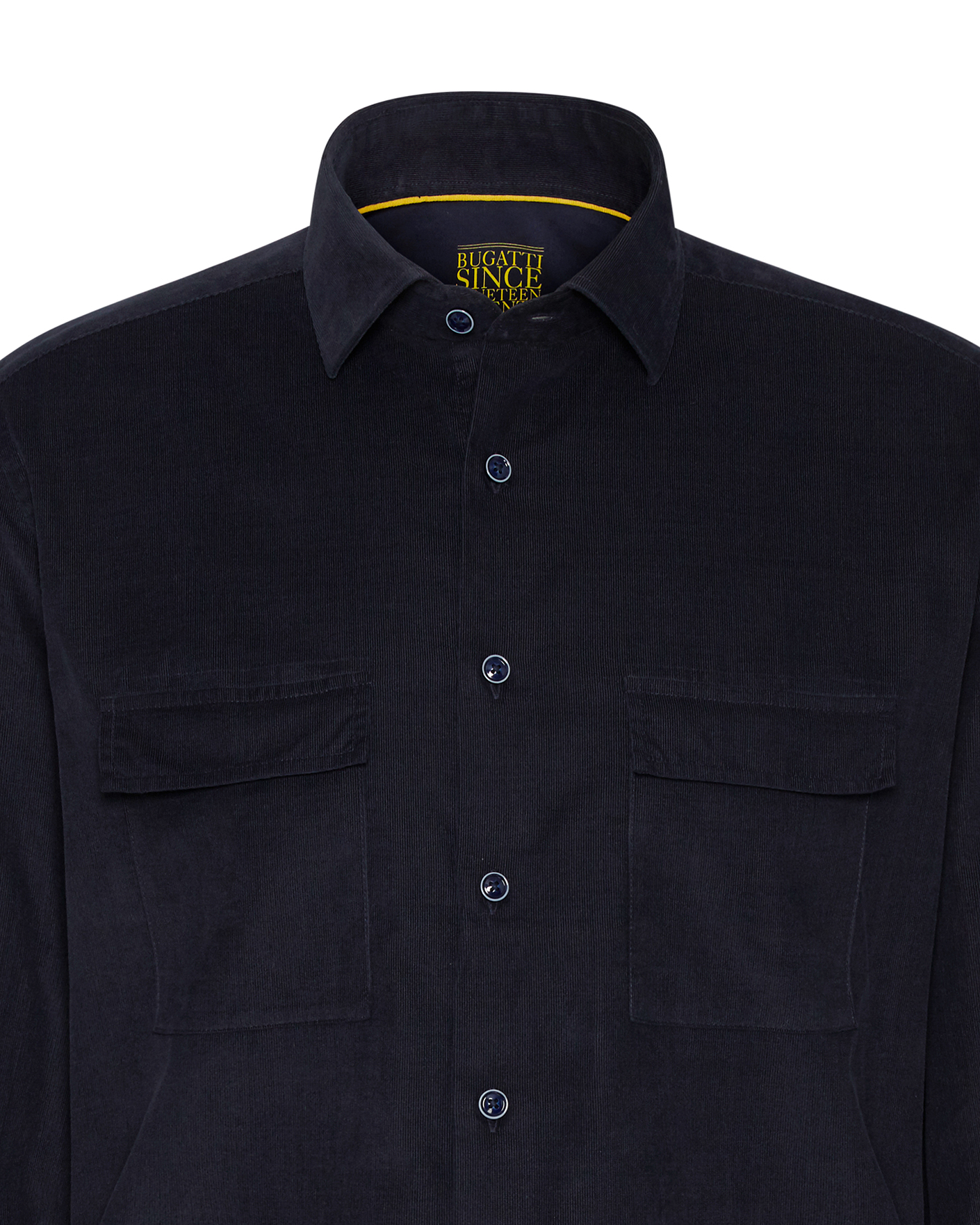 Повседневная рубашка Bugatti темно-синего цвета в микровельветовую текстуру. Модел из 100% хлопка с отложным воротником, планкой на пуговицы, имеются накладные нагрудные карманы с клапанами. Рубашка станет незаменимой вещью вашего гардероба.