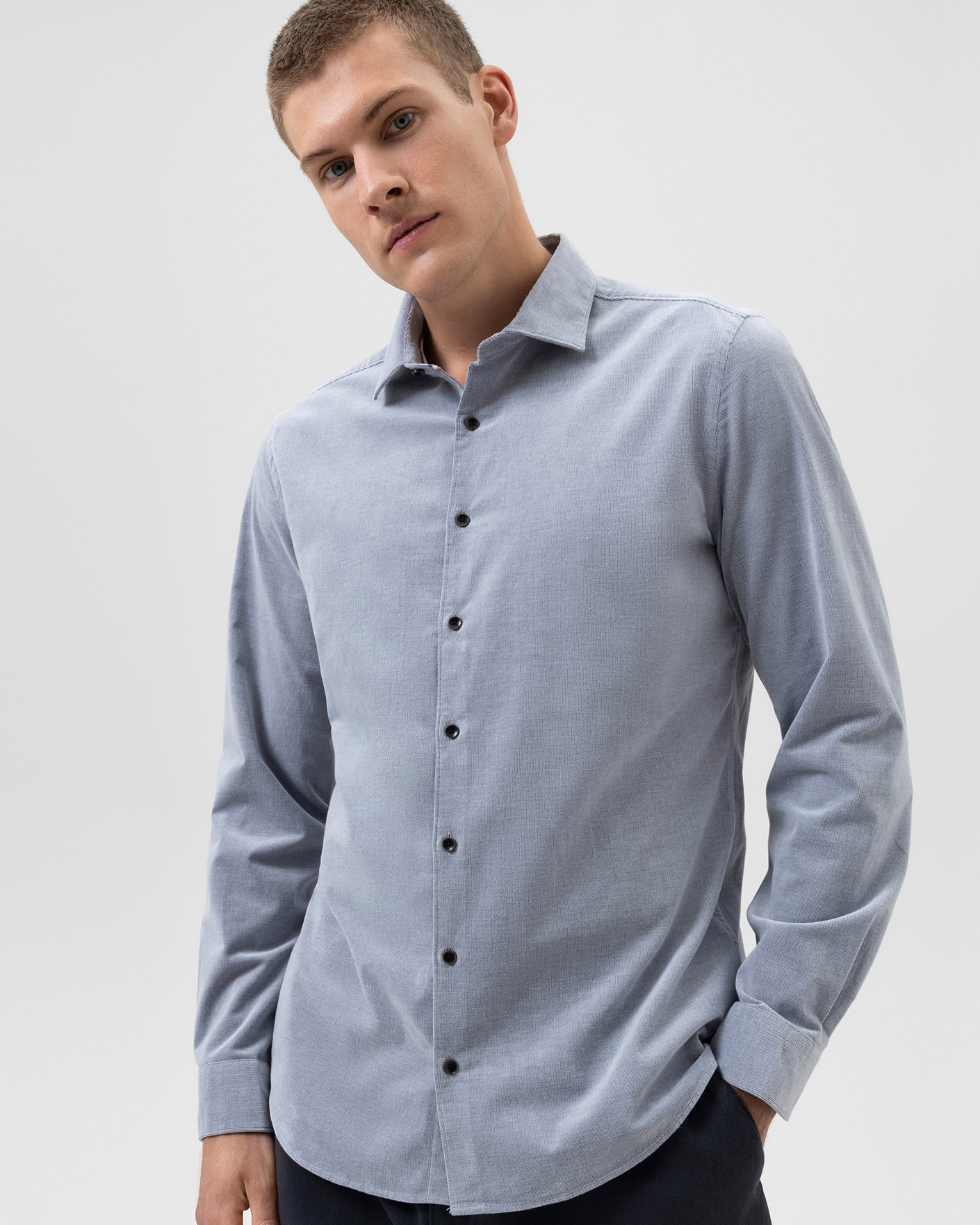 Повседневная рубашка Olymp Level Five Smart Casual серого цвета в микровельветовую текстуру. Модель с воротником Kent, планкой на пуговицы, регулируемые манжеты с небольшой складкой. Рубашка станет отличным дополнением к вашему повседневному образу.