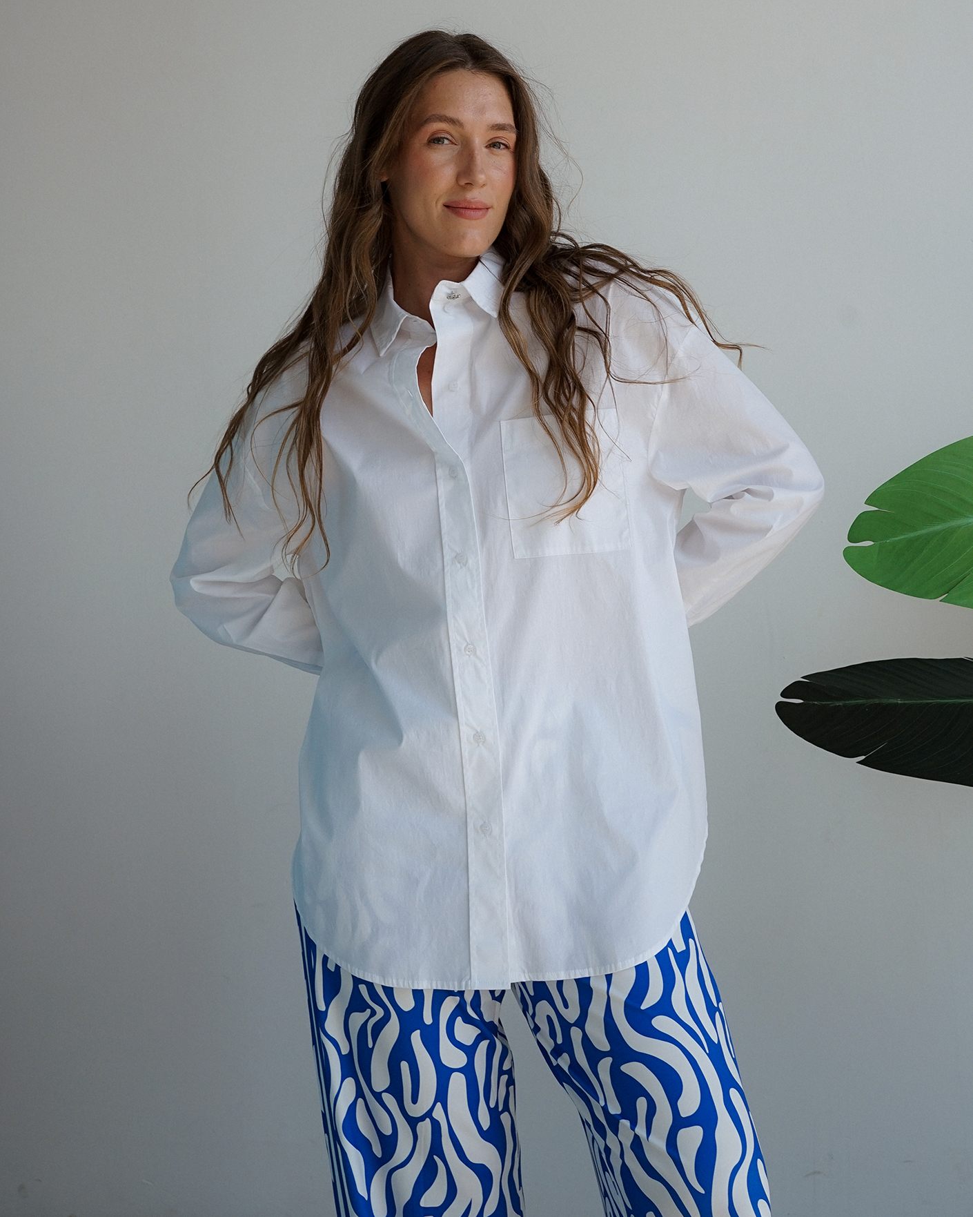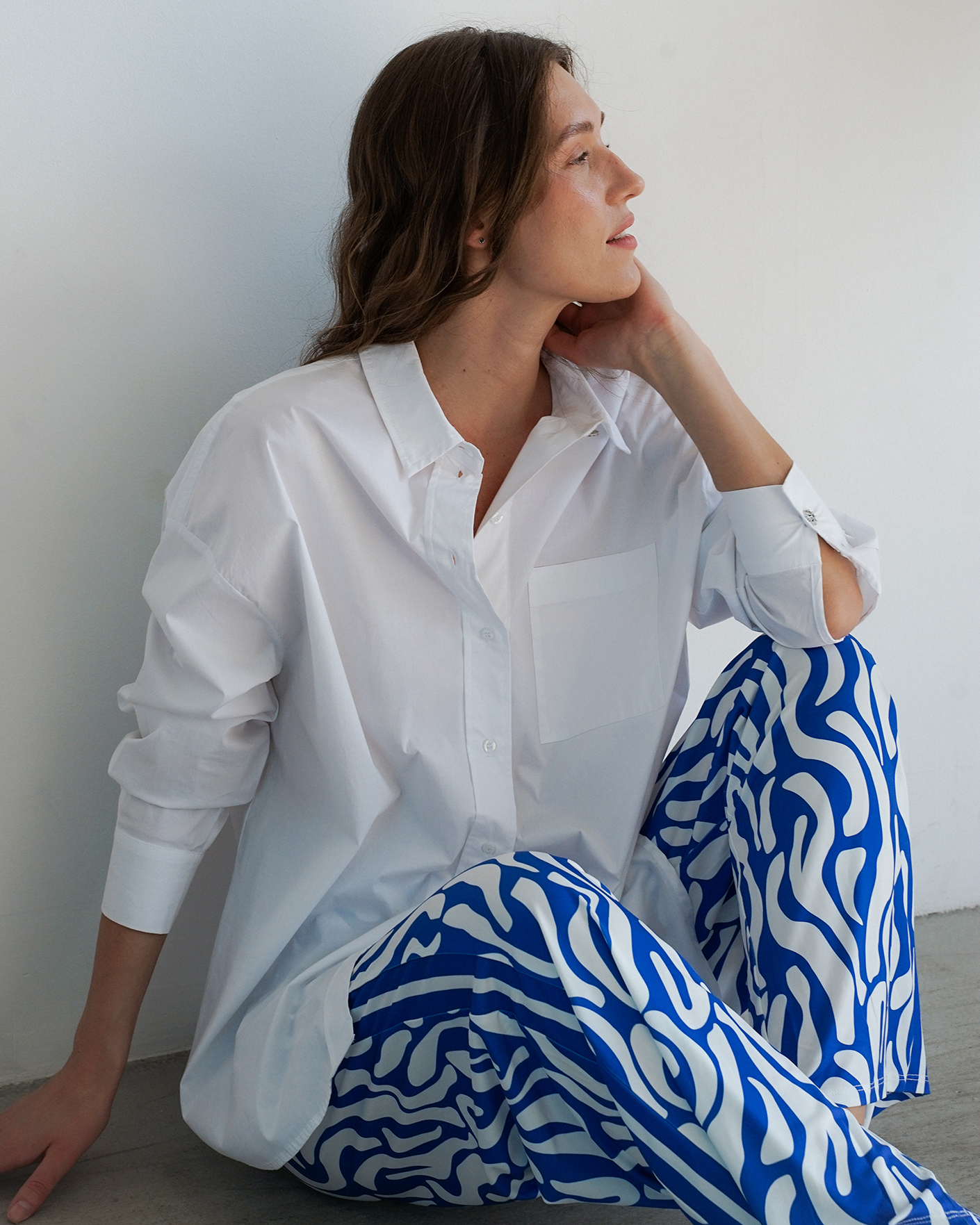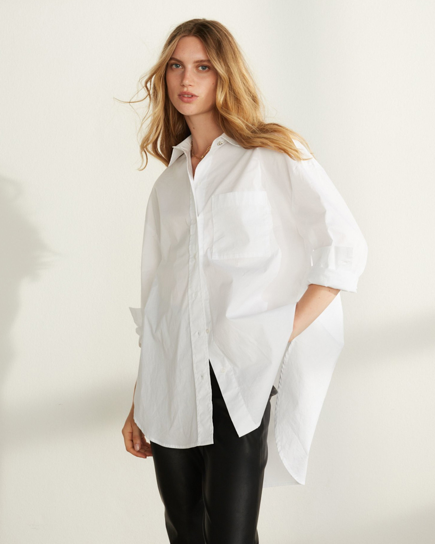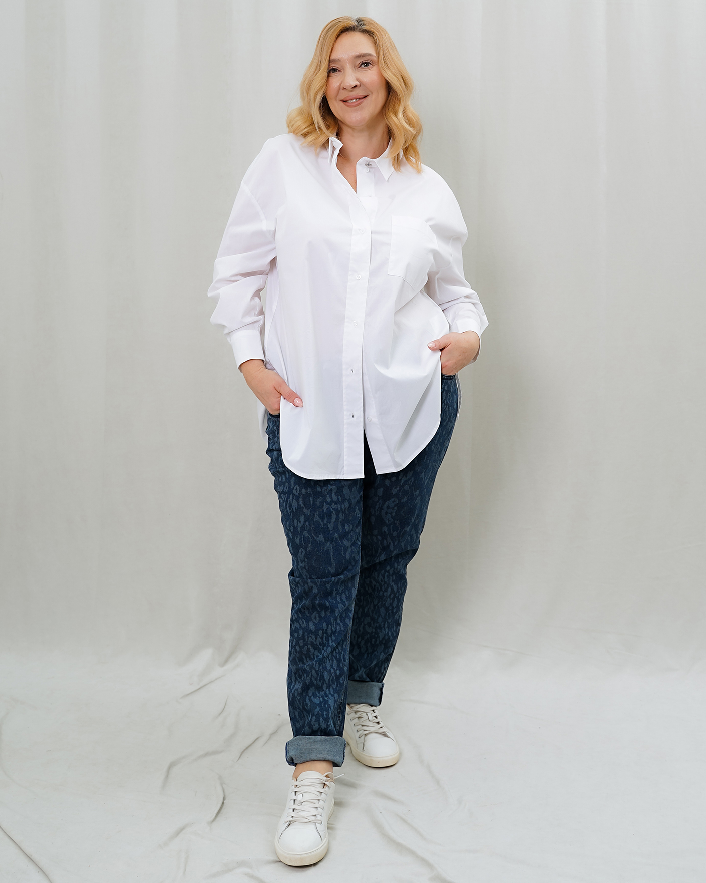 Свободная рубашка OUI белого цвета. Хлопковая модель с отложным воротником, планкой на белые пуговицы, имеется накладной нагрудный карман. Удлиненная спинка, небольшие закругленные разрезы по бокам. Рубашка станет фаворитом вашего гардероба на каждый день.