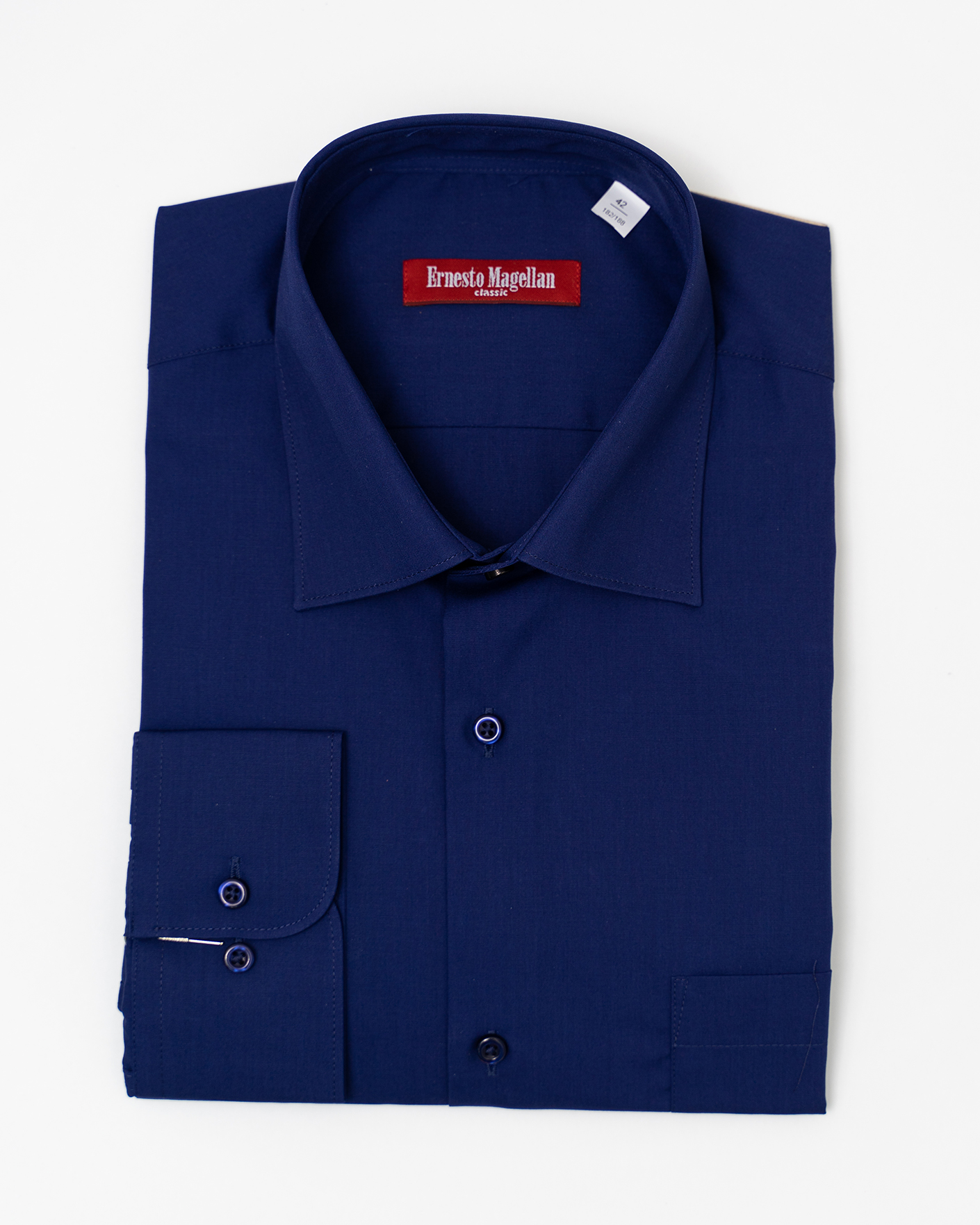 Рубашка Ernesto Magellan темно-синего цвета. Имеется накладной нагрудный карман. Классическая модель обеспечивает комфорт и свободу движений в течение всего дня.