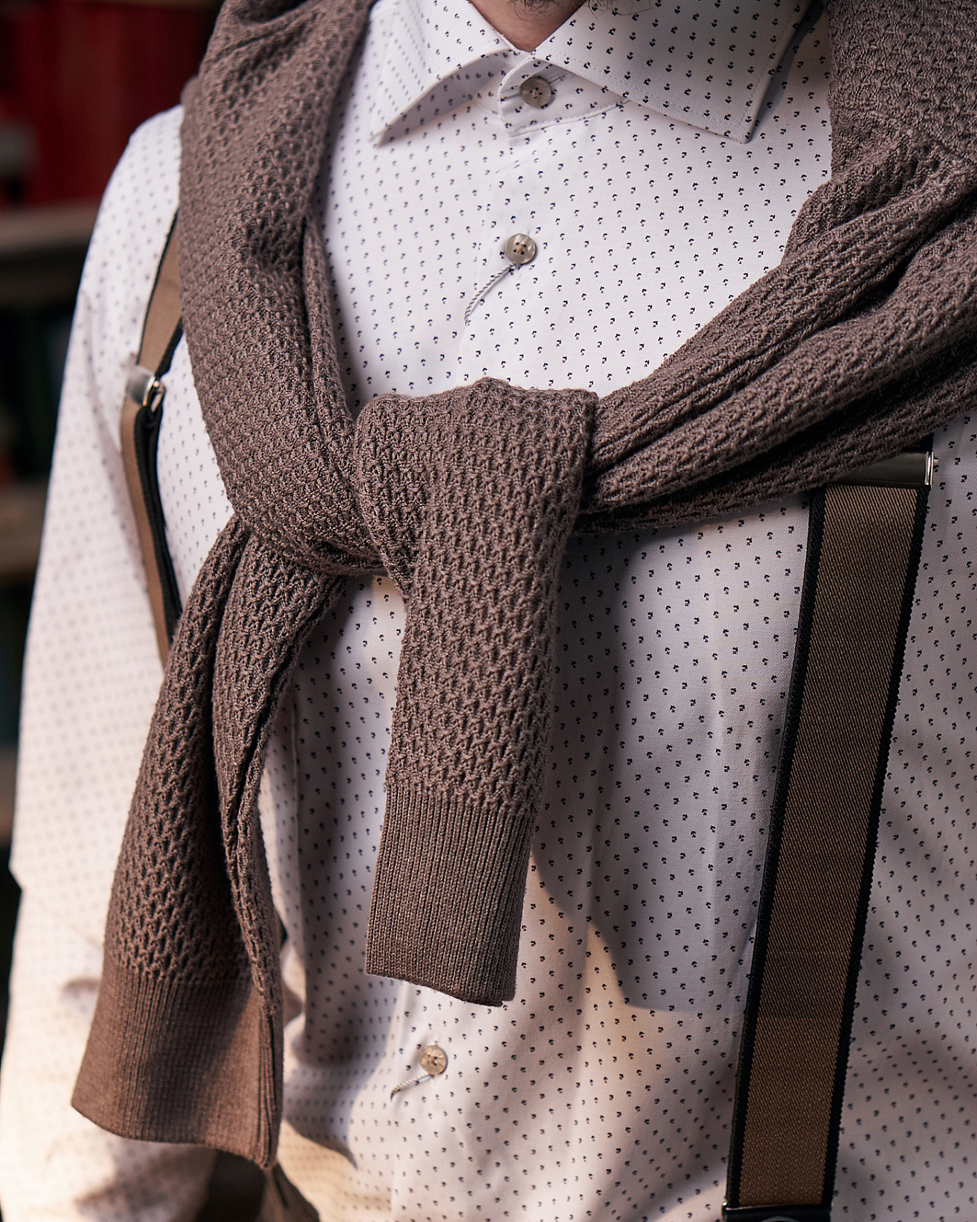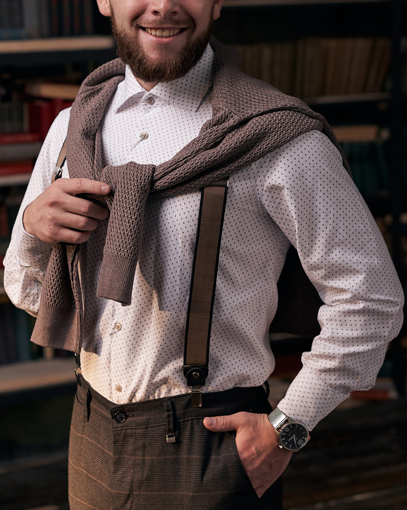 Рубашка Vester бежевого цвета в мелкий рисунок. Хлопковая модель с отложным воротником и планкой на пуговицы. Рубашка - отлично решение для успешного бизнеса.