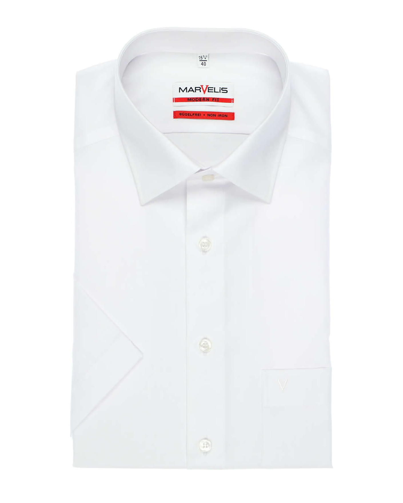 Классическая рубашка Marvelis Modern Fit белого цвета с воротником New Kent. Сшитая по фигуре деловая рубашка из 100% хлопка для максимального комфорта.