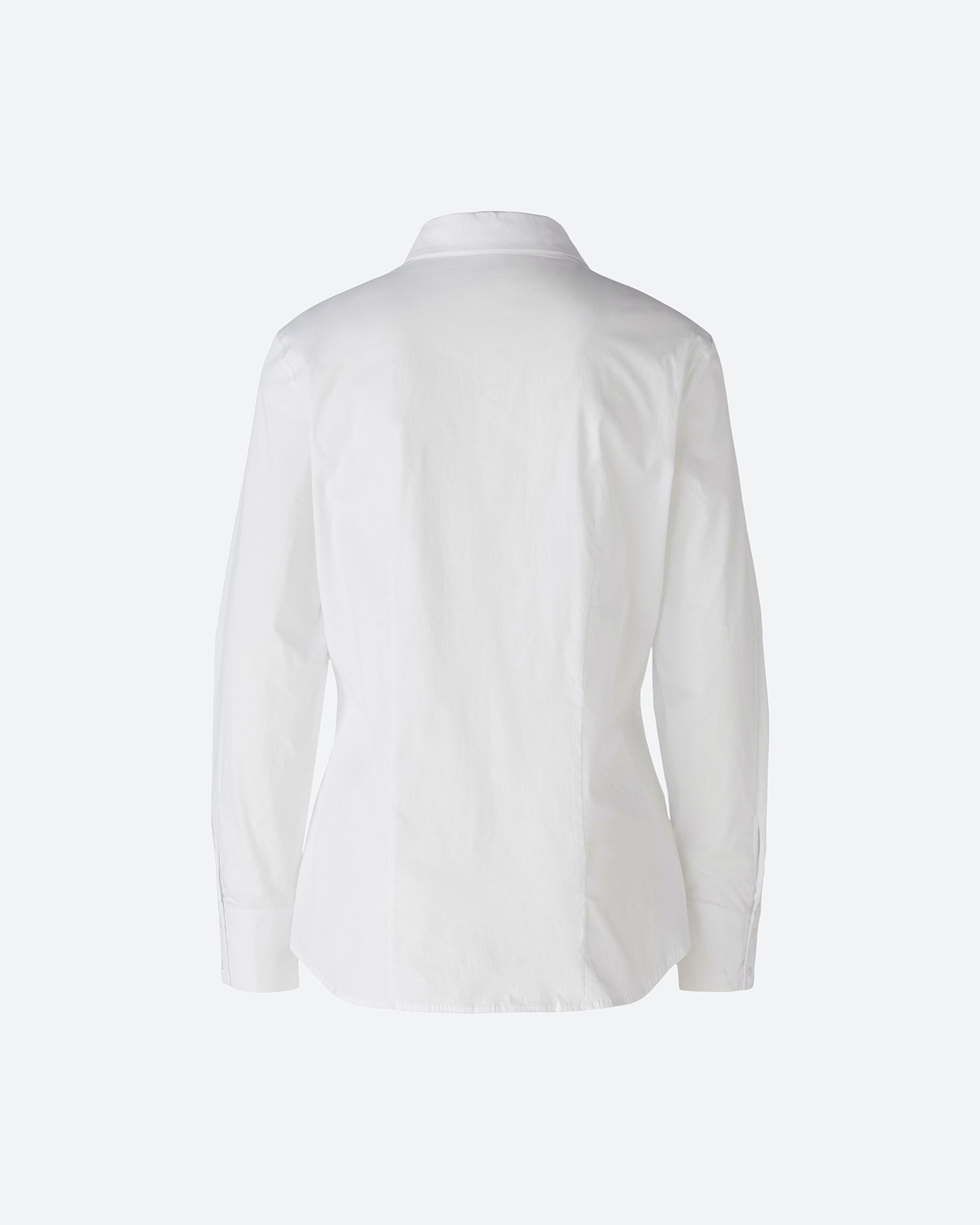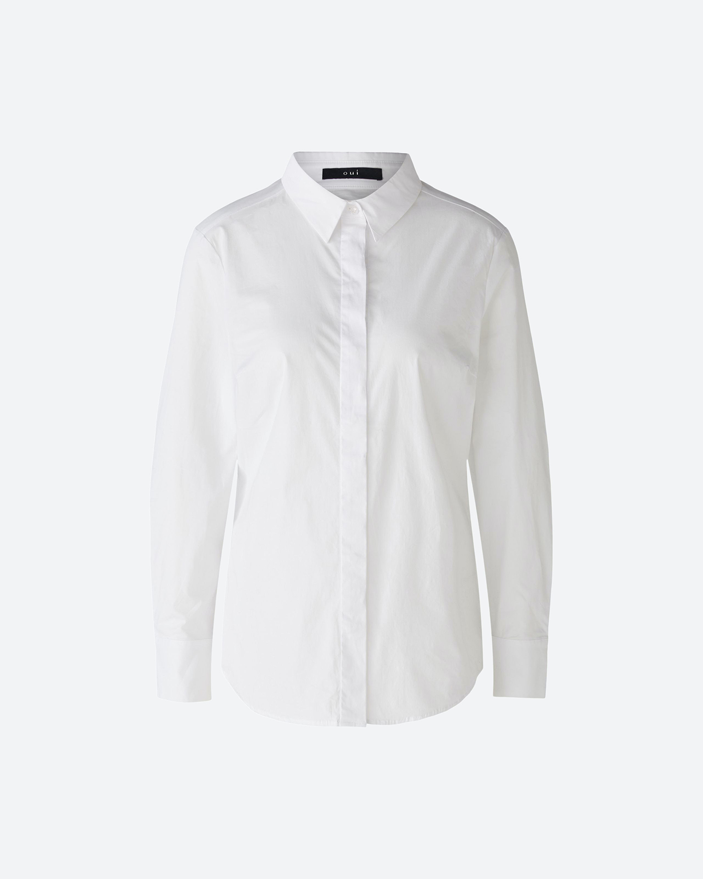 Приталенная рубашка OUI белого цвета. Хлопковая модель с отложным воротником и застежкой на скрытые пуговицы. Рубашку можно сочетать с жилетом, джемпером, пуловером, жакетом, юбкой и брюками.