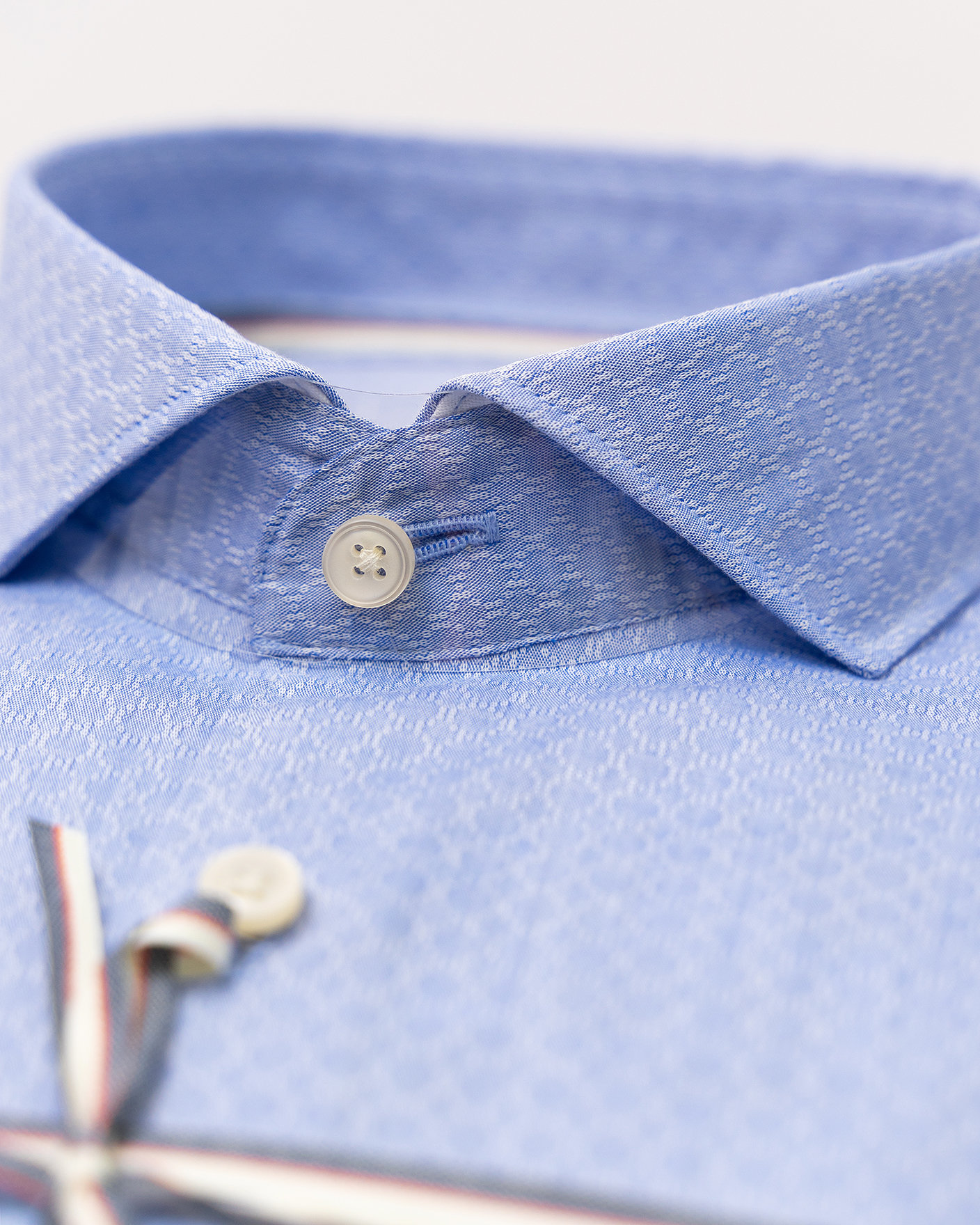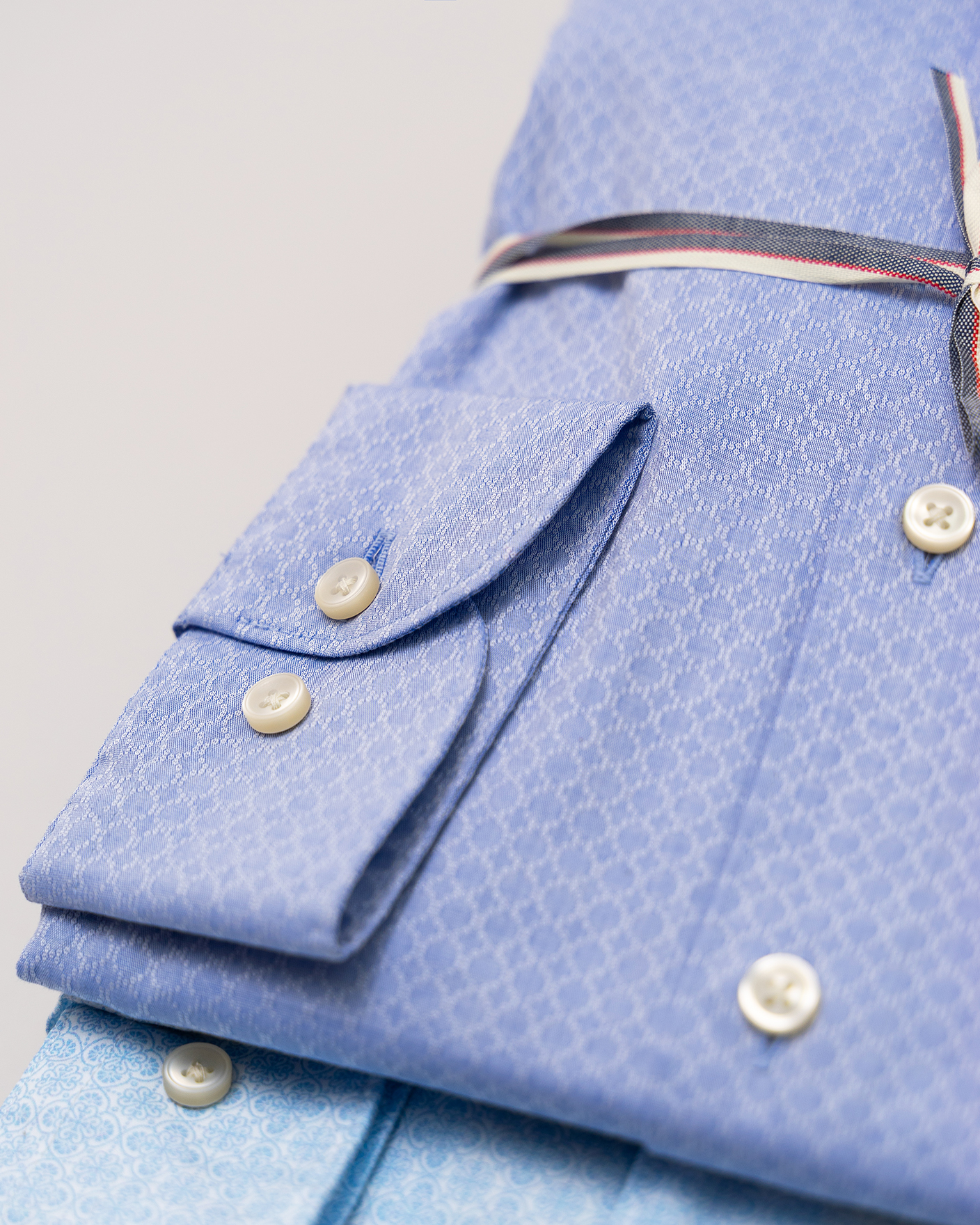Рубашка OLYMP Level Five Smart Business сиренево-голубого оттенка в мелкий геометрический принт. Модель сочетает в себе два стиля: деловой и повседневный жизни. Регулируемые манжеты и воротник Kent дополняют общую картину. Высококачественный хлопок обеспечивает максимальную свободу движений, несмотря на посадку.