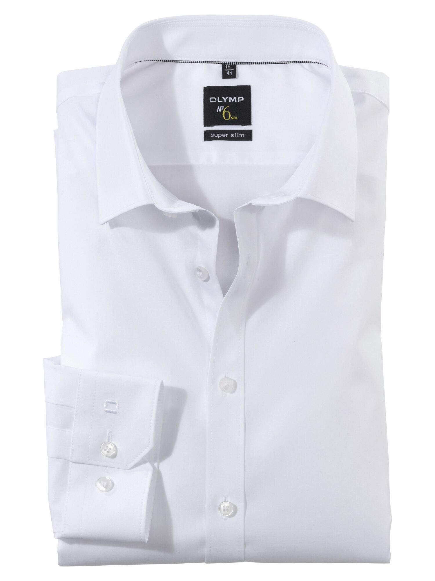 Белая рубашка ОЛИМП № Six Super Slim - универсальная модель для деловых встреч. Узкая линия рубашек с воротником Urban-Kent и комбинированными манжетами с регулируемой шириной. Рубашка идеально впишется в Ваш стильный гардероб.
