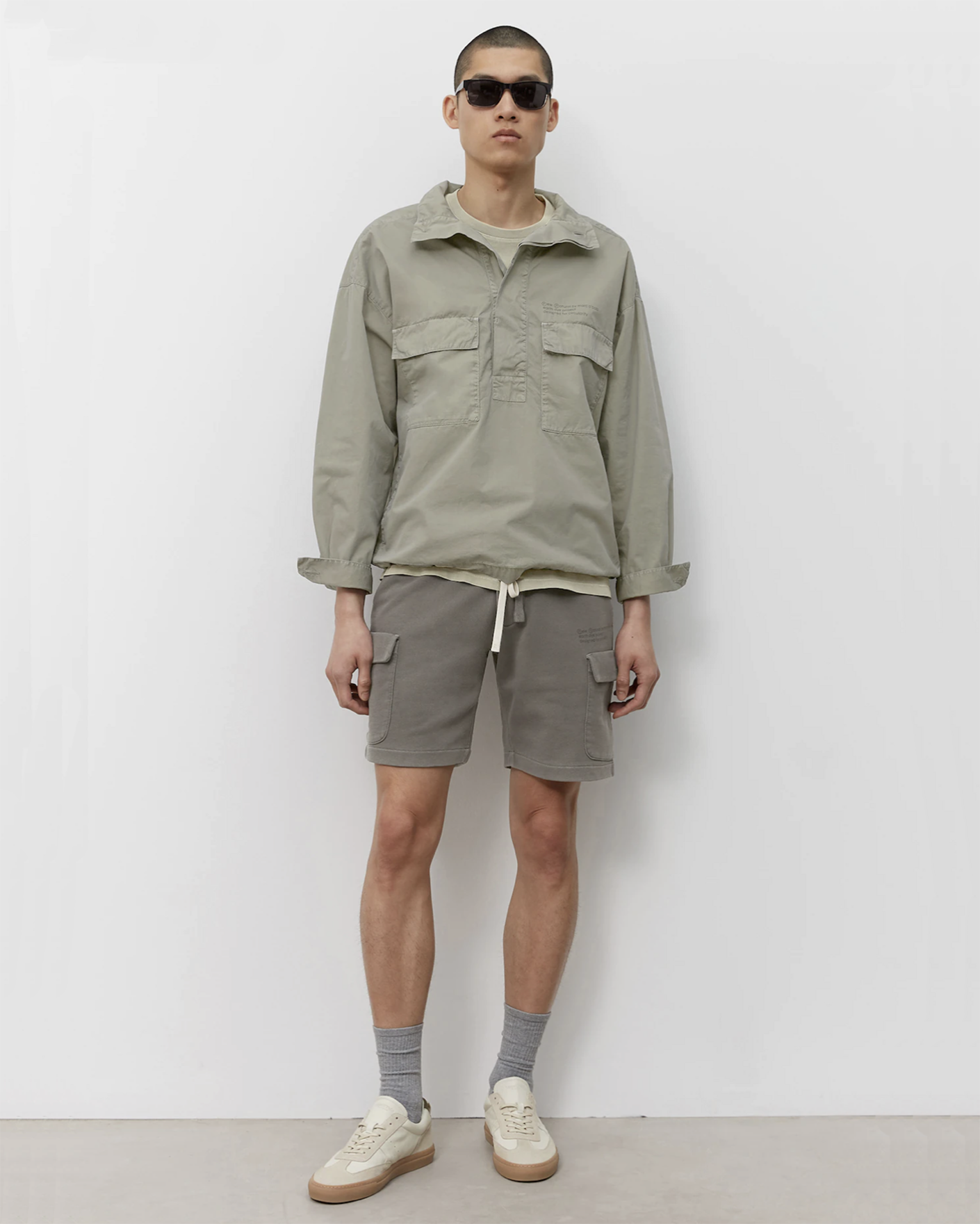 Шорты-карго Marc O'Polo коричневого цвета выполнены из 100% хлопка. Модель с поясом на резинке и вставном шнурке. Имеются врезные карманы по бокам, накладные с клапанами на бедрах и один накладной сзади. Шорты-карго станут фаворитами вашего летнего гардероба для прогулок.