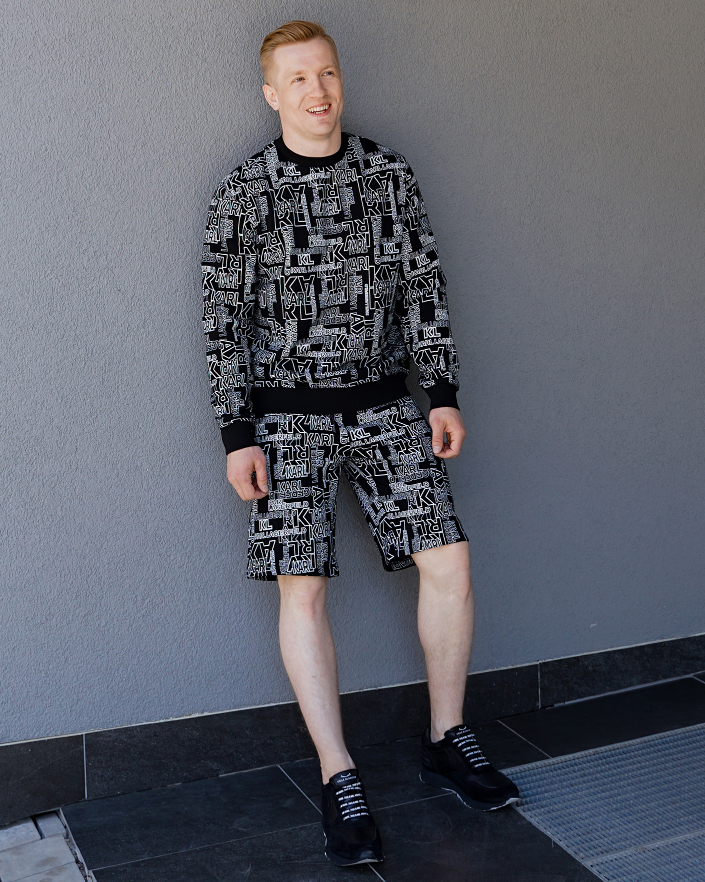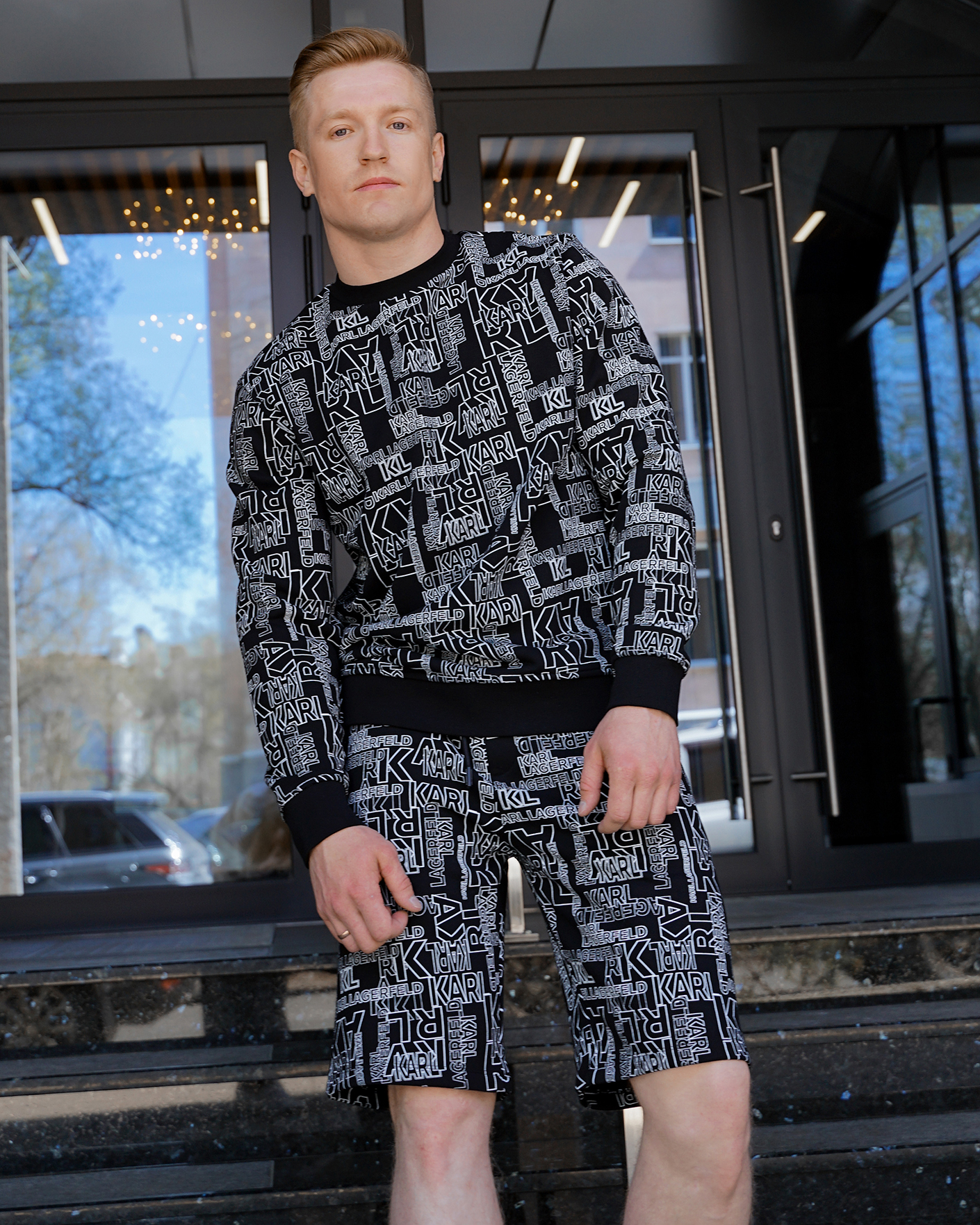 Стильный шорты Karl Lagerfeld черного цвета с логотипом по всему изделию. Хлопковая модель на эластичном поясе, имеются врезные карманы по бокам. Шорты отлично впишутся в ваш гардероб в спортивном стиле.