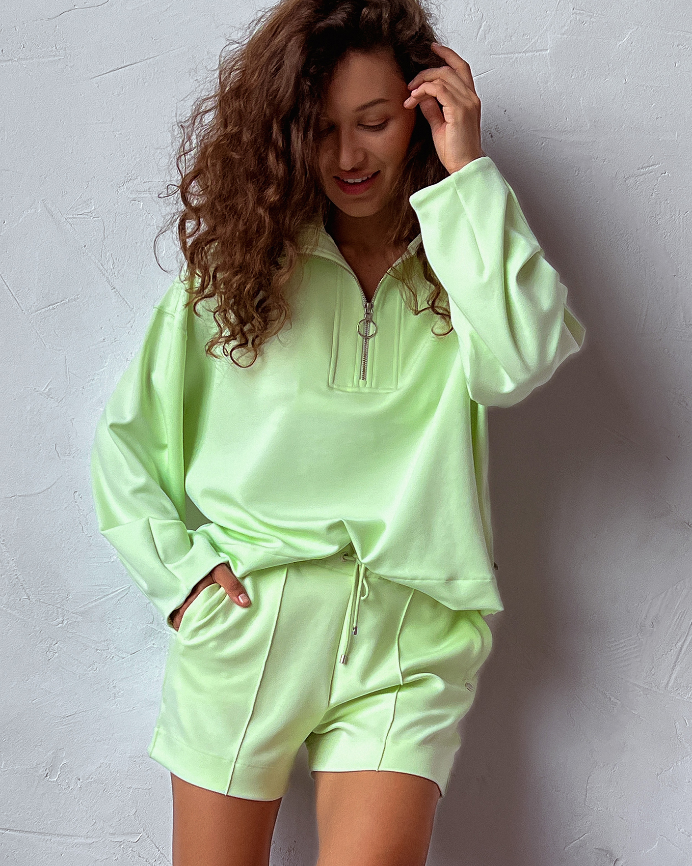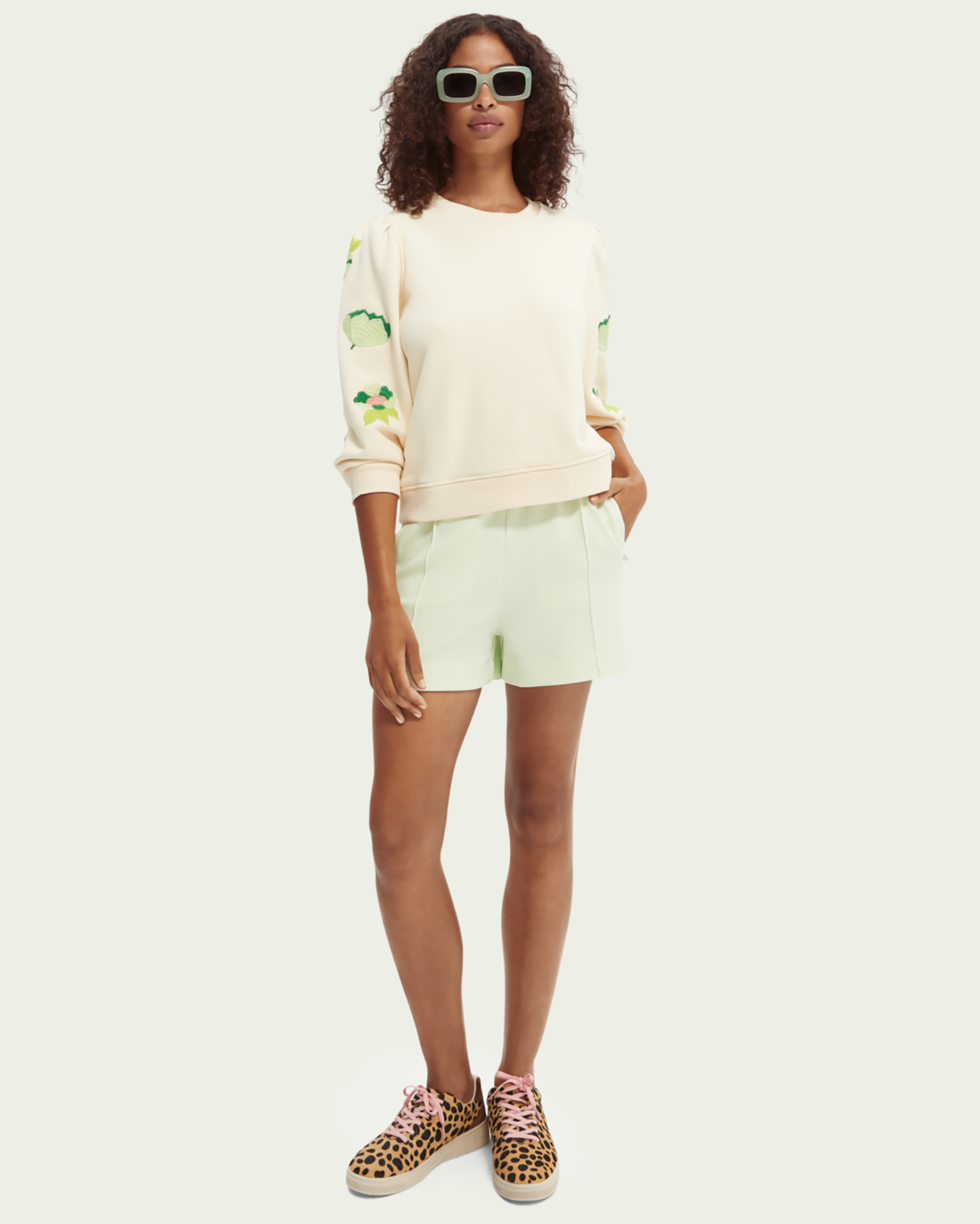 Шорты-мини Scotch&Soda светло-зеленого цвета. Модель с поясом на резинке со вставным шнурком, что обеспечивает комфортную посадку. Имеются врезные карманы по бокам и сзади. Шорты отлично сочетаются с футболкой, топом, свитшотом и толстовкой.