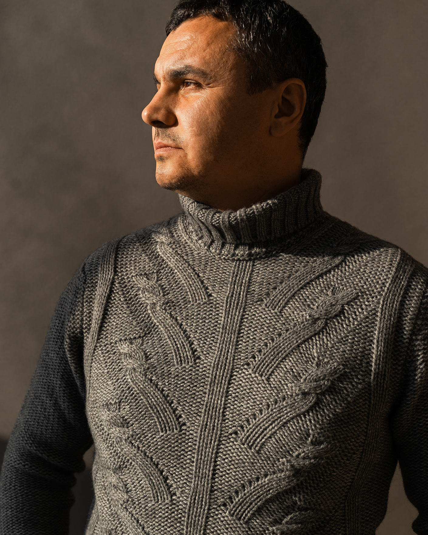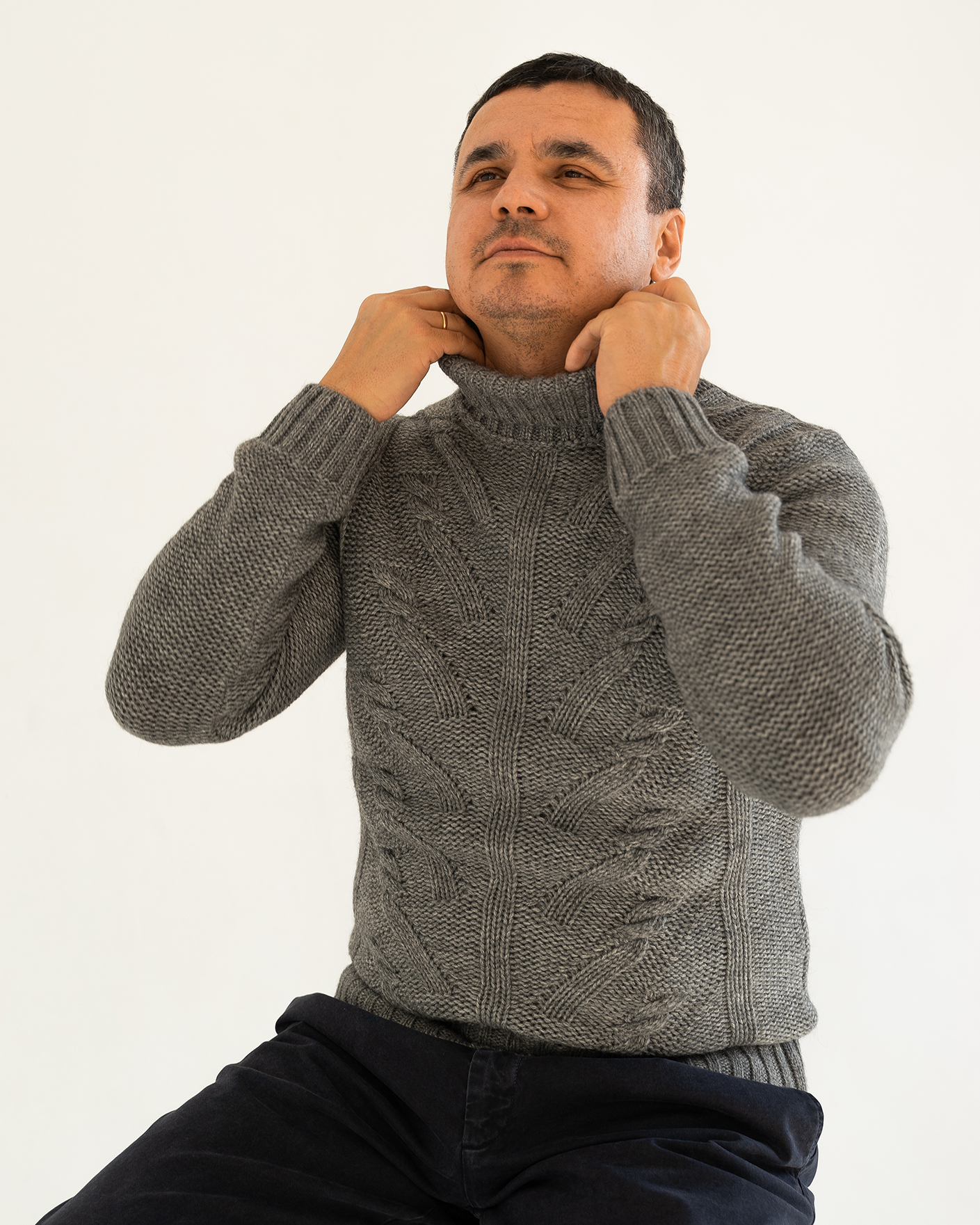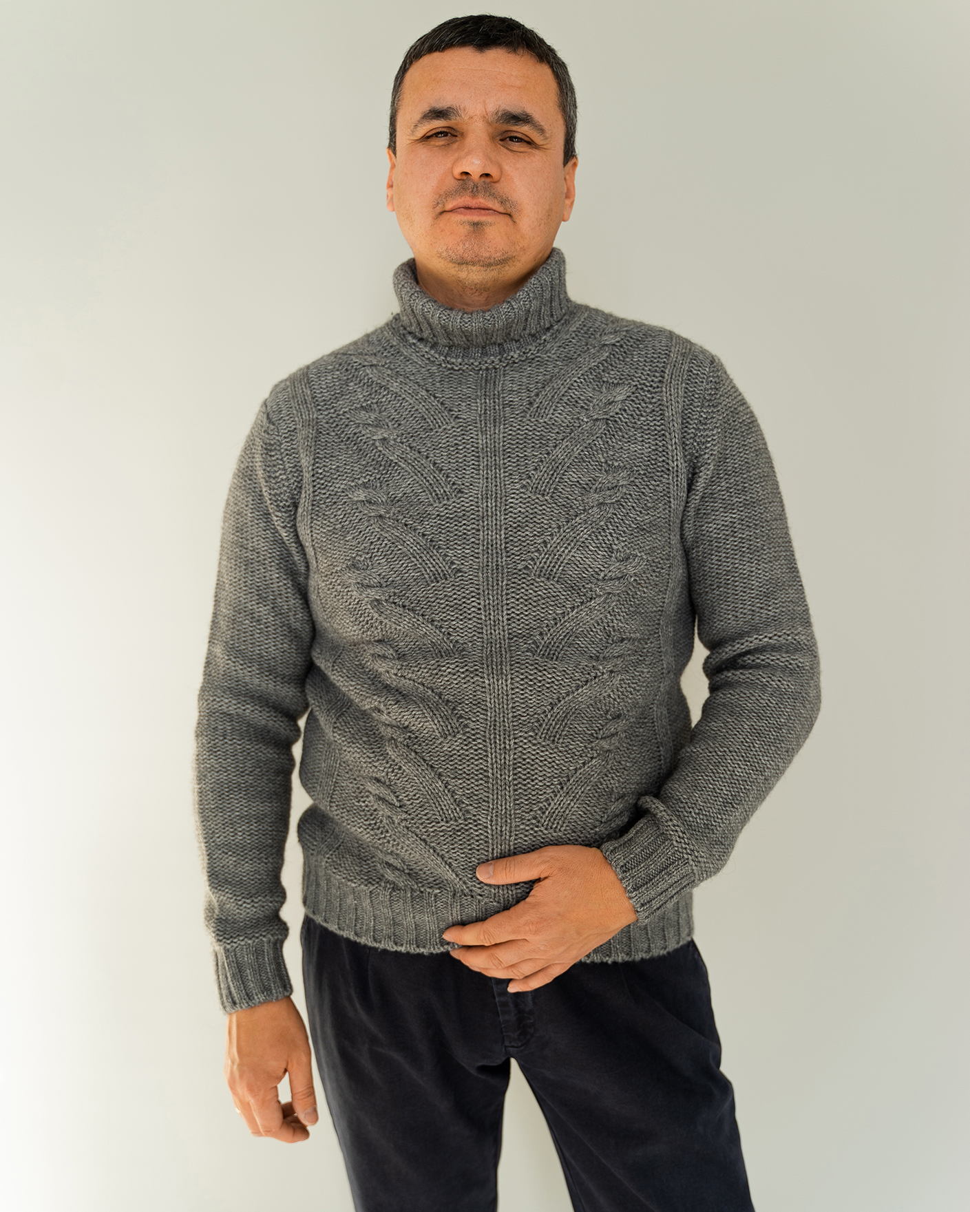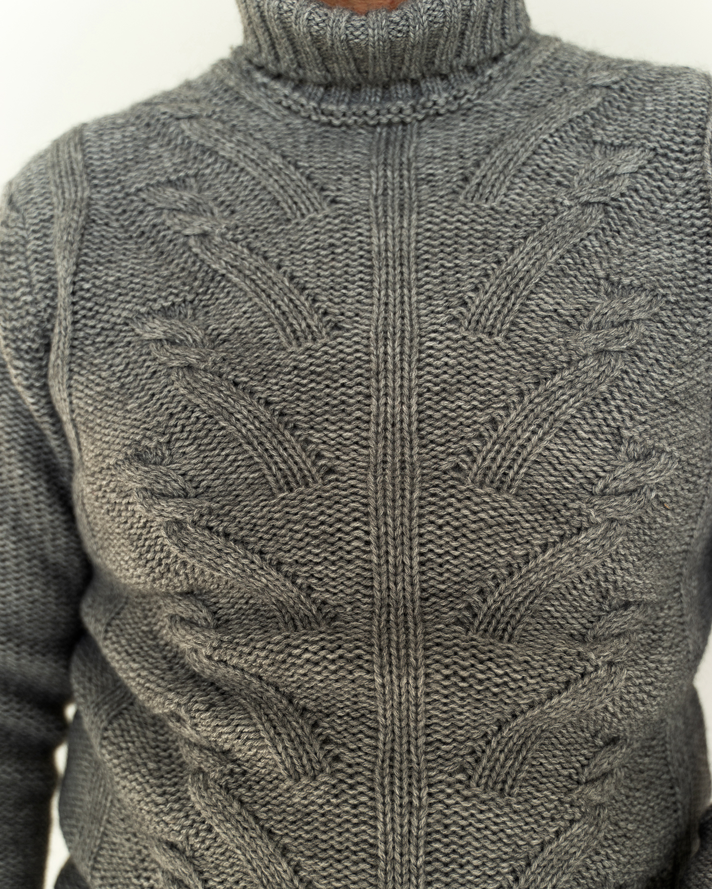 Уютный свитер Corneliani серого цвета в крупную вязку с рисунком-косичка. Модель с удлиненным воротом, что позволяет сохранять тепло. Теплый свитер станет незаменимой вещью вашего гардероба в холодное время года.