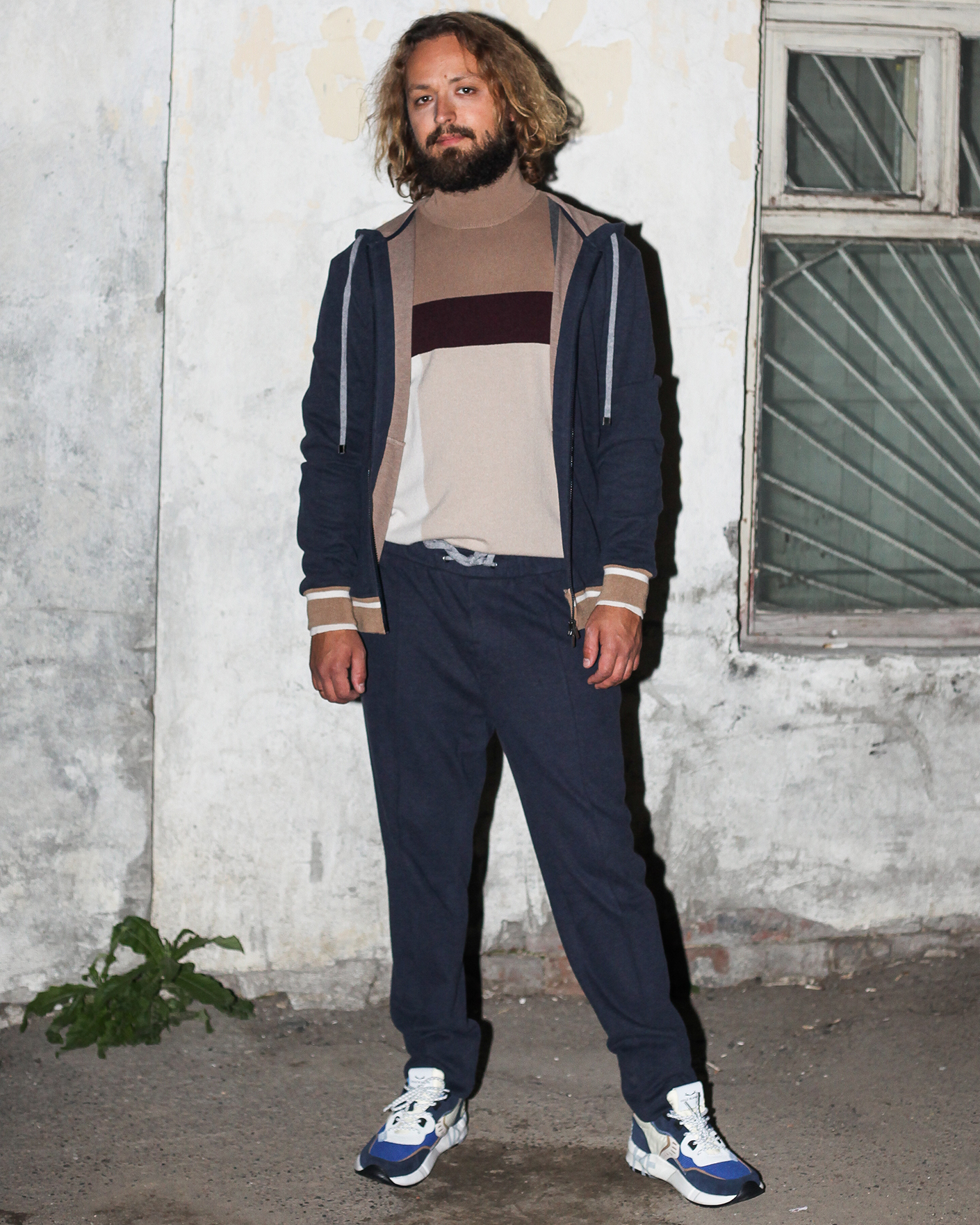 Свитер Peserico серо-бежевого цвета в строчный рисунок и горизонтальную полосу. Модель с воротником-стойка, манжетами и низом на ребристой резинке. Свитер отличн овпишется в повседневный гардероб.