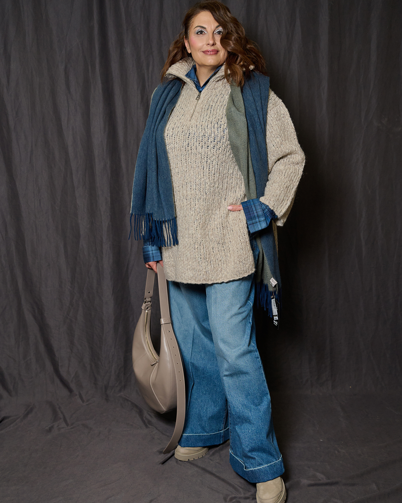 Стильный образ на каждый день: свитер, рубашка, джинсы-кюлоты